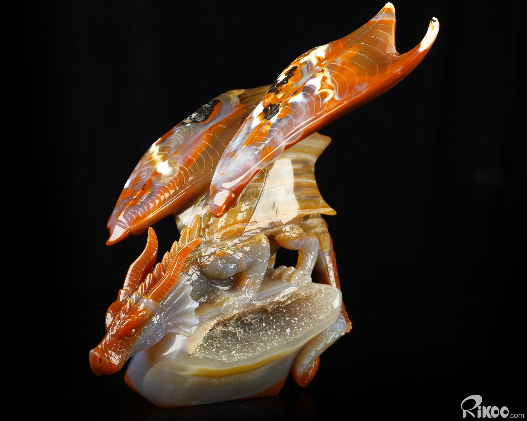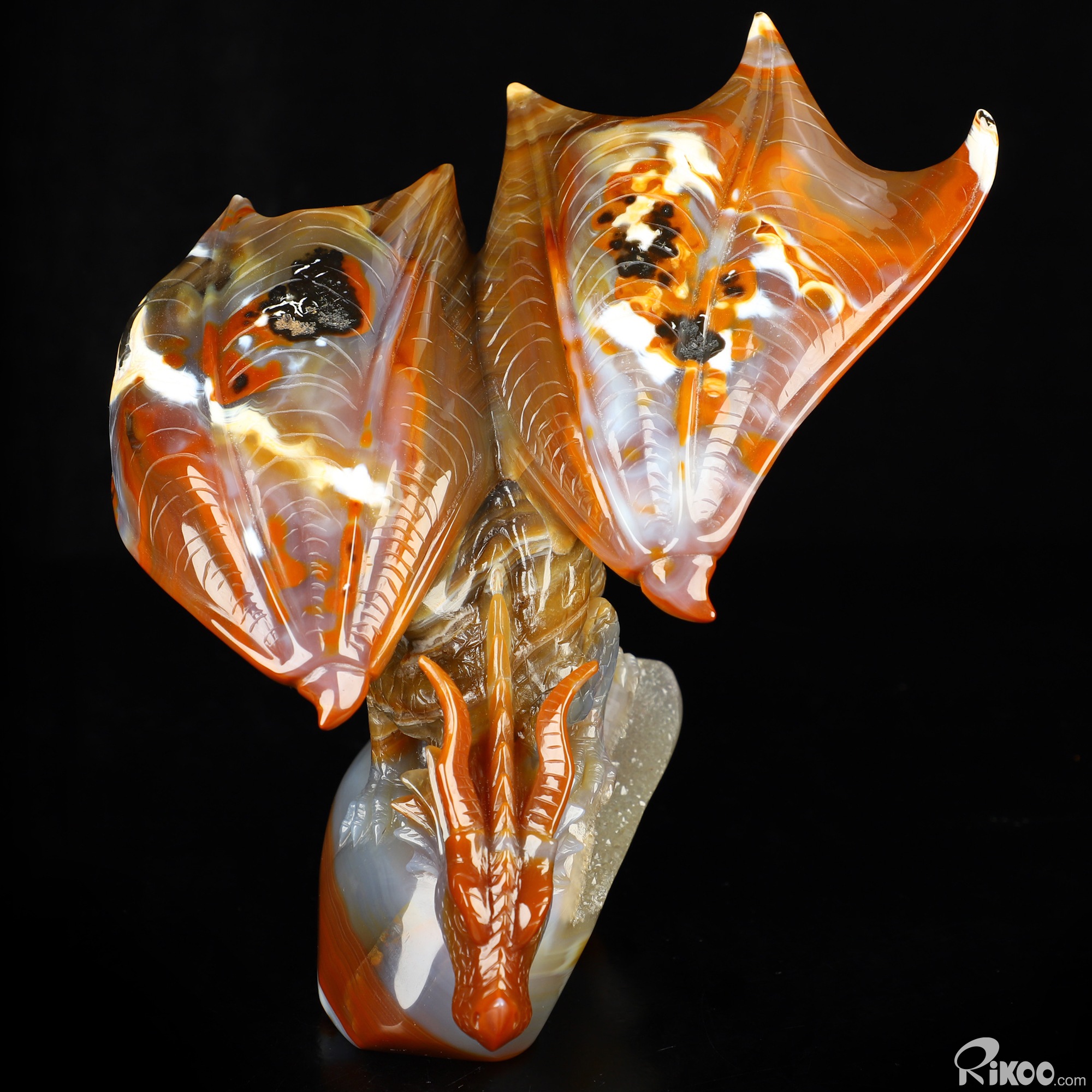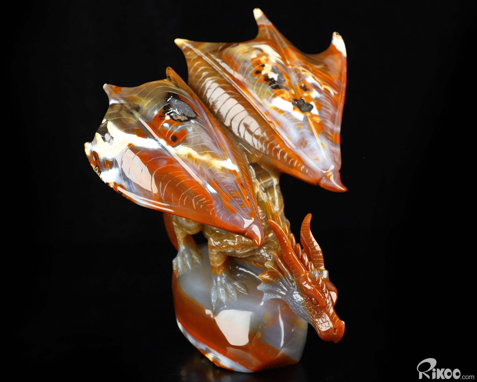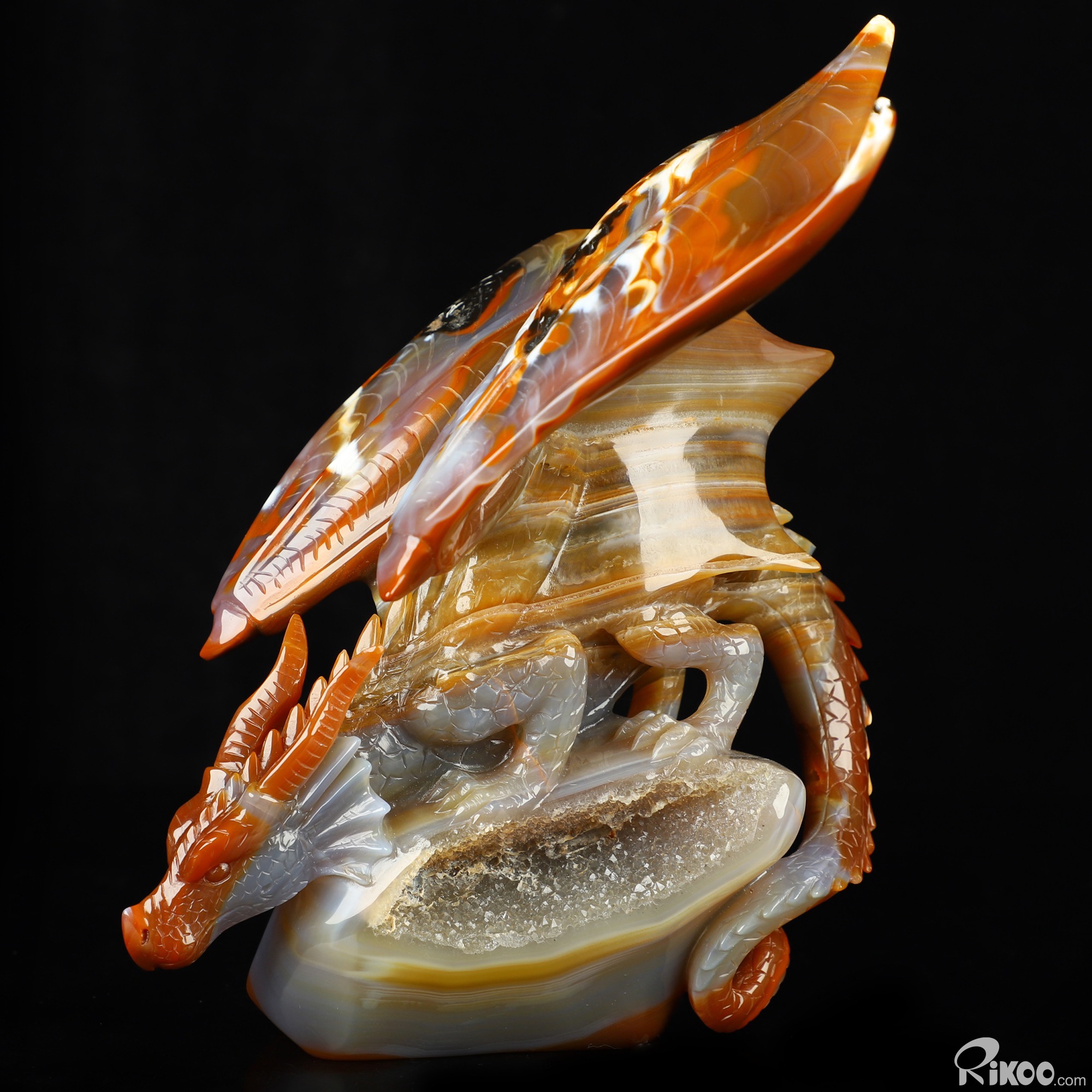 7.8" Premium Brazilian Agate Hand Carved Crystal Dragon Sculpture, Crystal Healing
