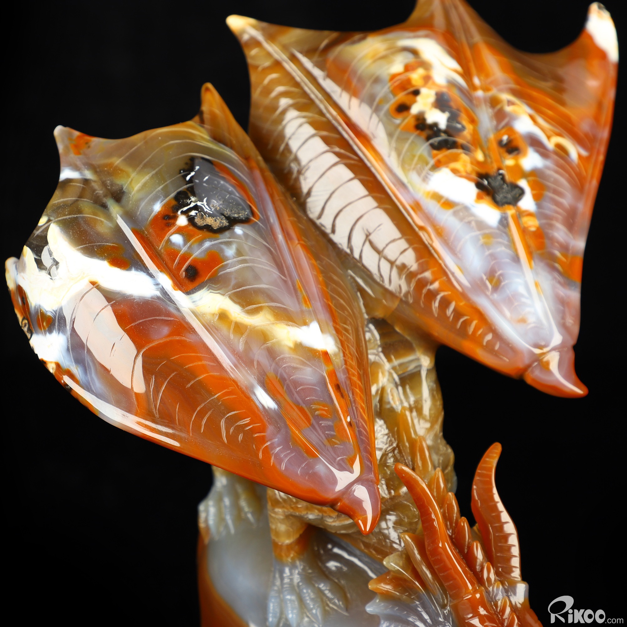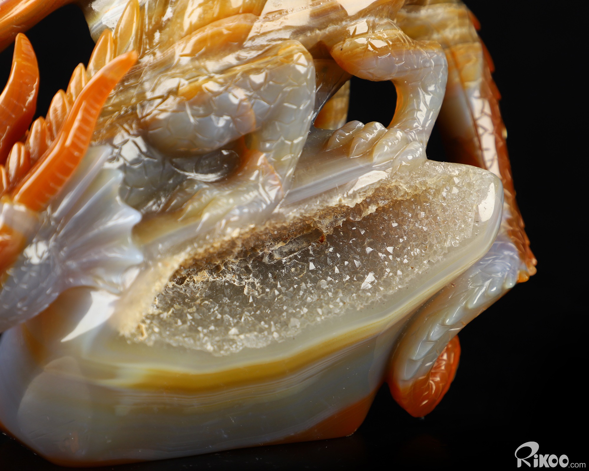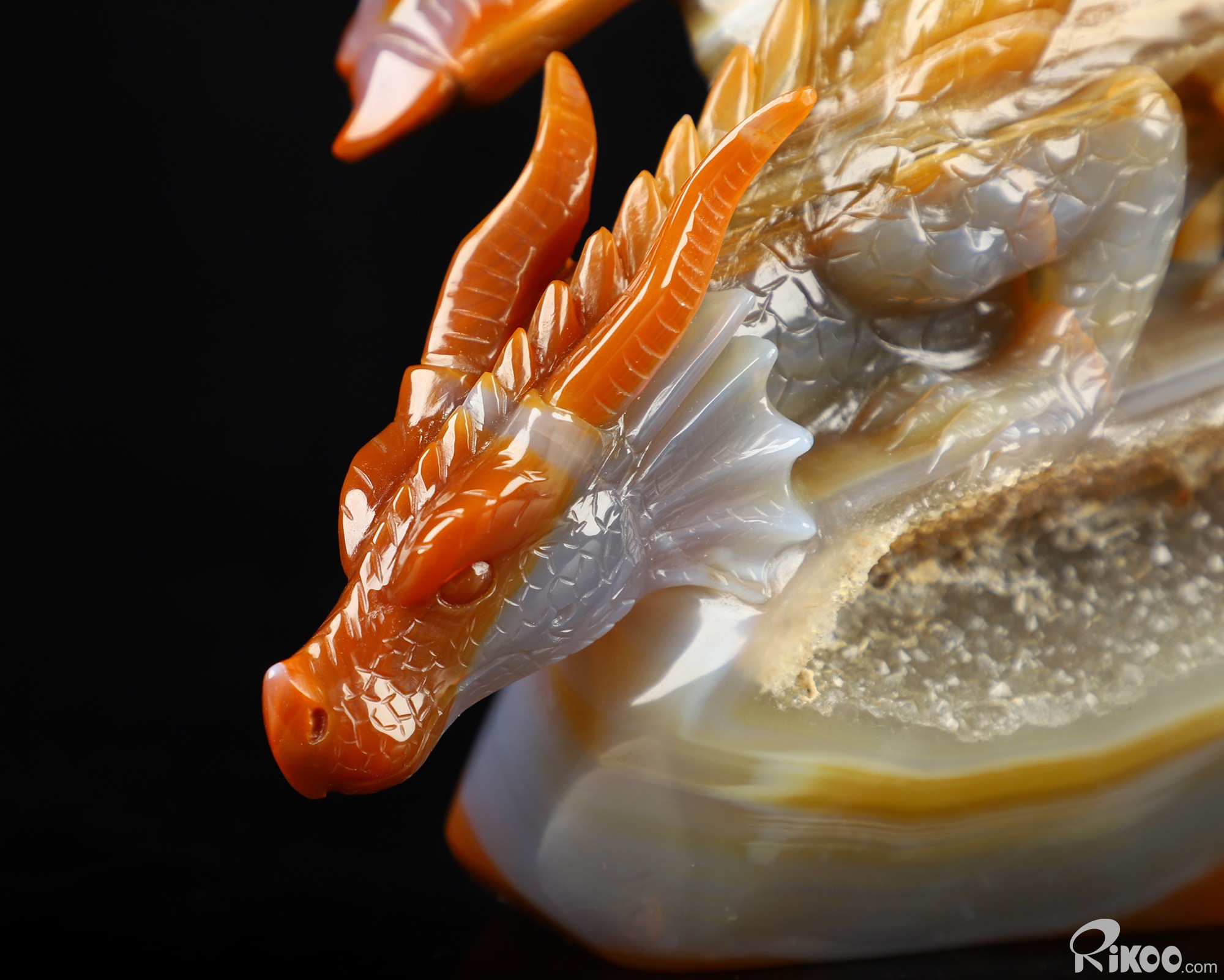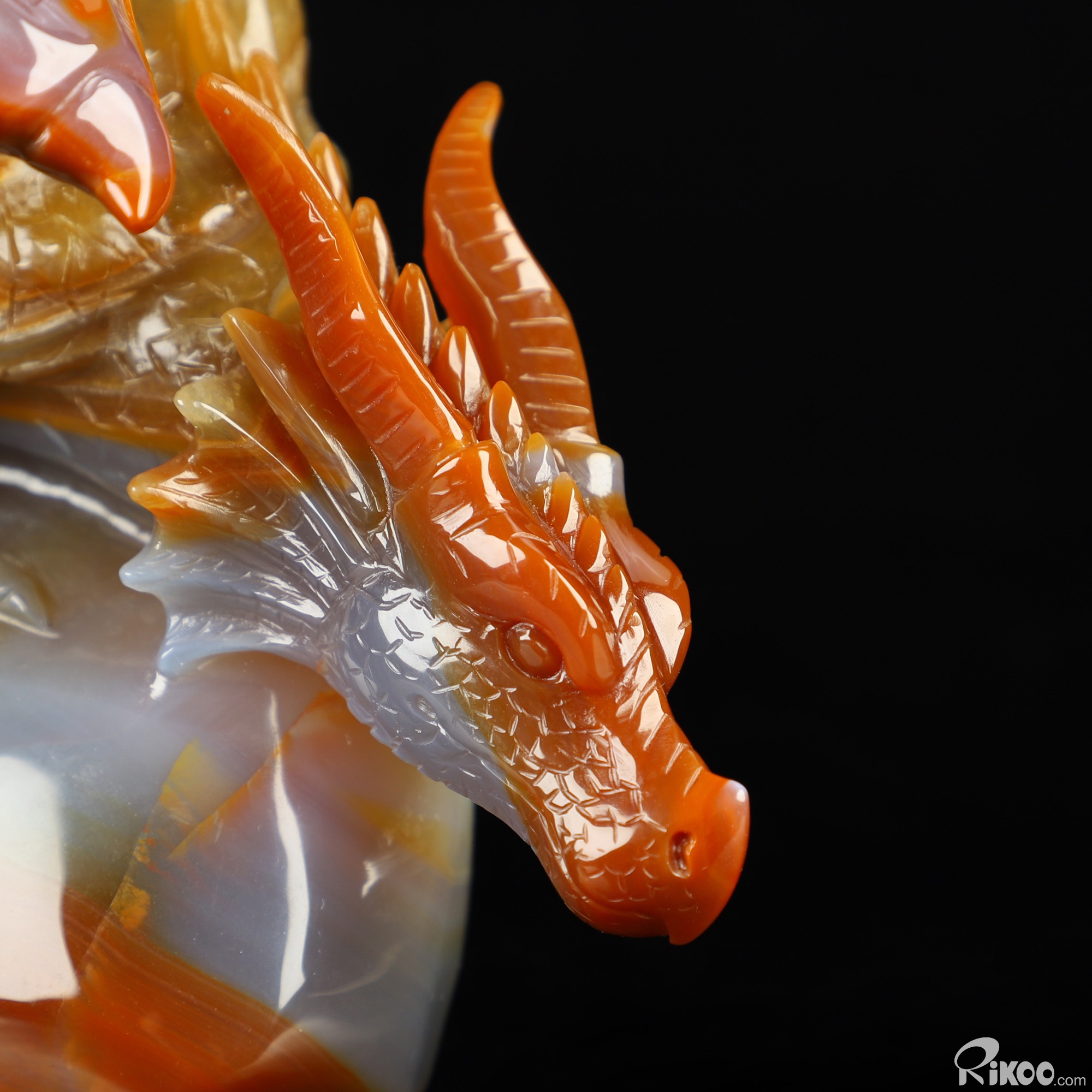 7.8" Premium Brazilian Agate Hand Carved Crystal Dragon Sculpture, Crystal Healing