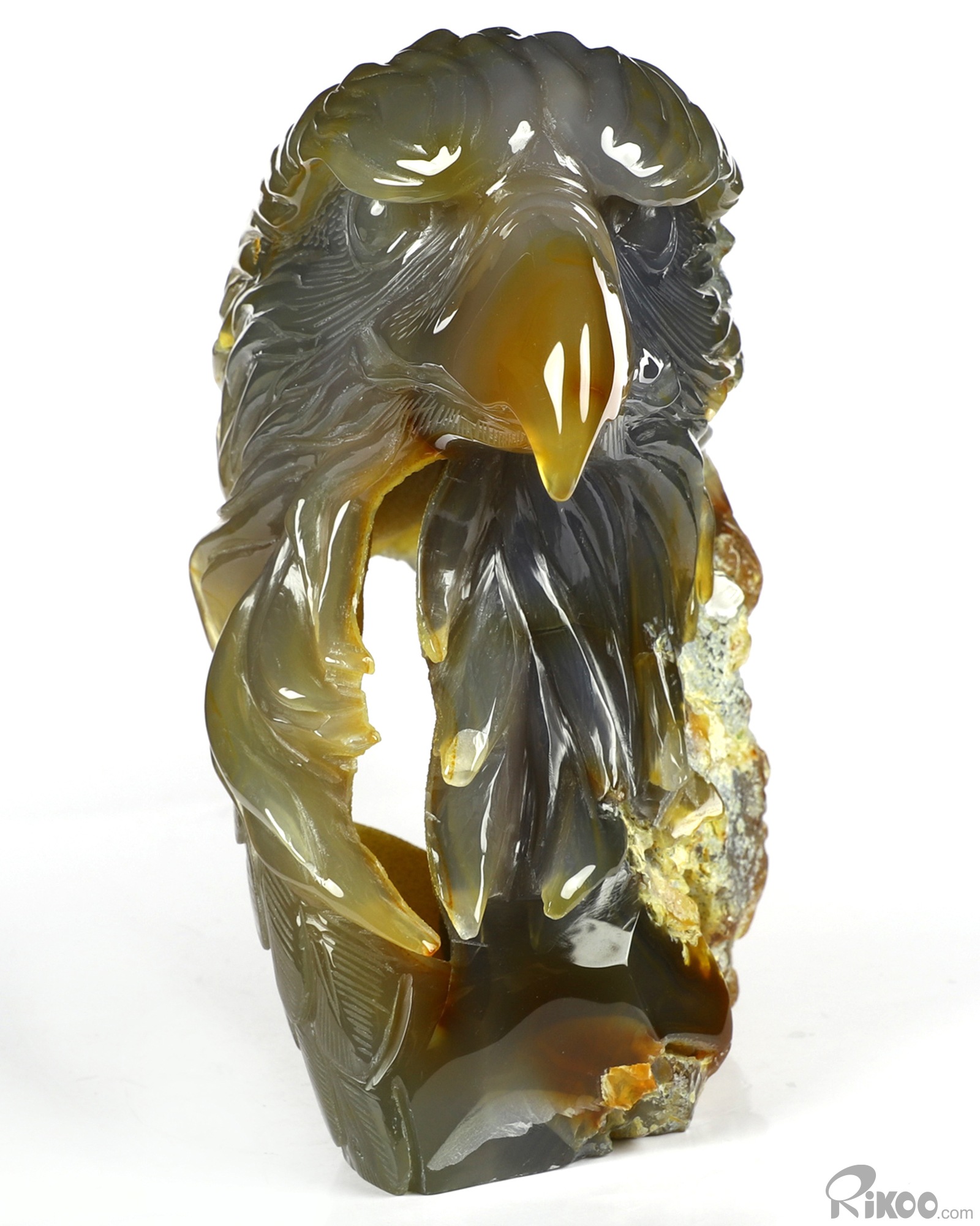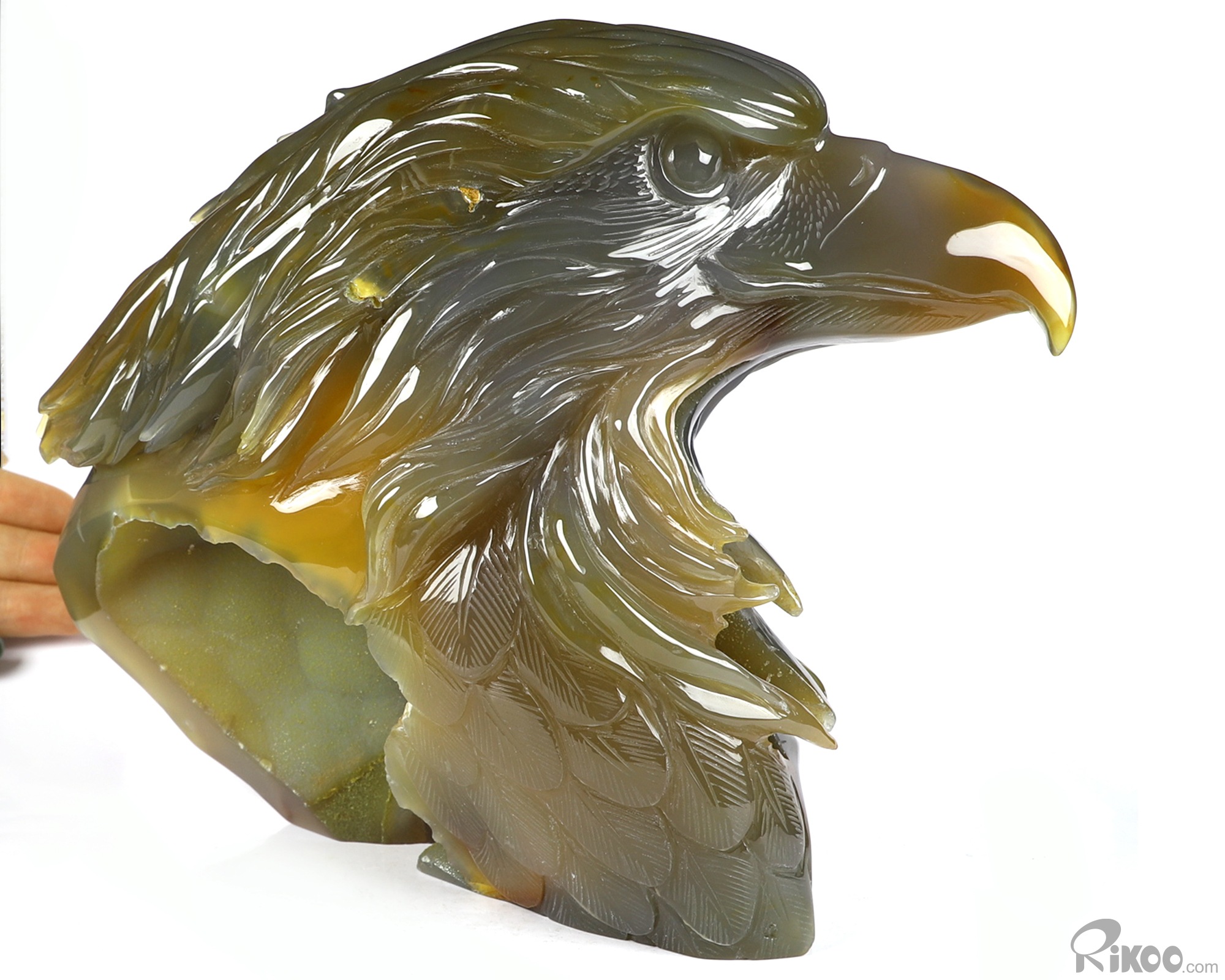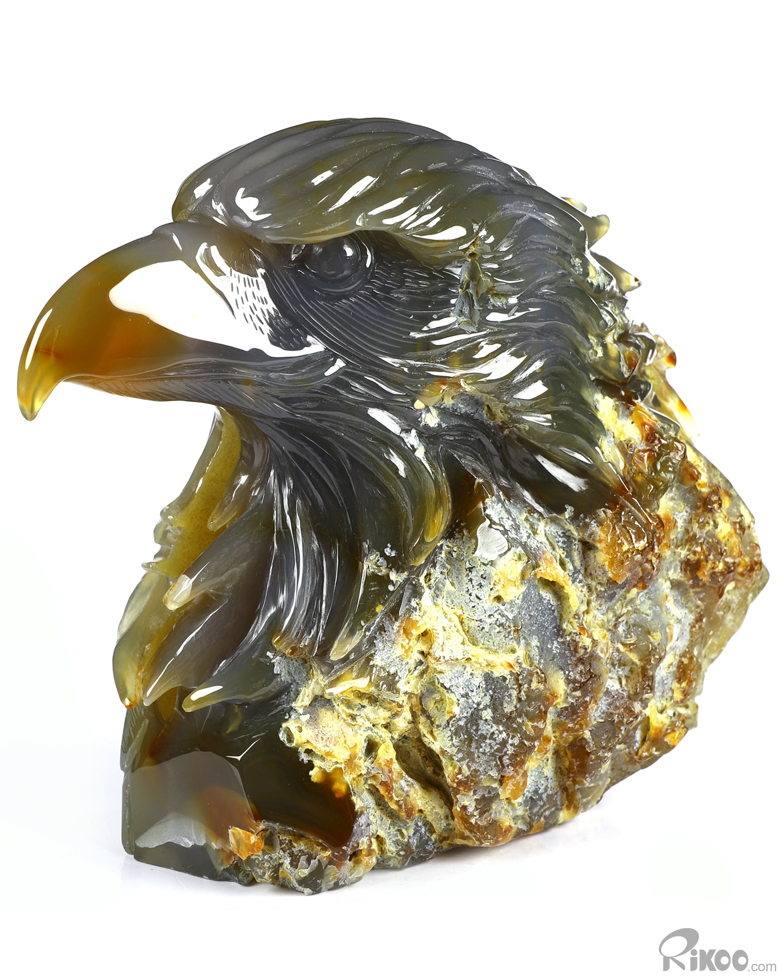 7.9" Agate Geode Carved Crystal Eagle Sculpture, Crystal Healing