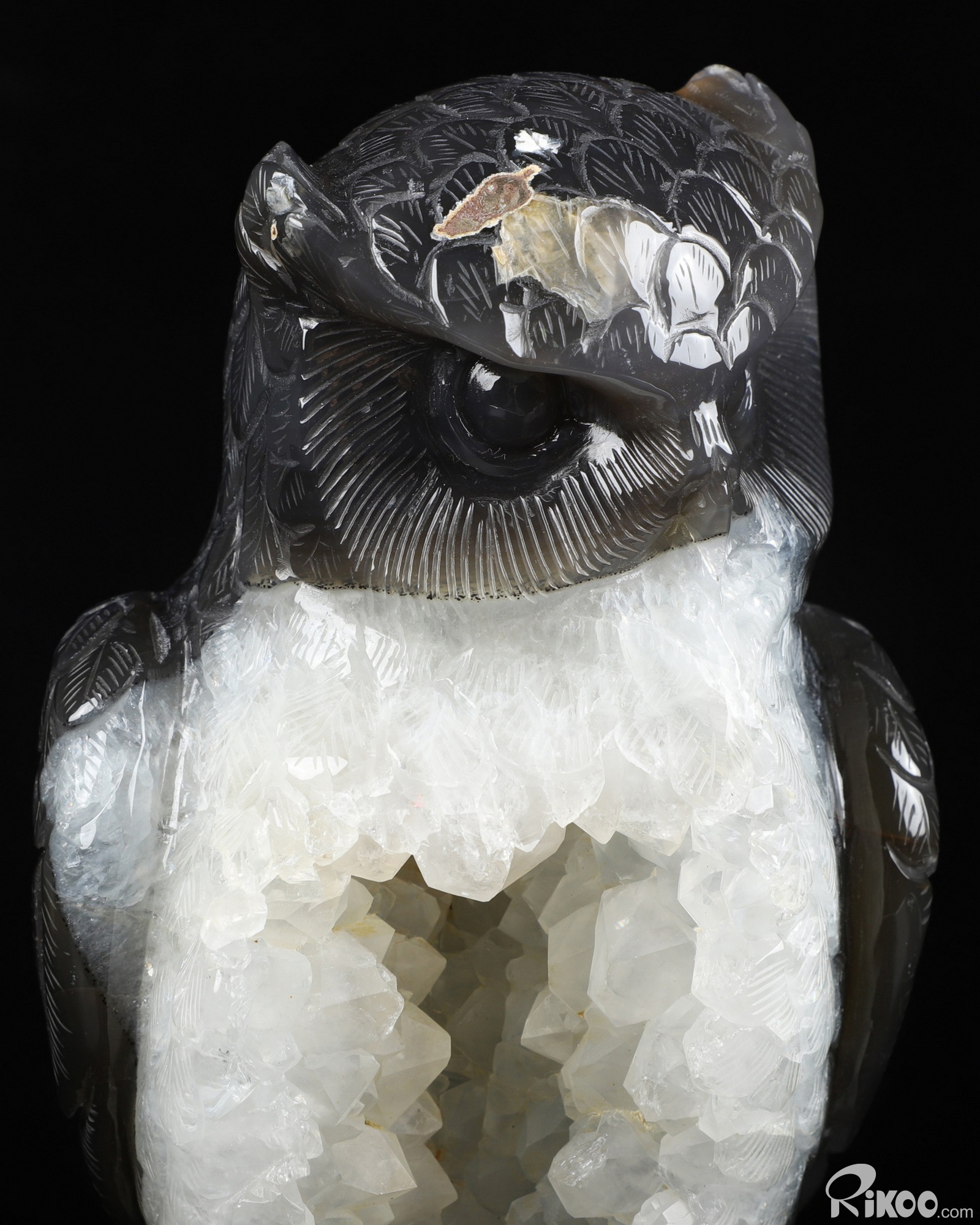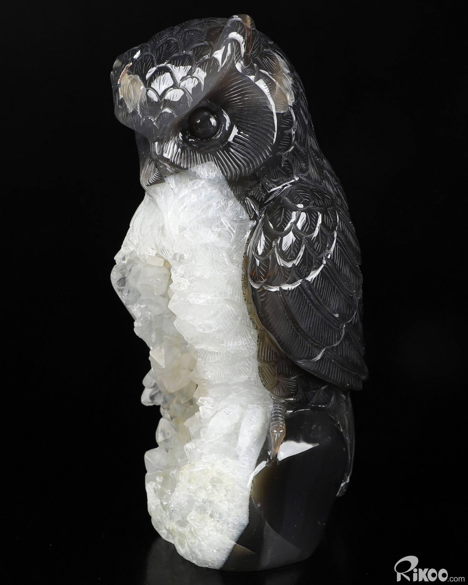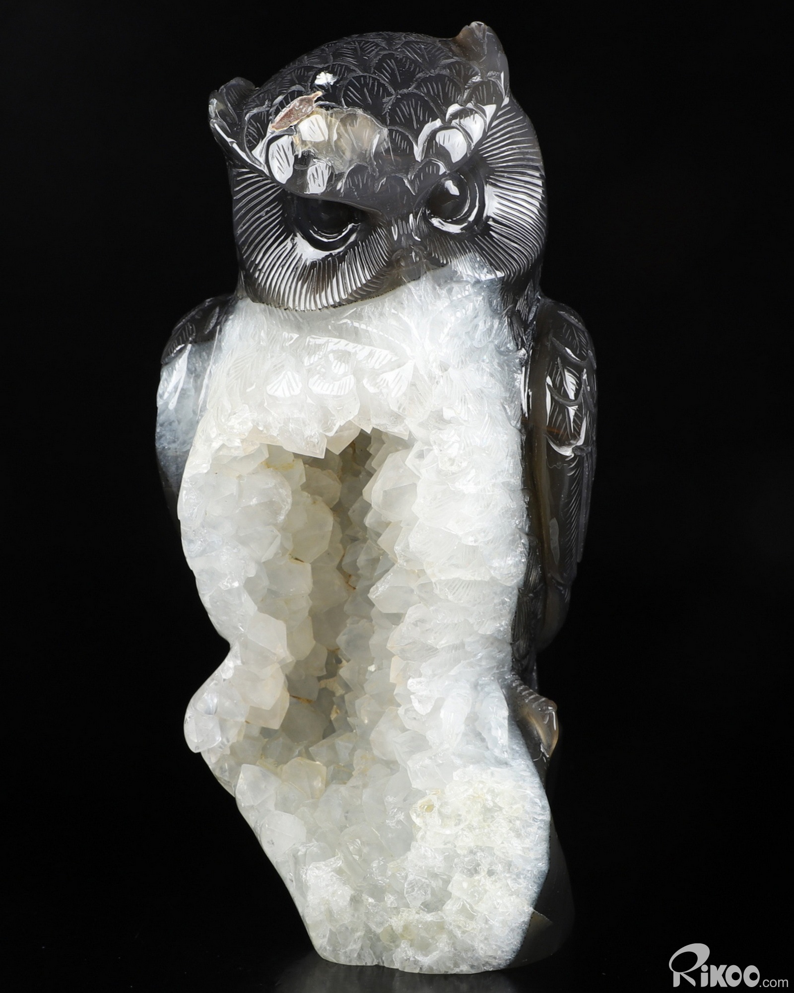 7.9" Agate Geode Carved Crystal Owl Sculpture, Crystal Healing