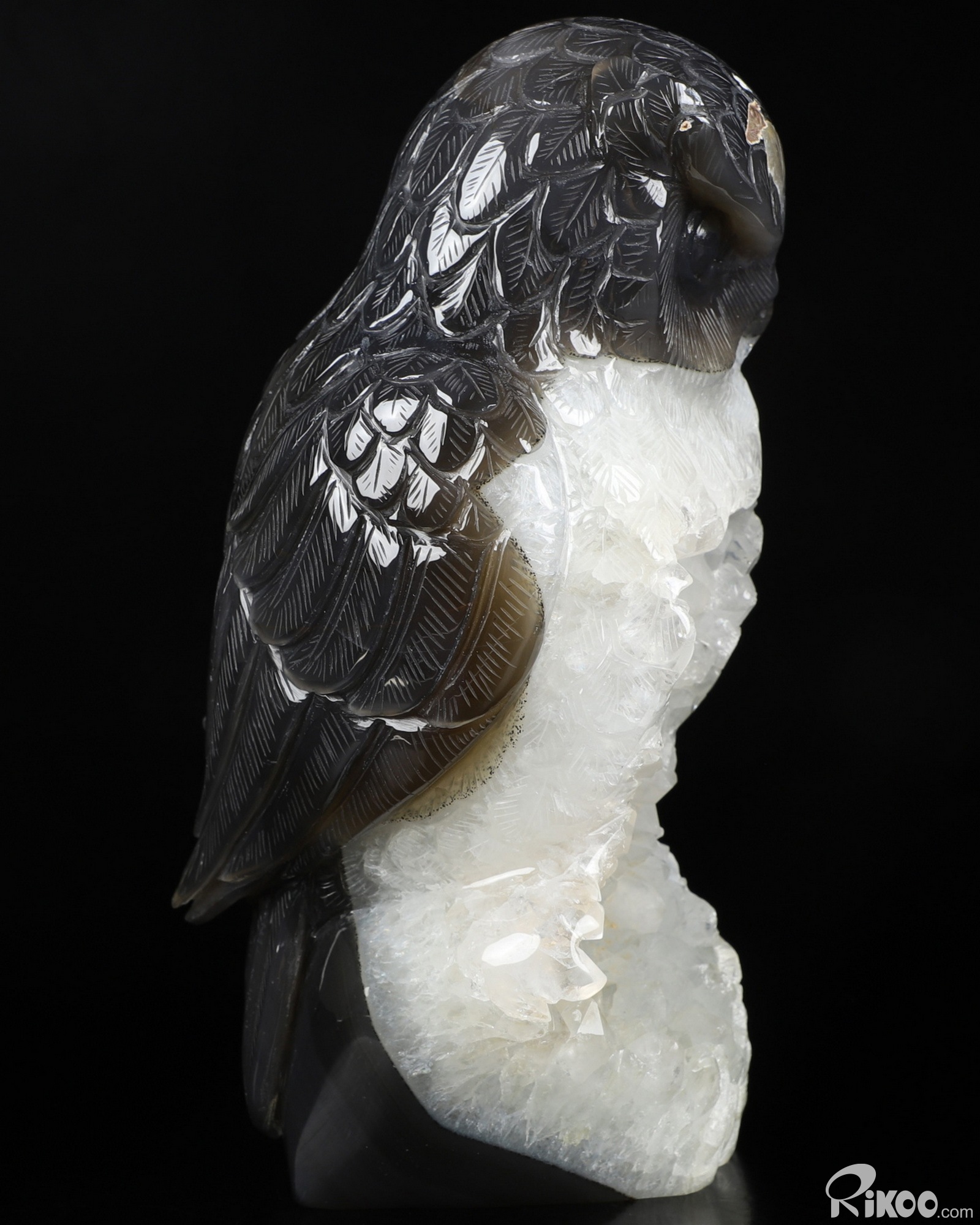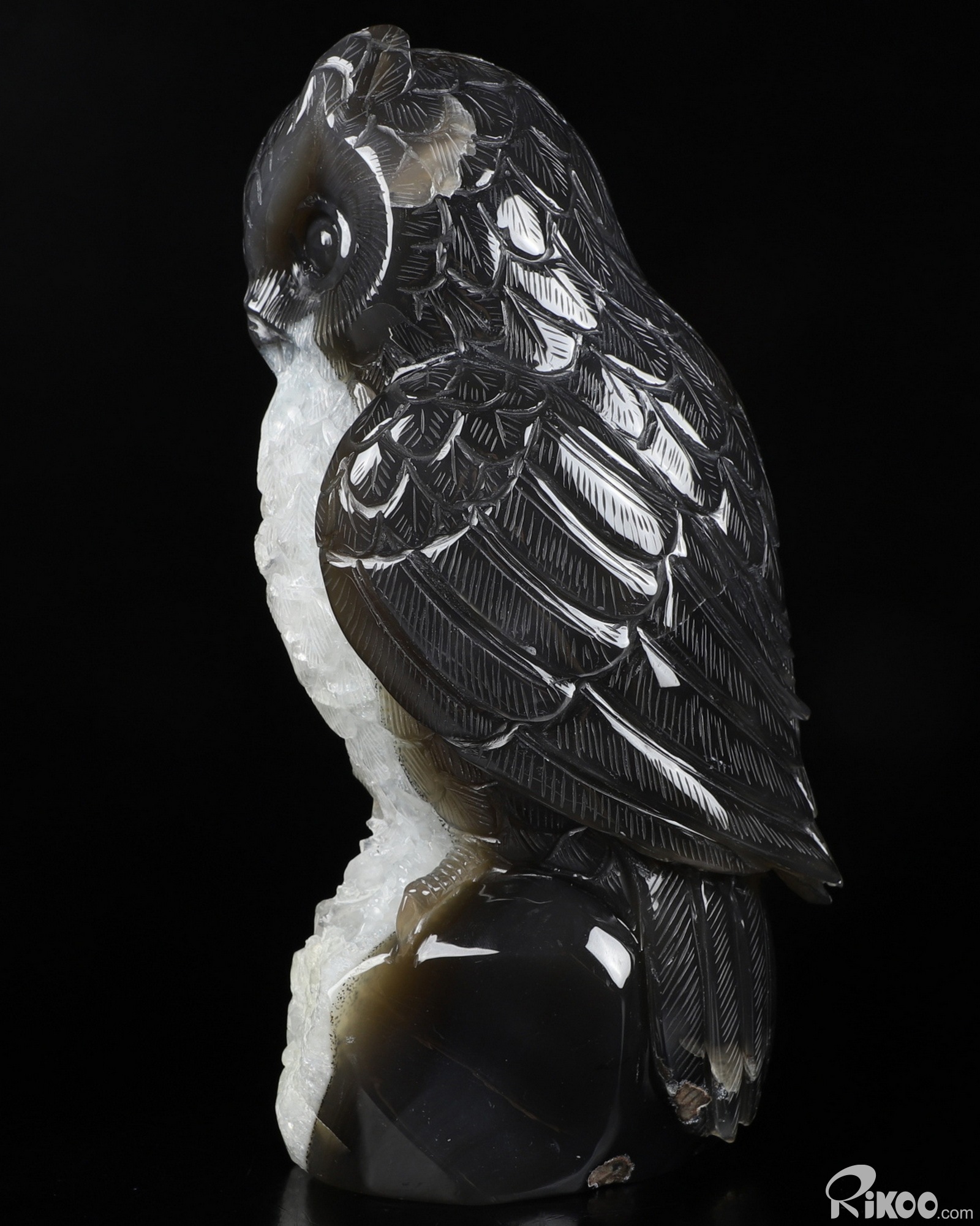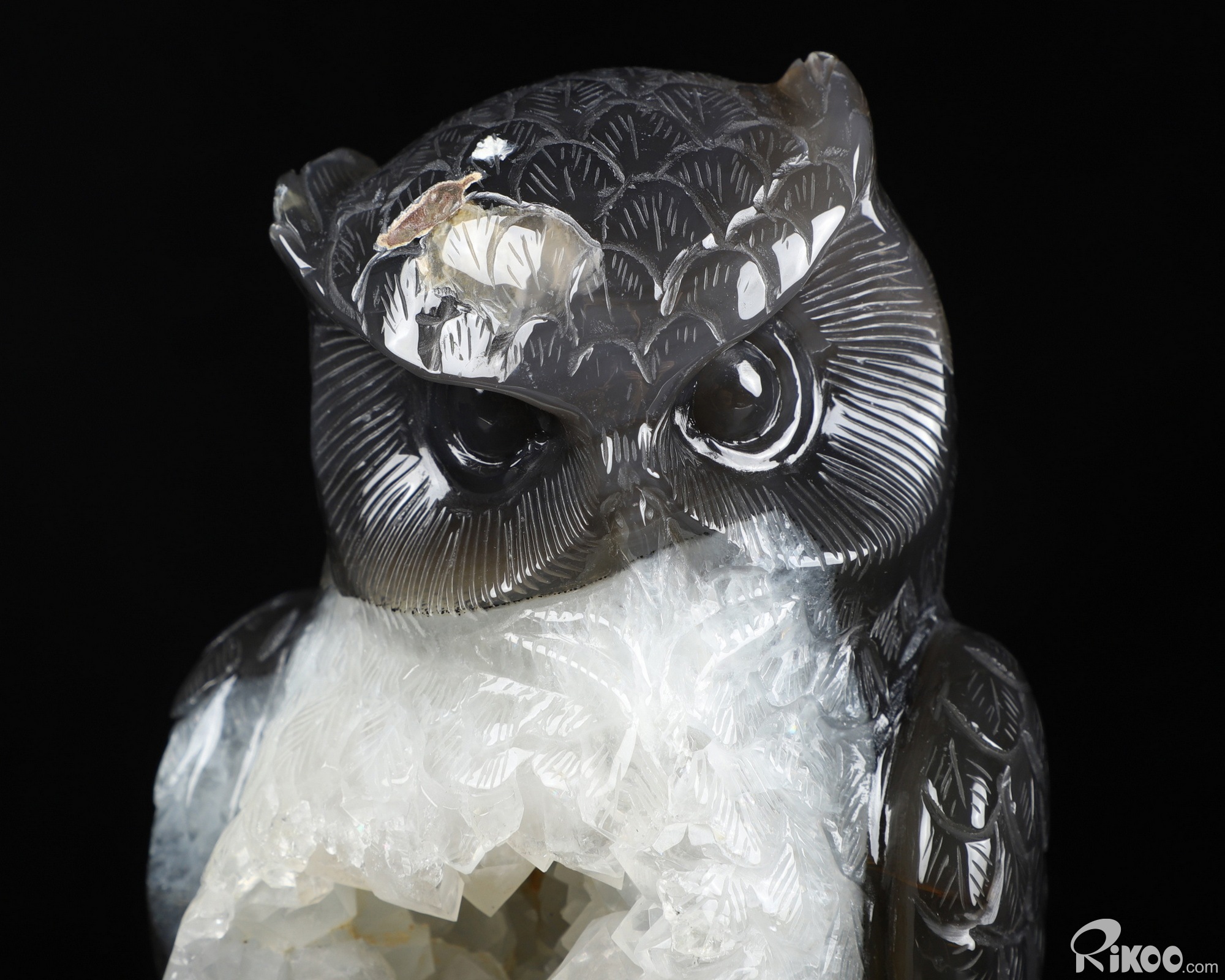 7.9" Agate Geode Carved Crystal Owl Sculpture, Crystal Healing