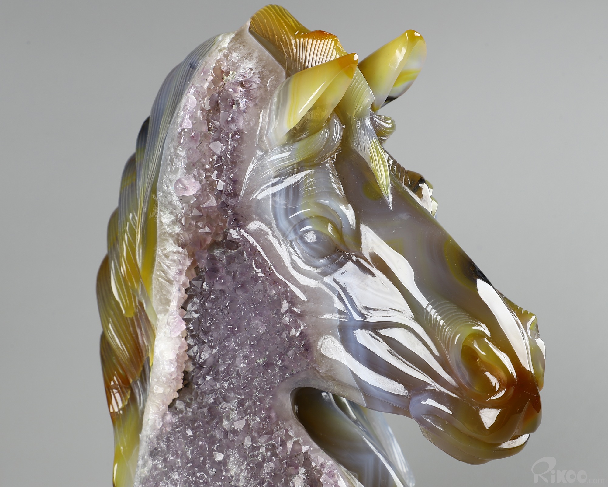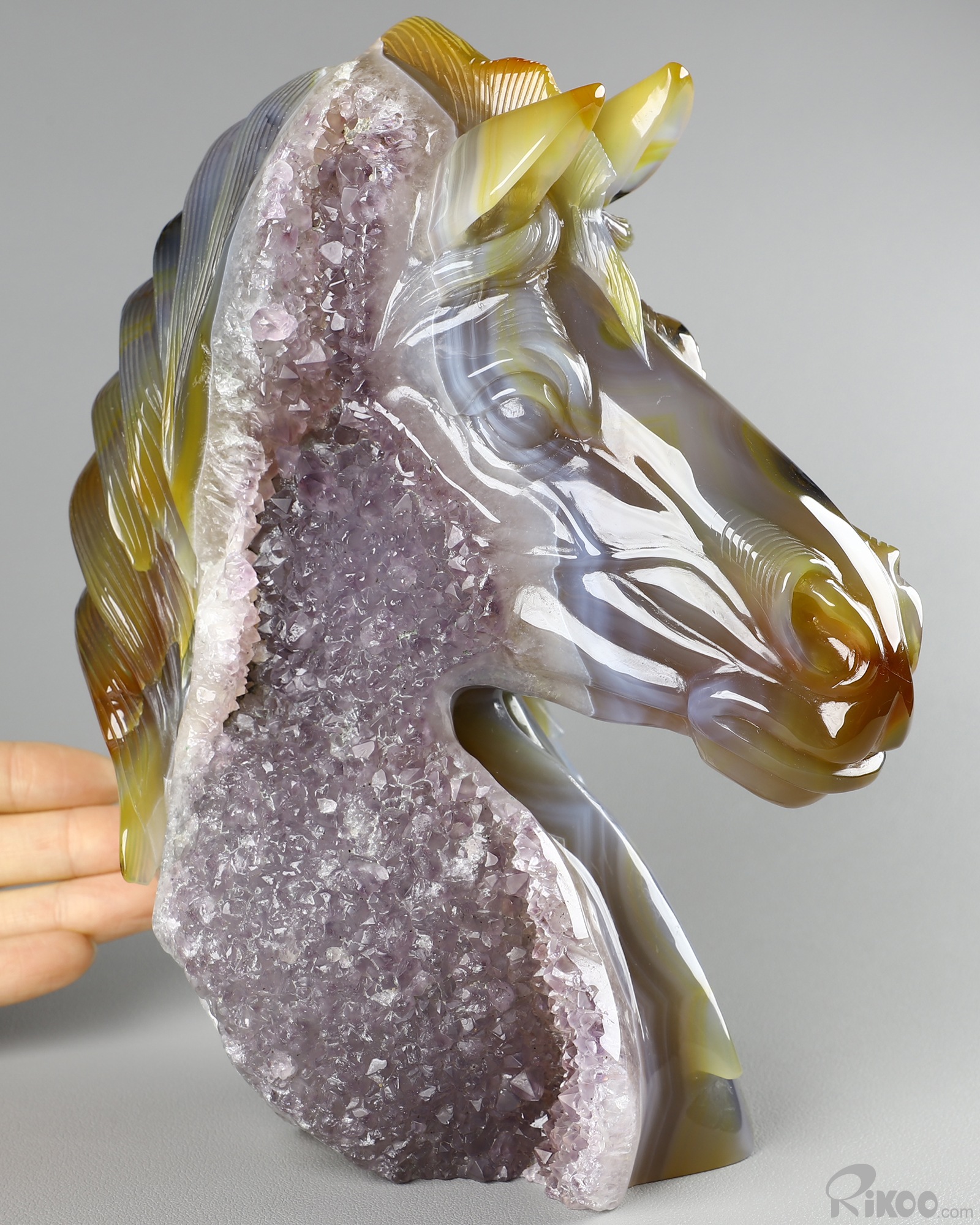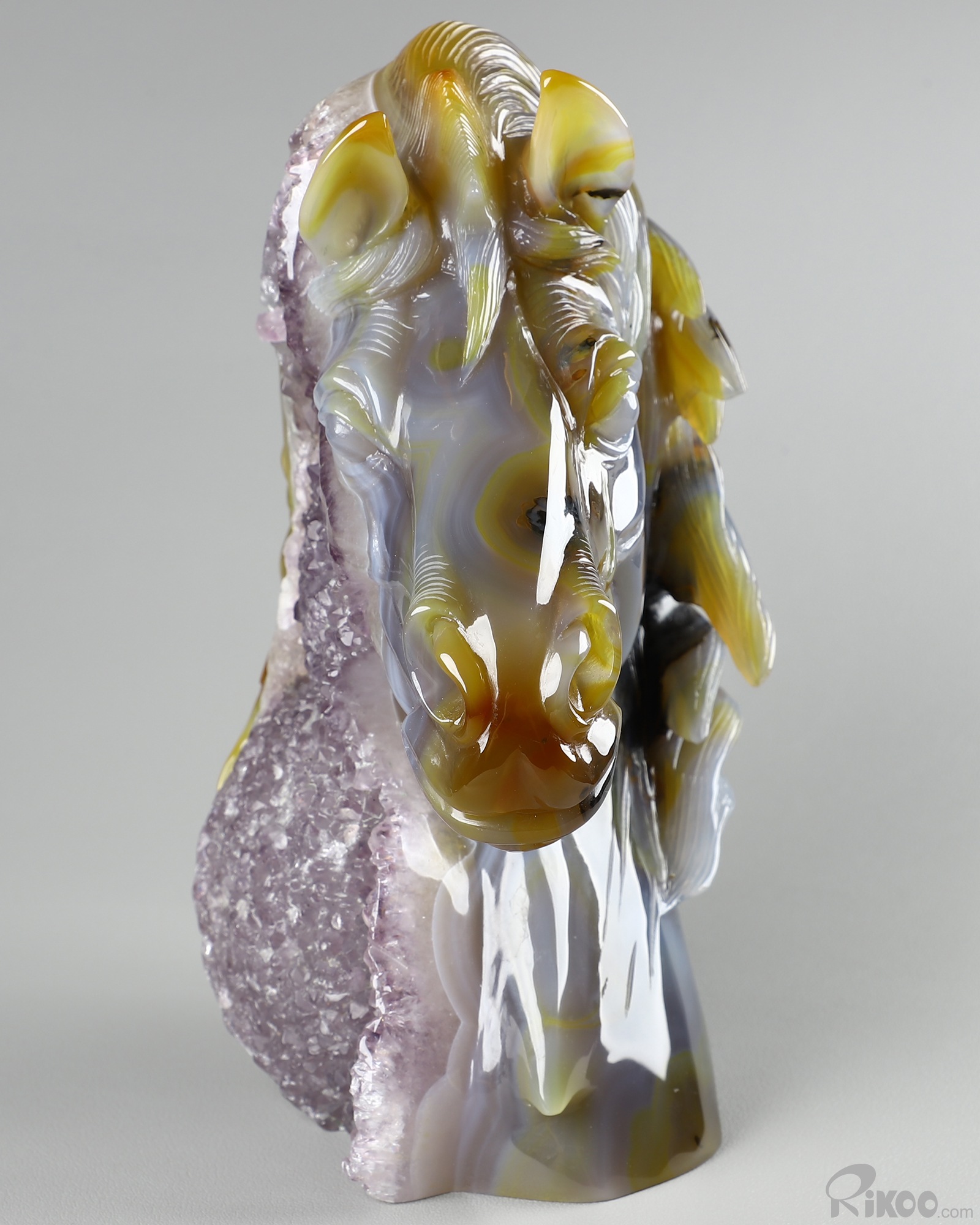 7.9" Amethyst & Agate Carved Crystal Horse Sculpture, Realistic, Crystal Healing