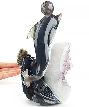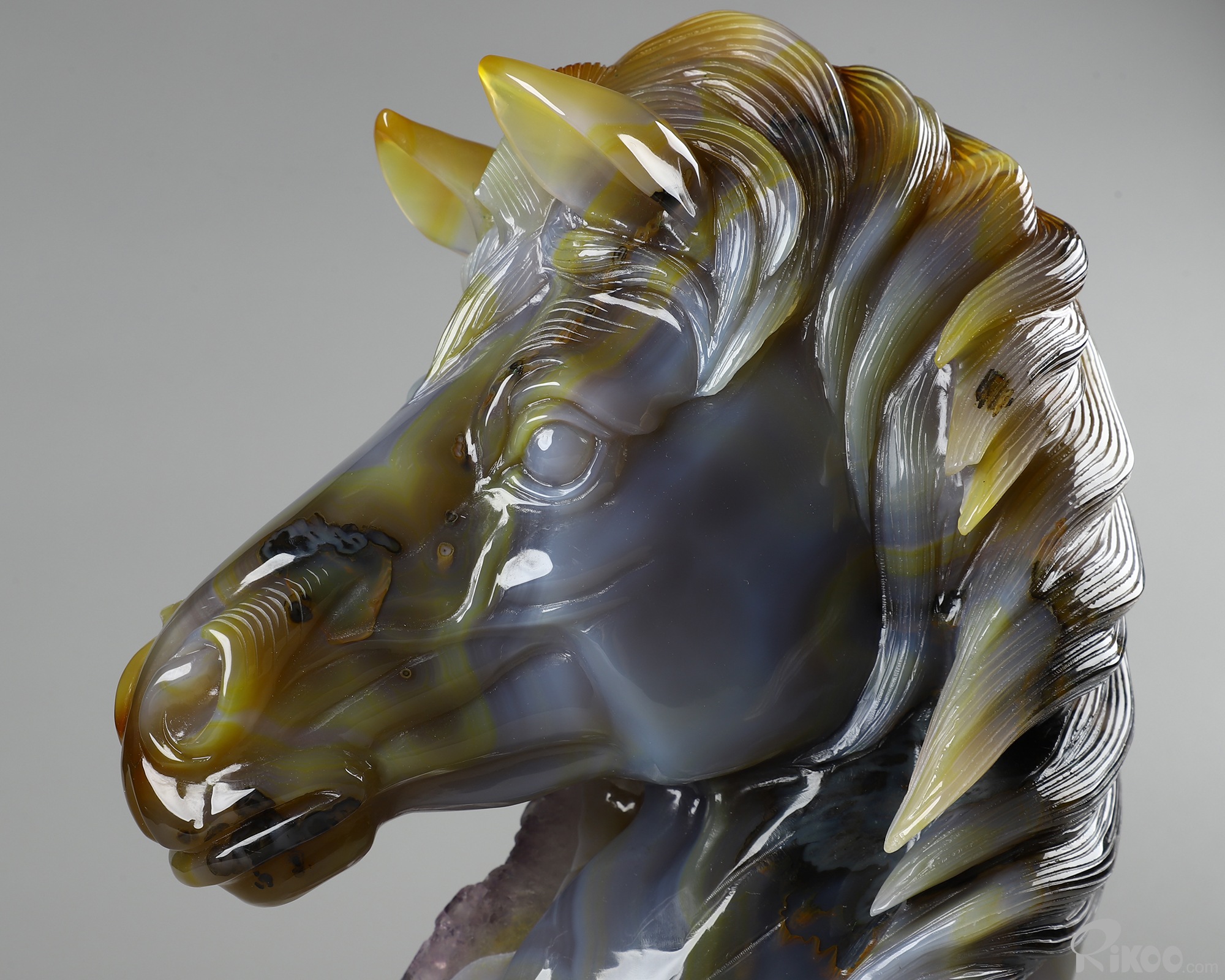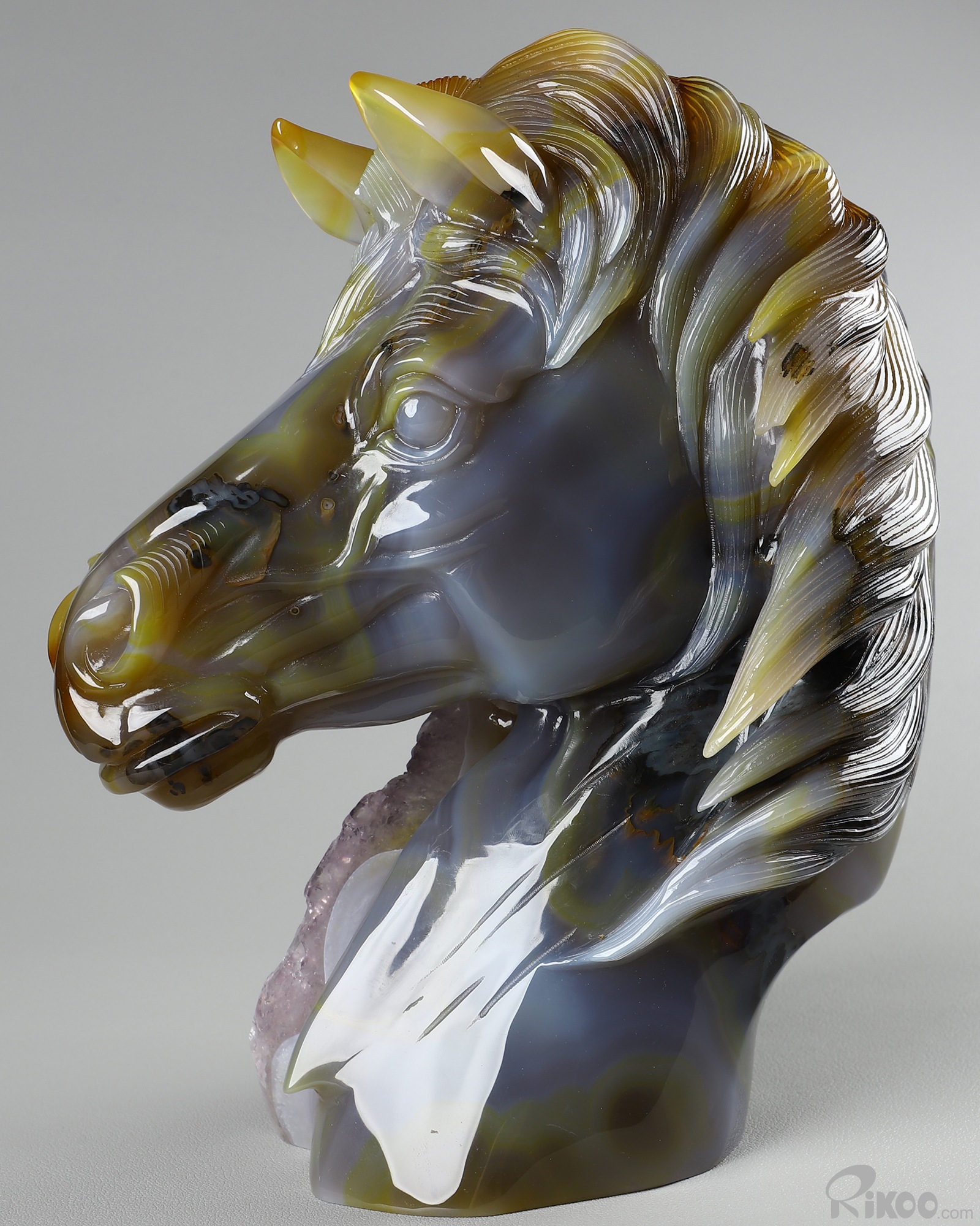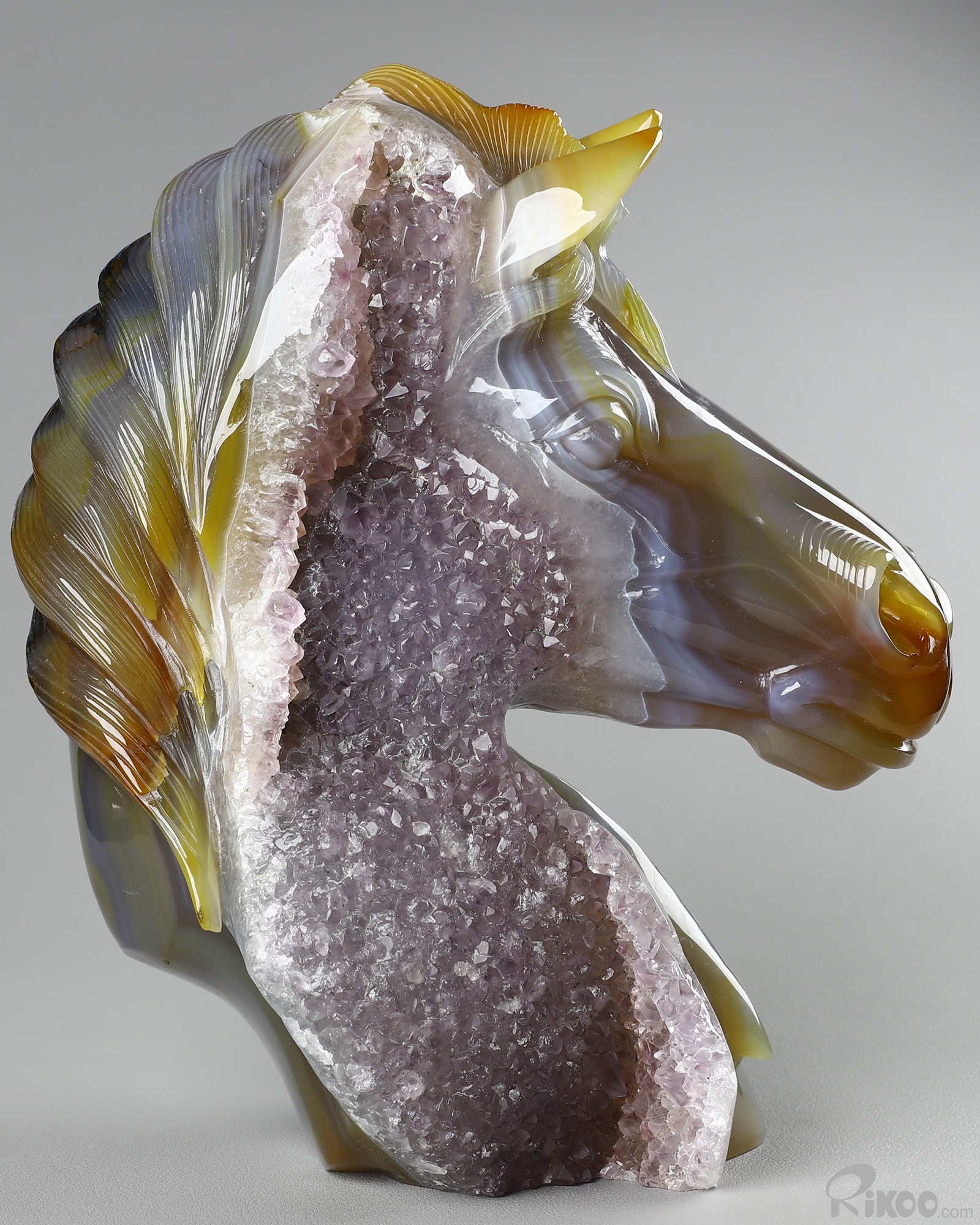 7.9" Amethyst & Agate Carved Crystal Horse Sculpture, Realistic, Crystal Healing