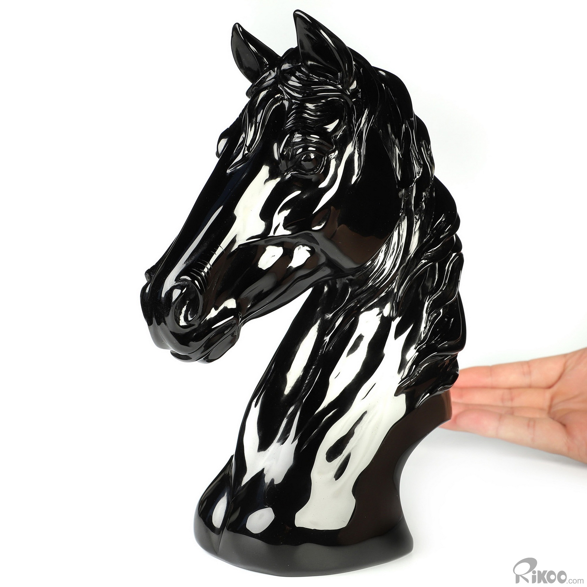 7.9" Black Obsidian Hand Carved Crystal Horse Sculpture, Crystal Healing