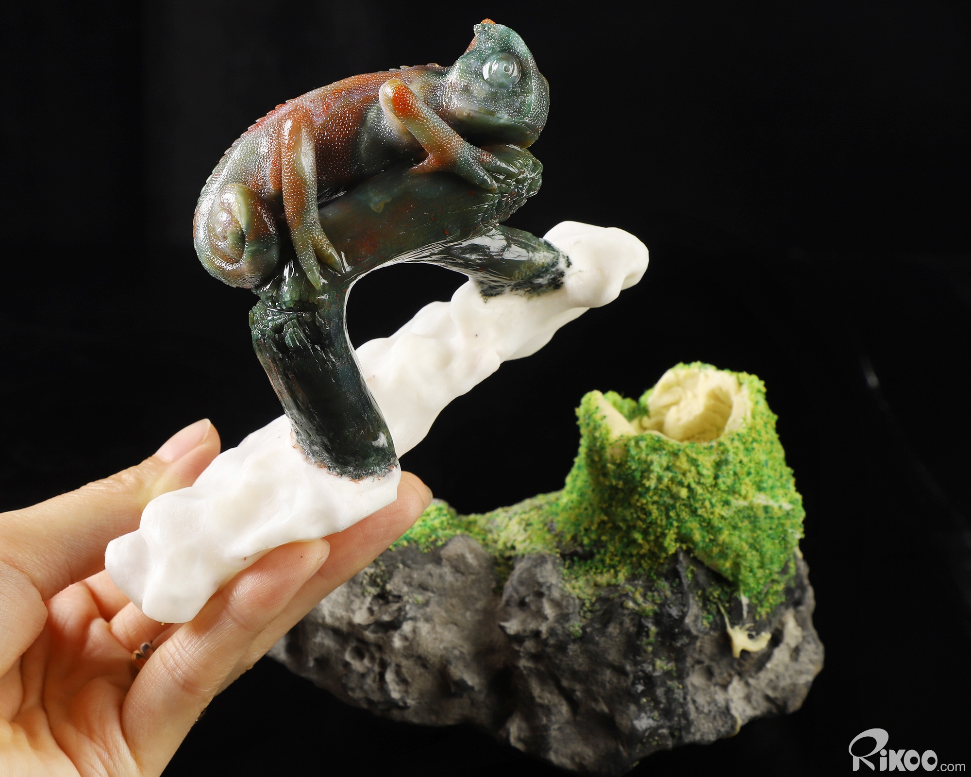 7.9" Indian Agate Hand Carved Crystal Lizard Sculpture, Crystal Healing