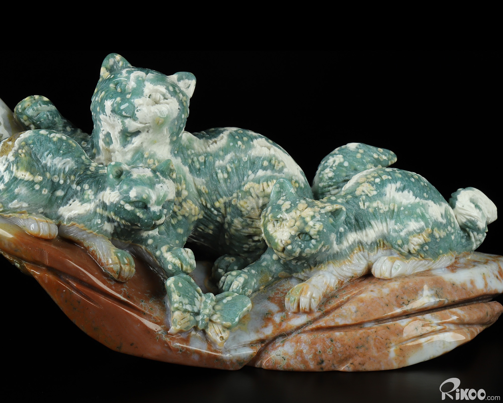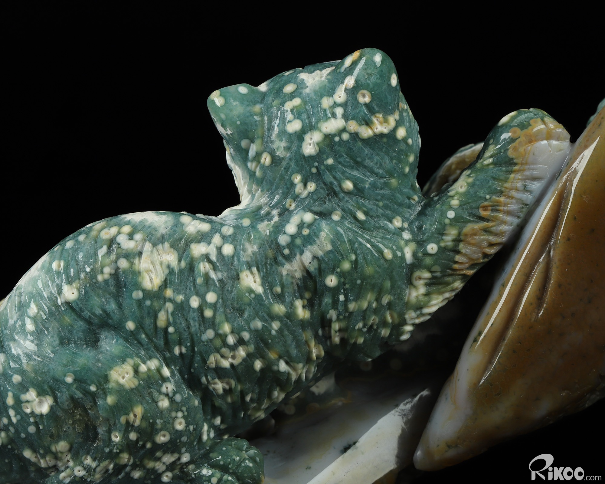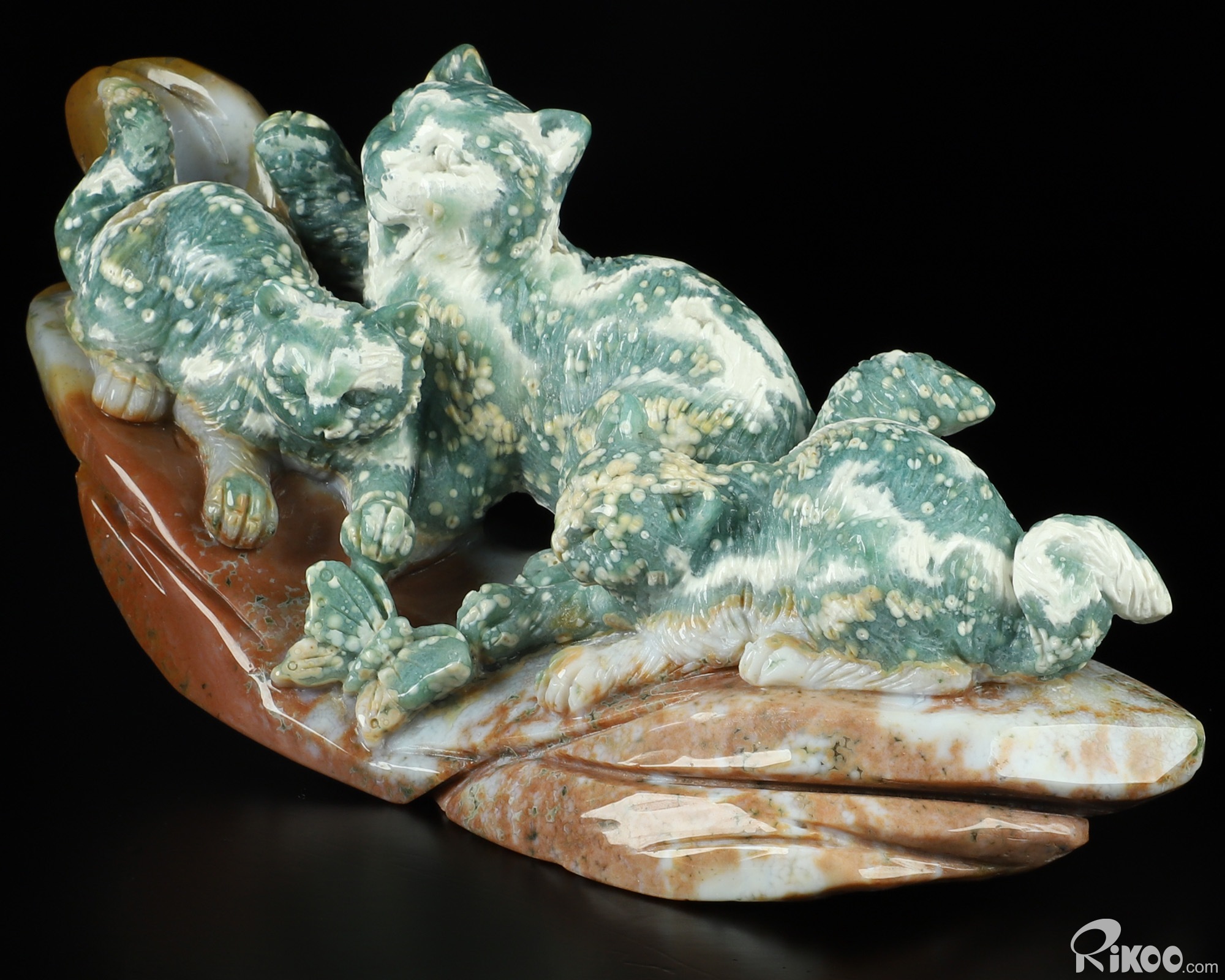 7.9" Ocean Jasper Hand Carved Crystal Cat Sculpture, Crystal Healing