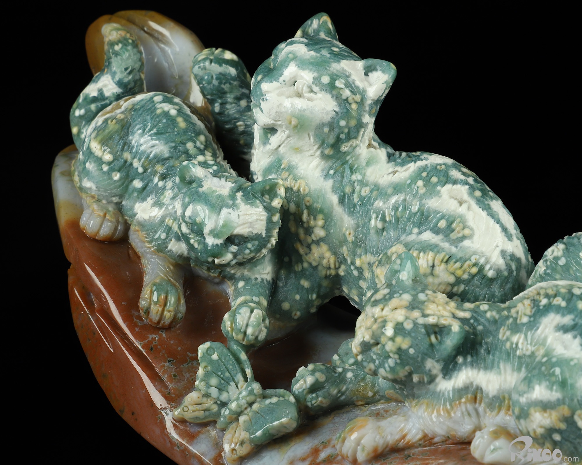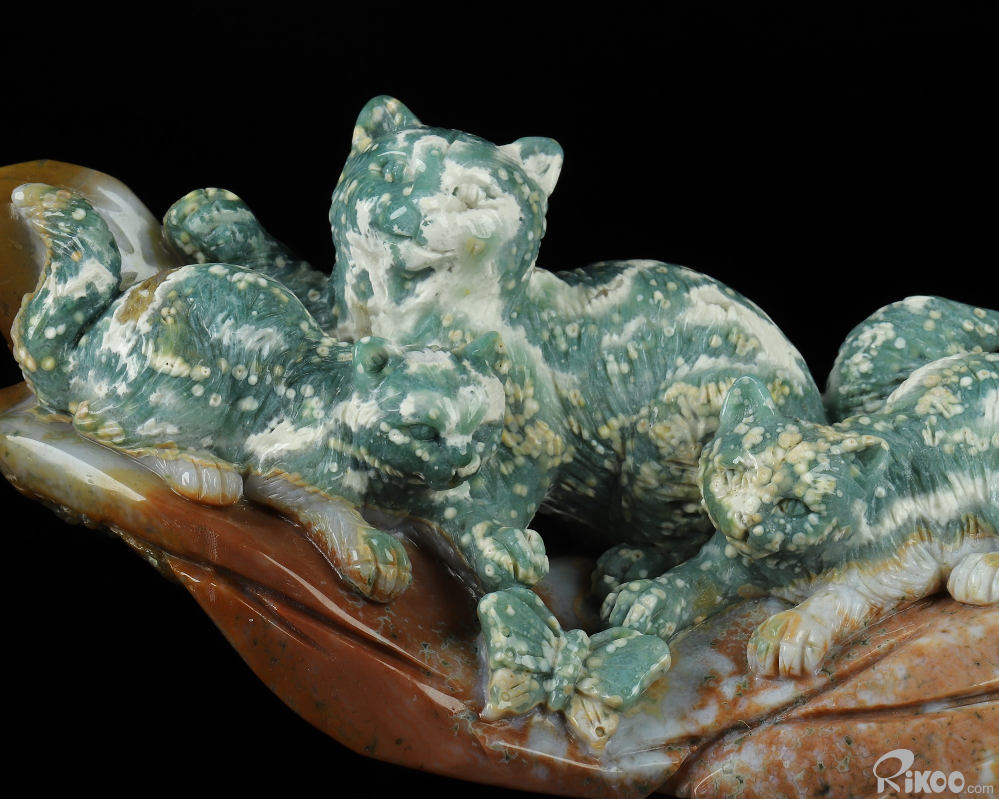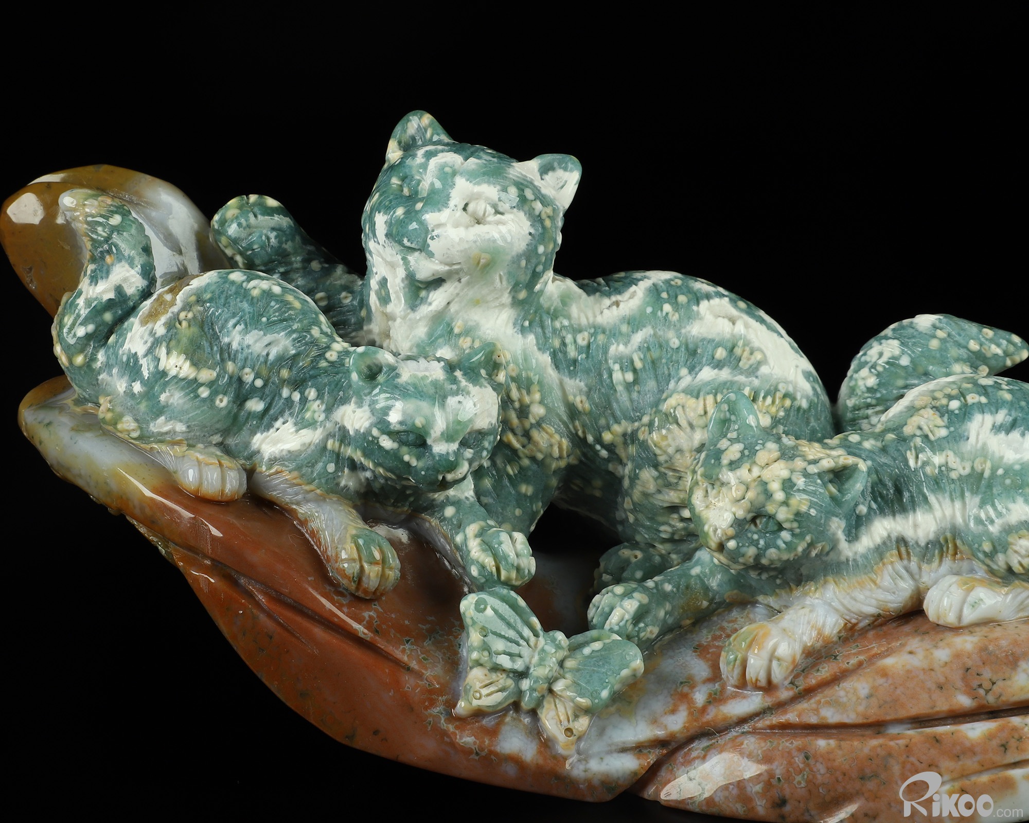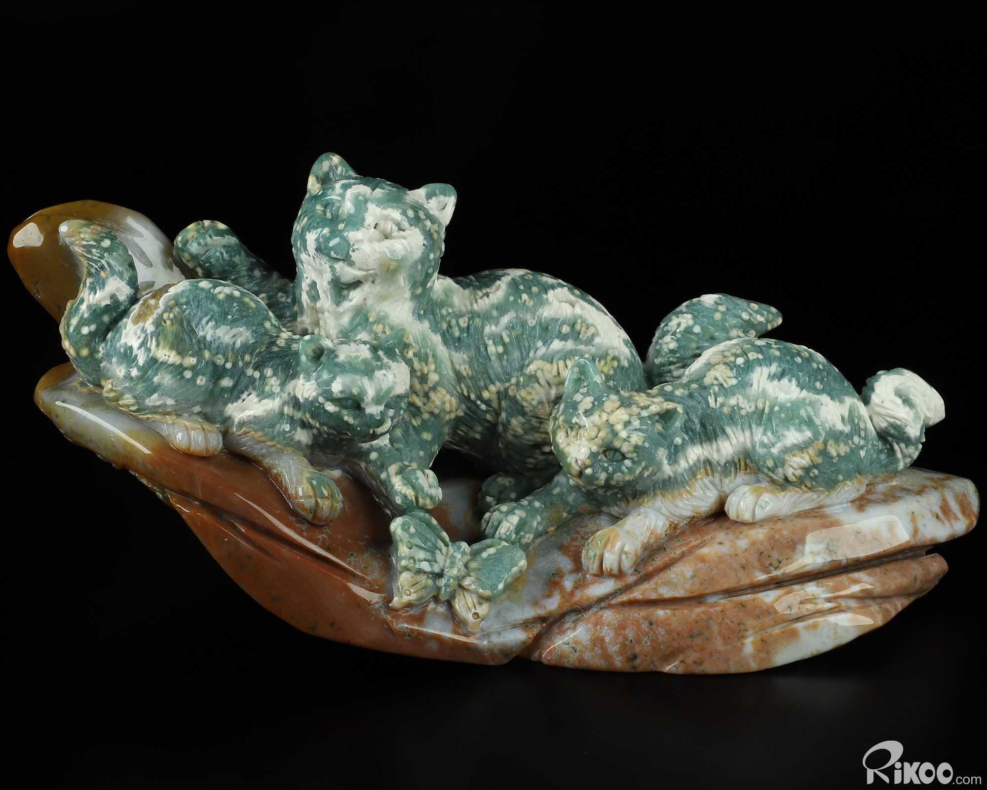 7.9" Ocean Jasper Hand Carved Crystal Cat Sculpture, Crystal Healing