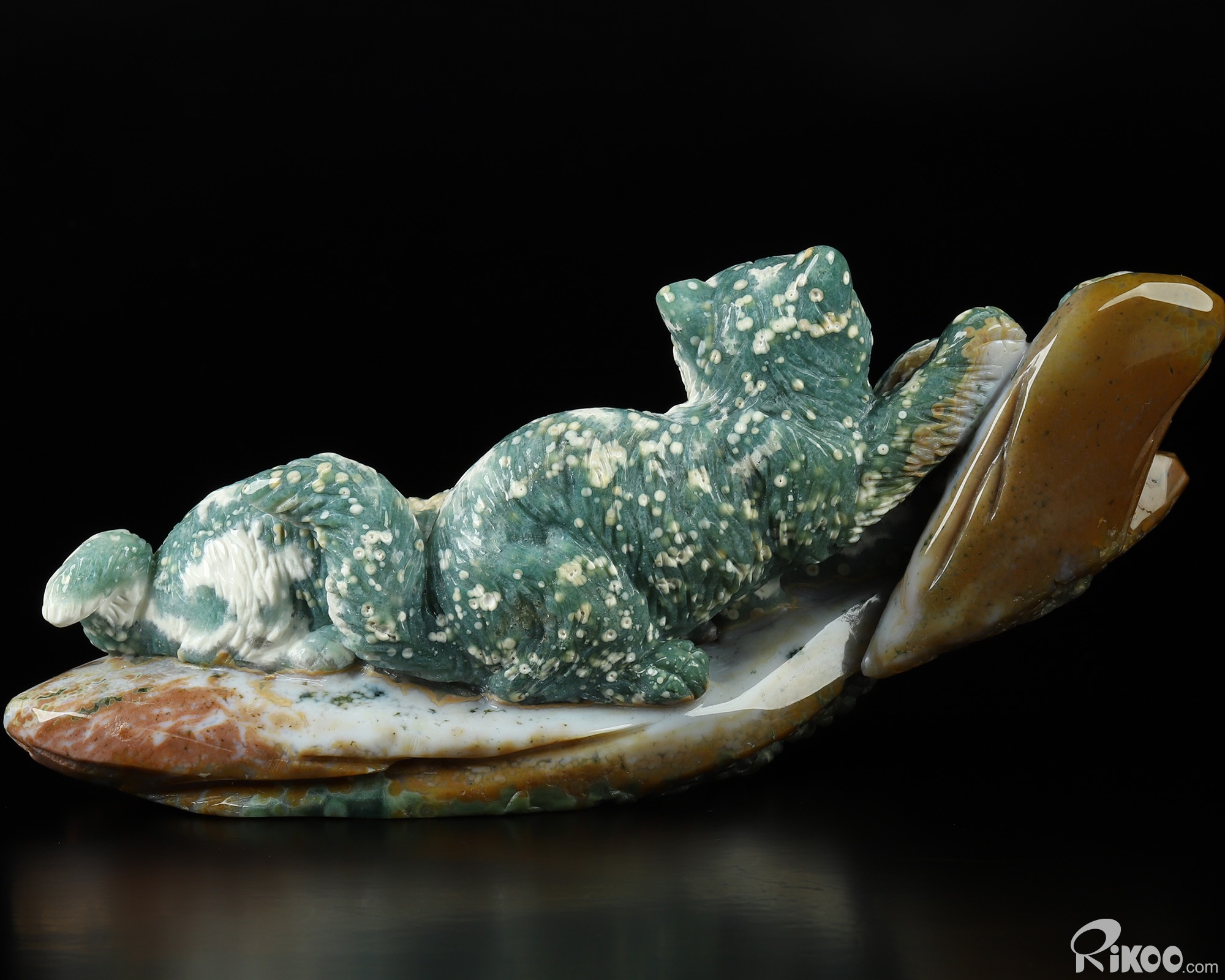 You are looking at a Ocean Jasper sculpture. The sculpture is 7.9 inches long.