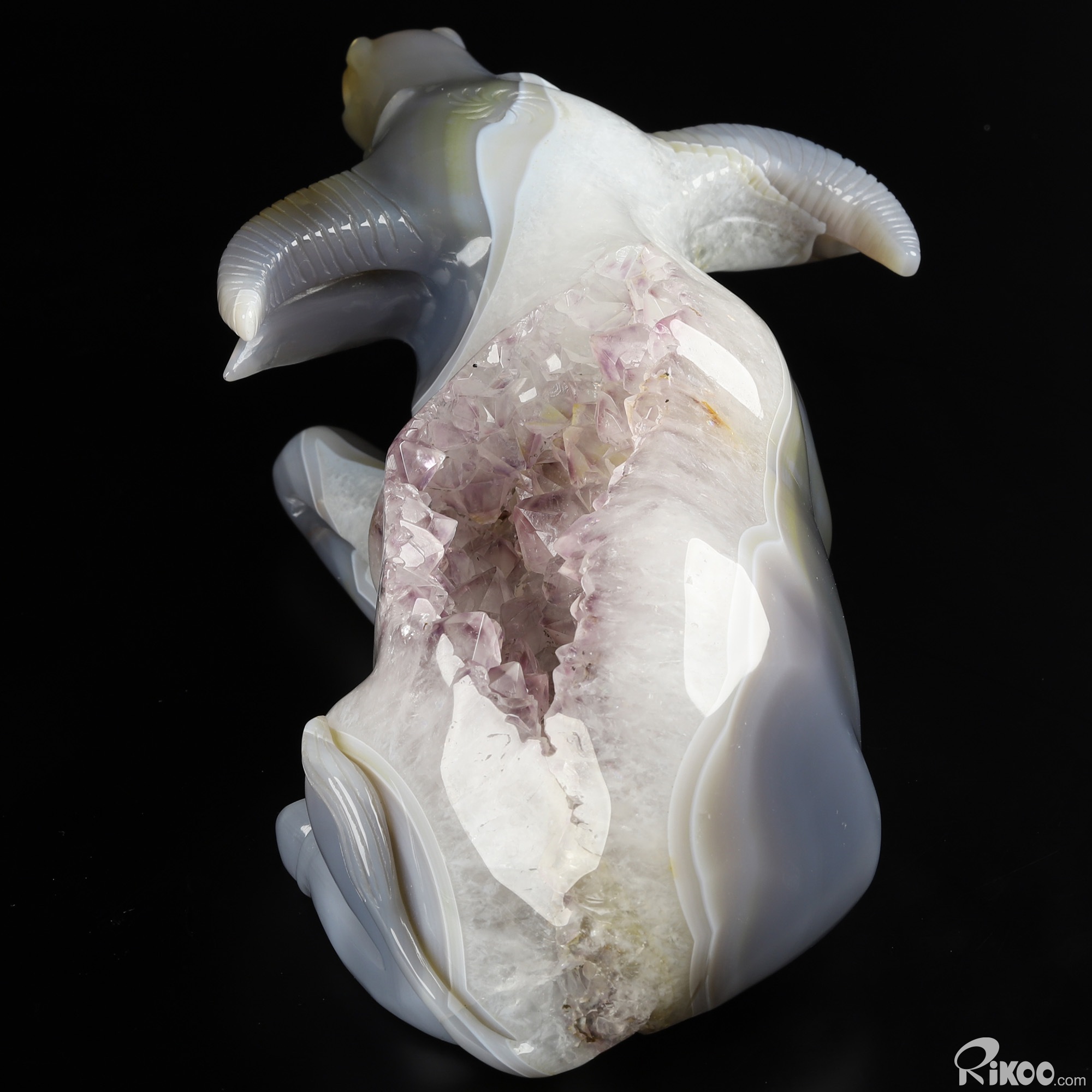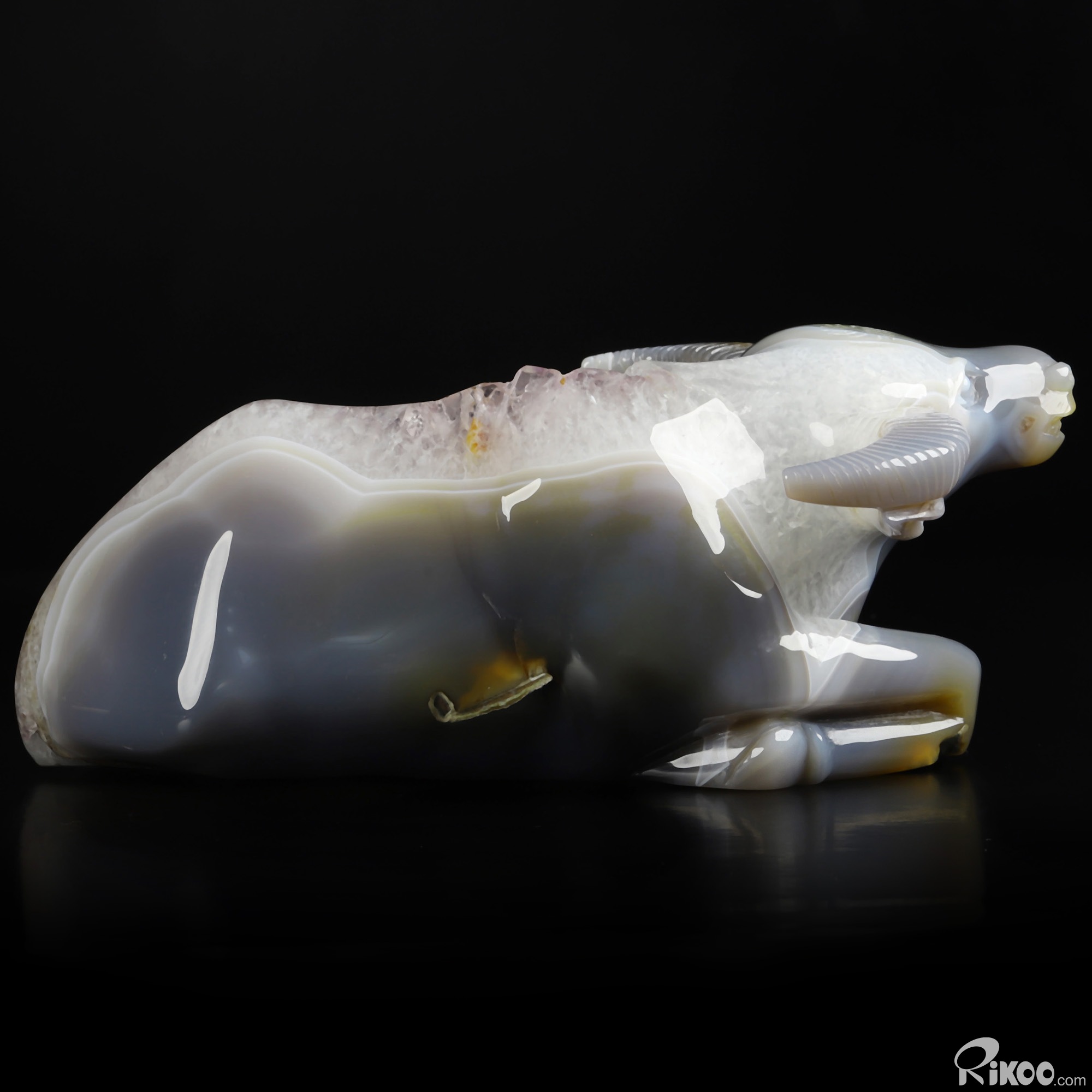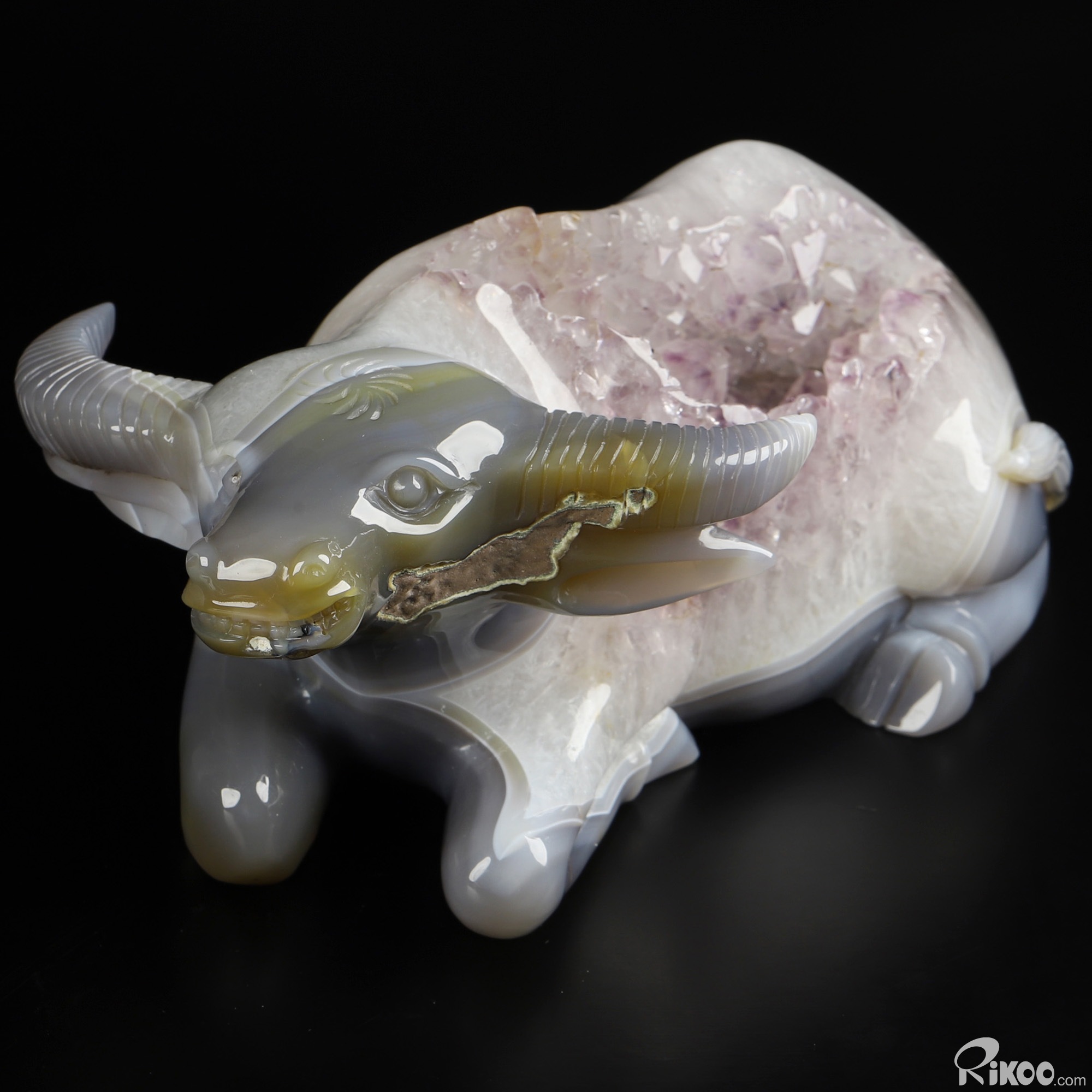 8.0" Agate Amethyst Druse Hand Carved Crystal Cattle Sculpture, Crystal Healing