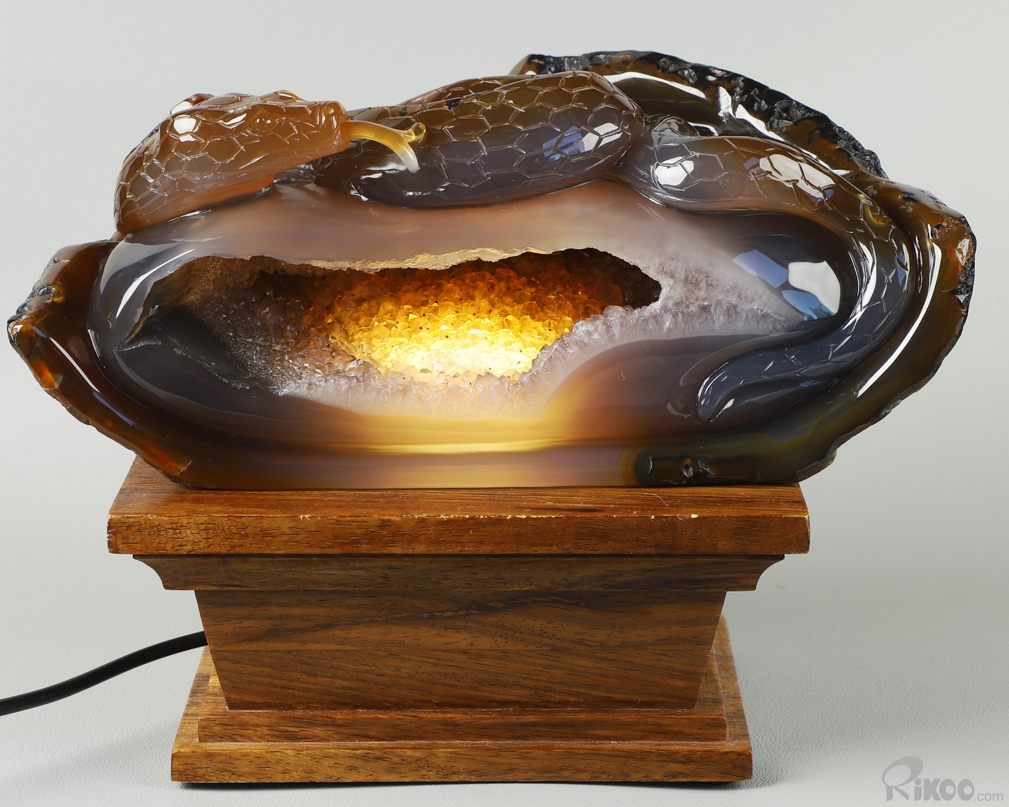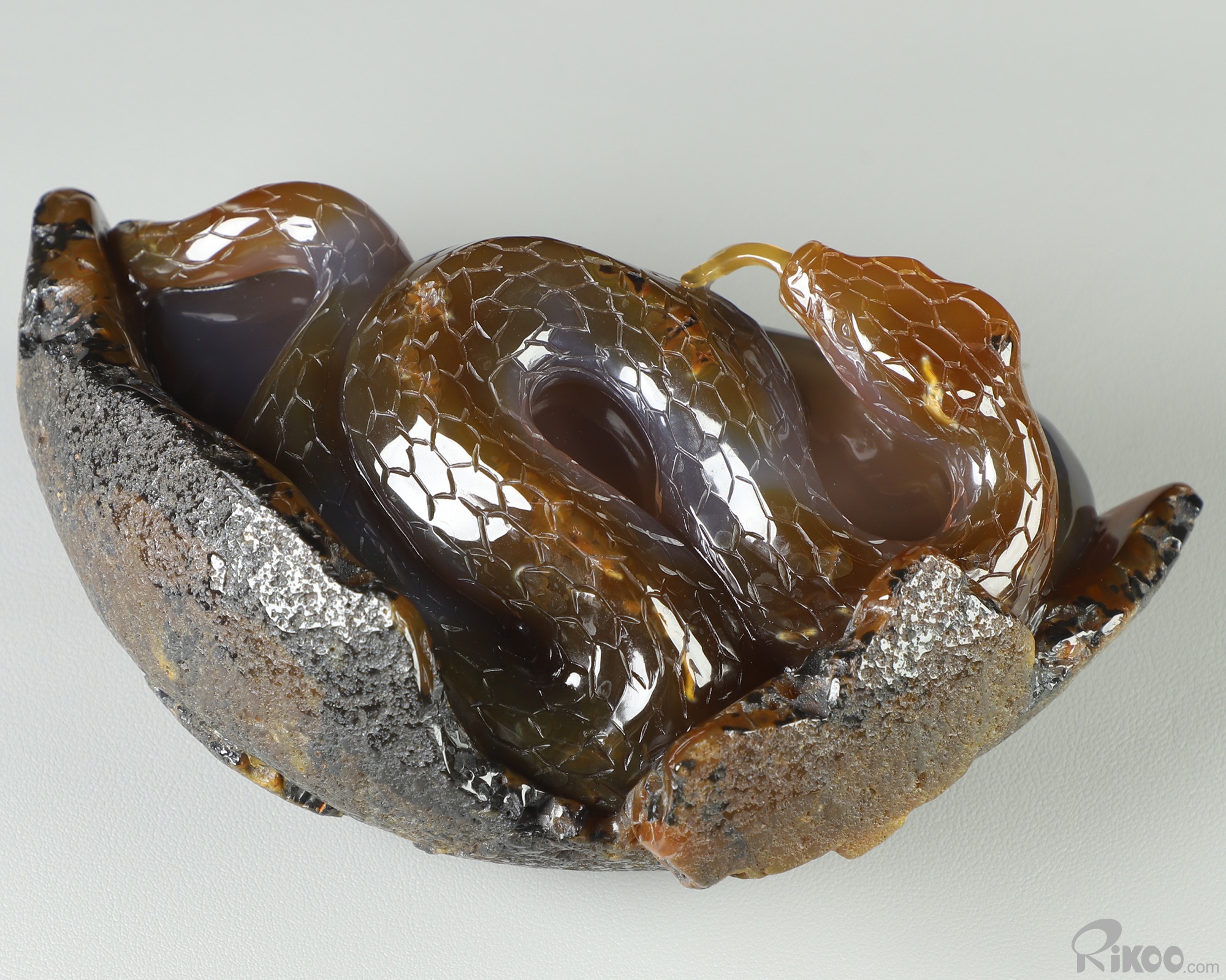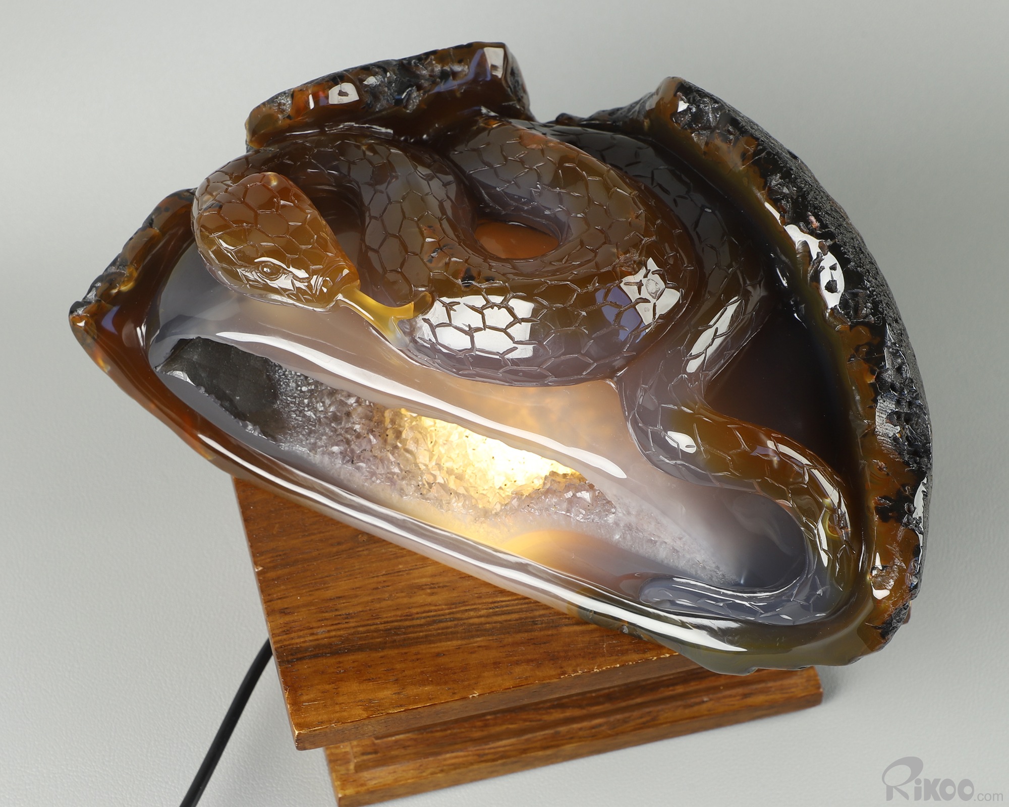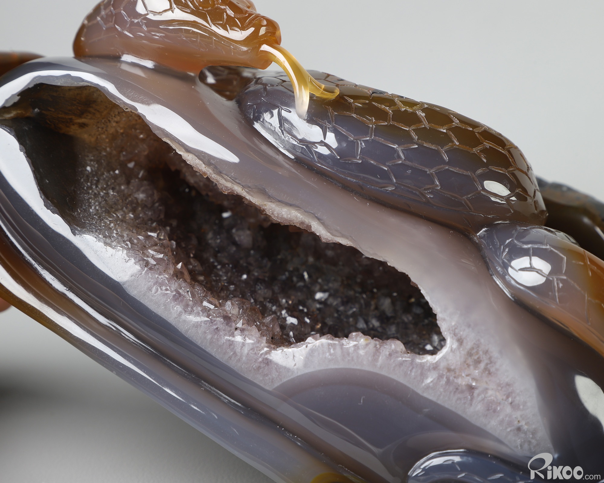 8.0" Agate Amethyst Geode Hand Carved Crystal Snake Sculpture, Crystal Healing