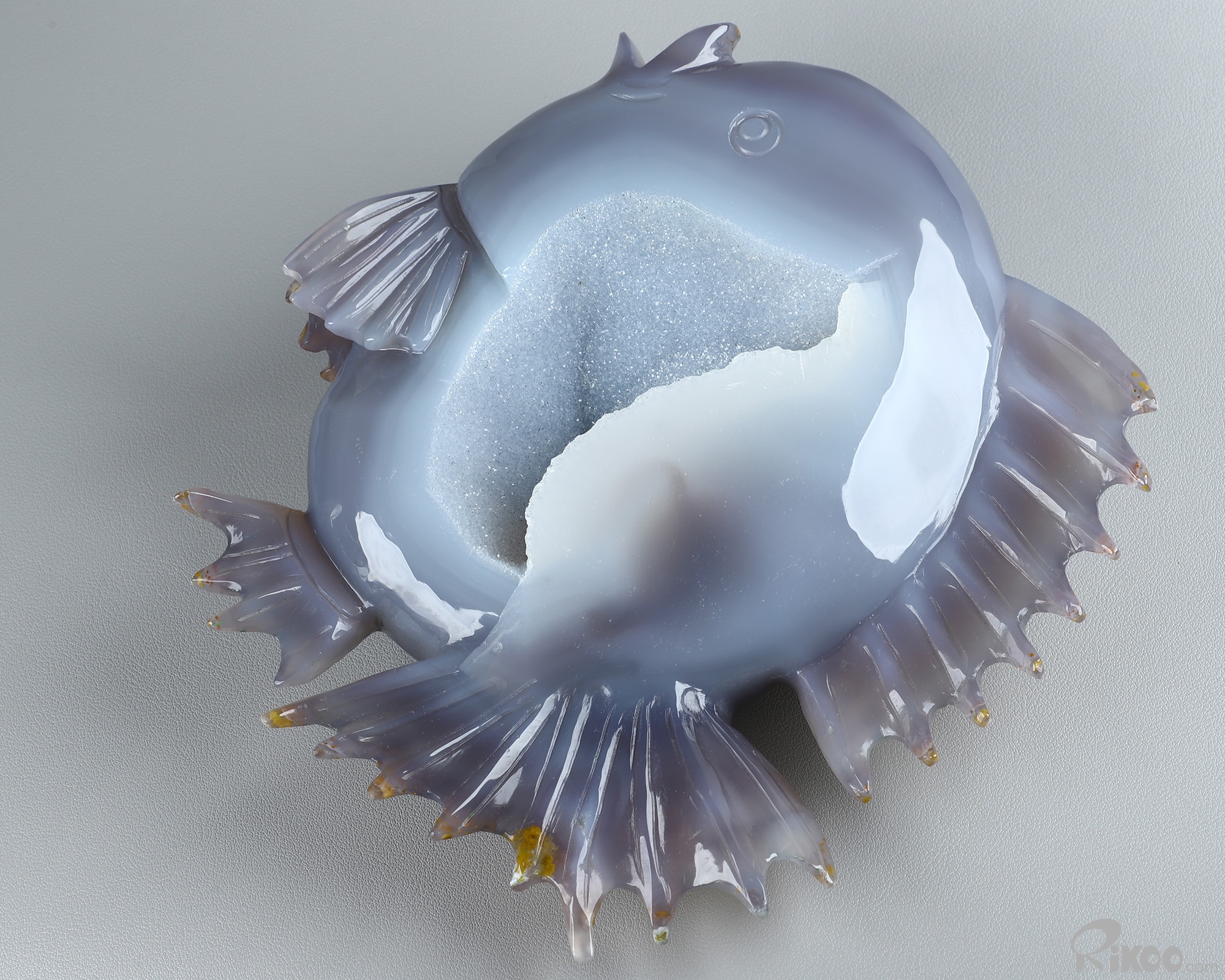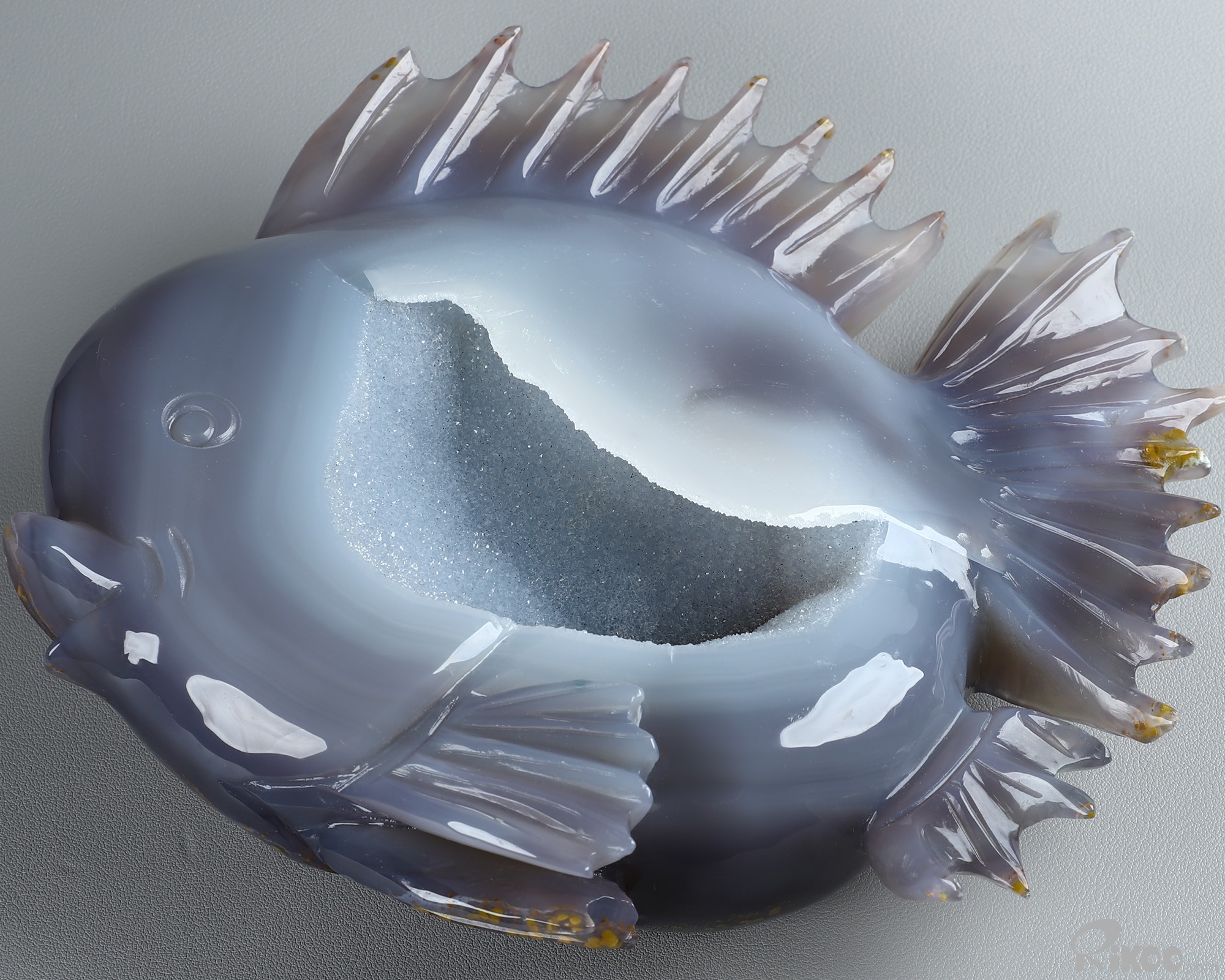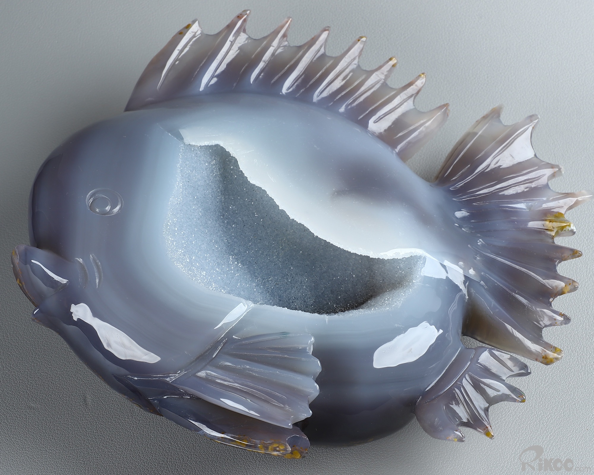 8.0" Agate Geode Hand Carved Crystal Fish Sculpture, Crystal Healing