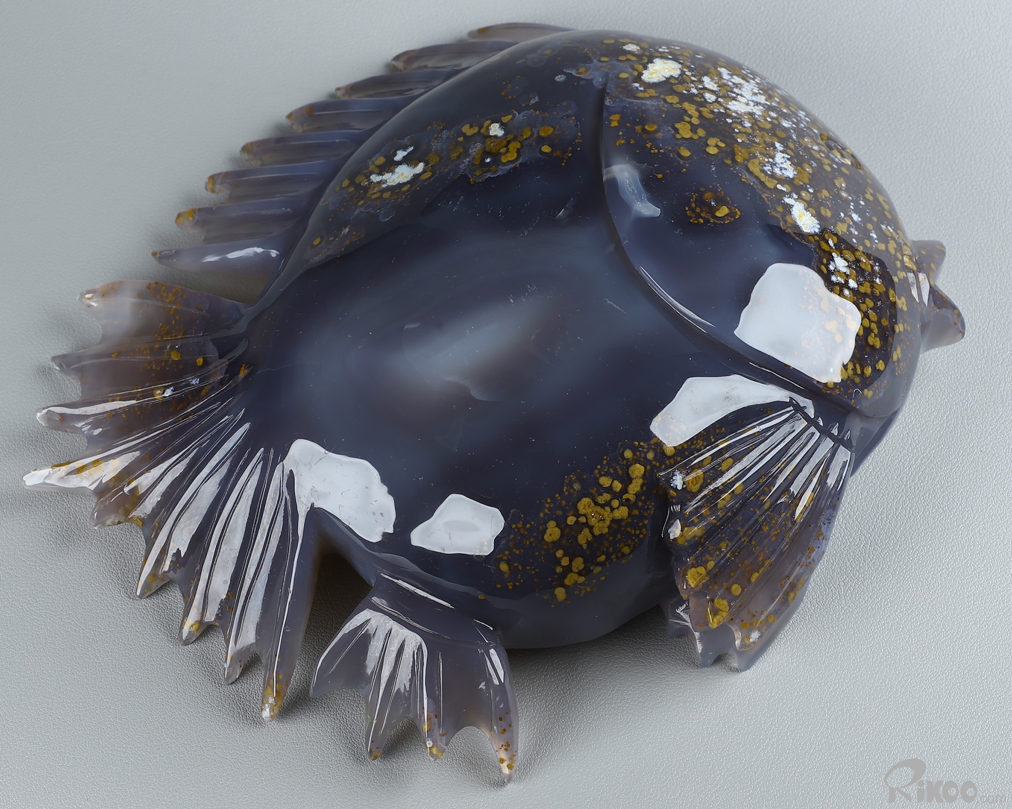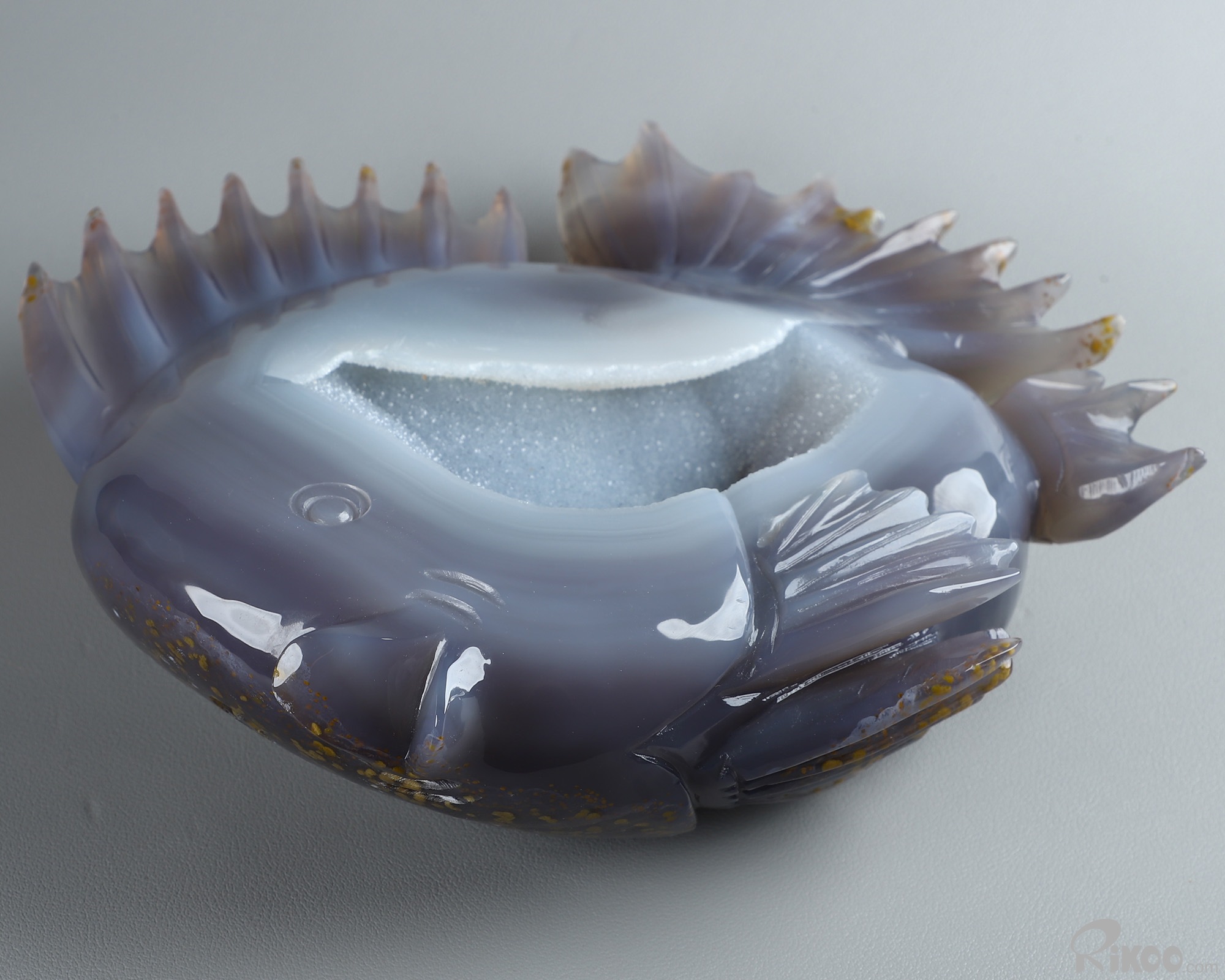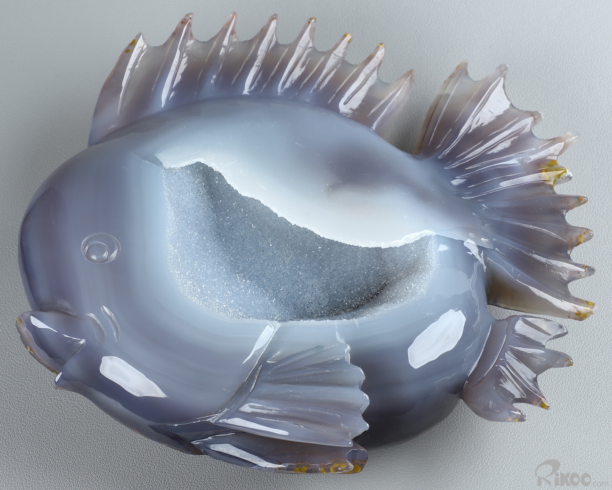 8.0" Agate Geode Hand Carved Crystal Fish Sculpture, Crystal Healing