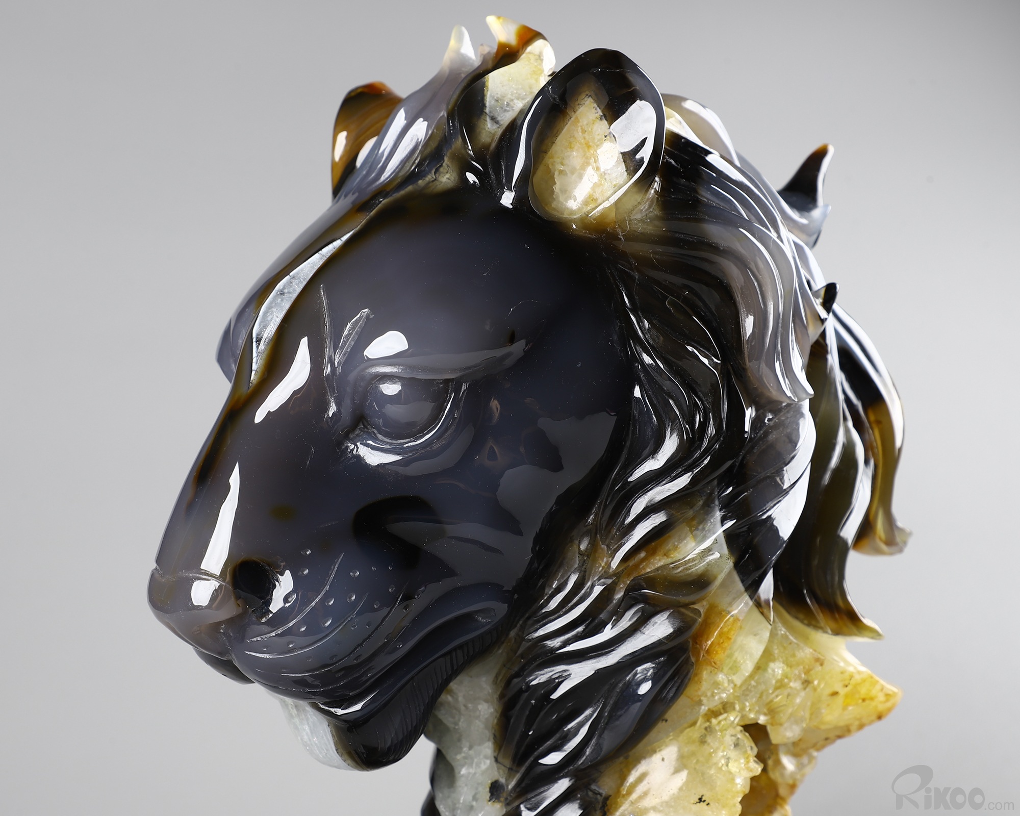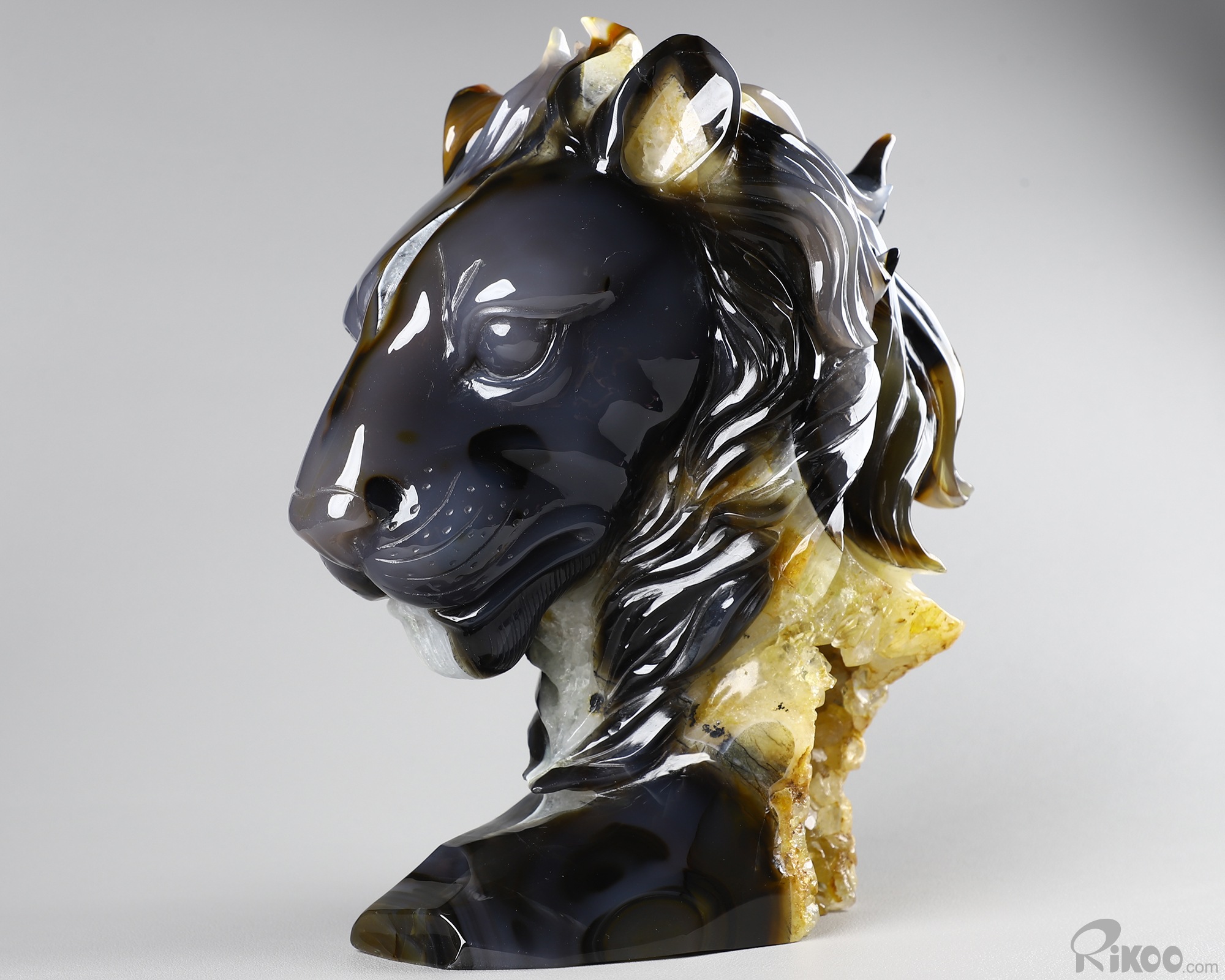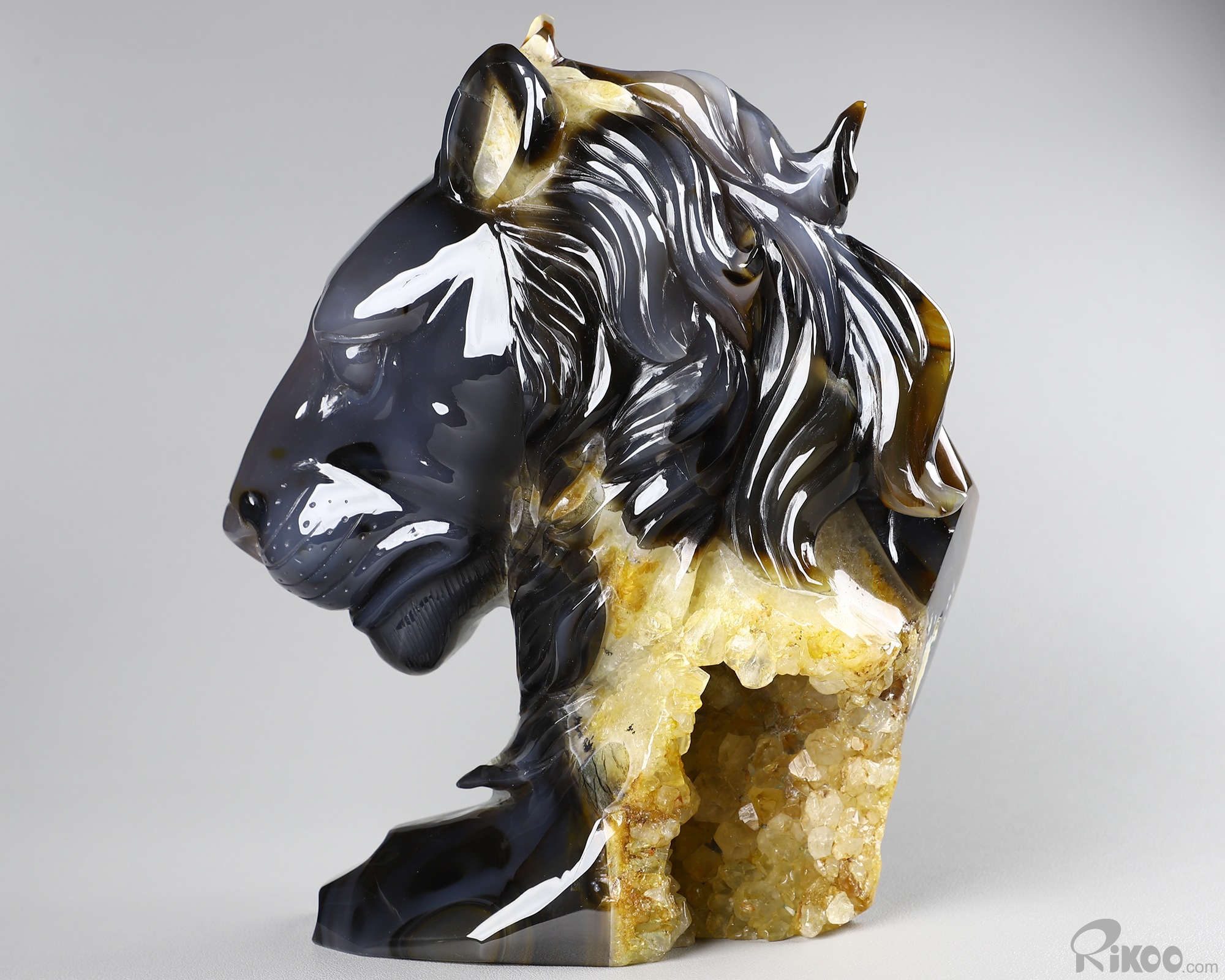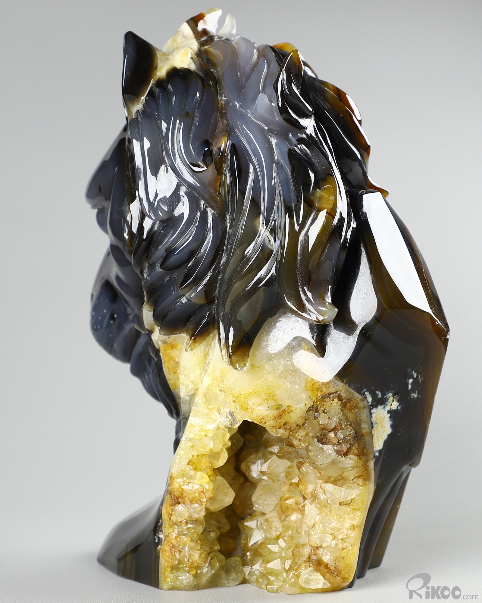 8.0" Agate Geode Hand Carved Crystal Lion Sculpture, Crystal Healing