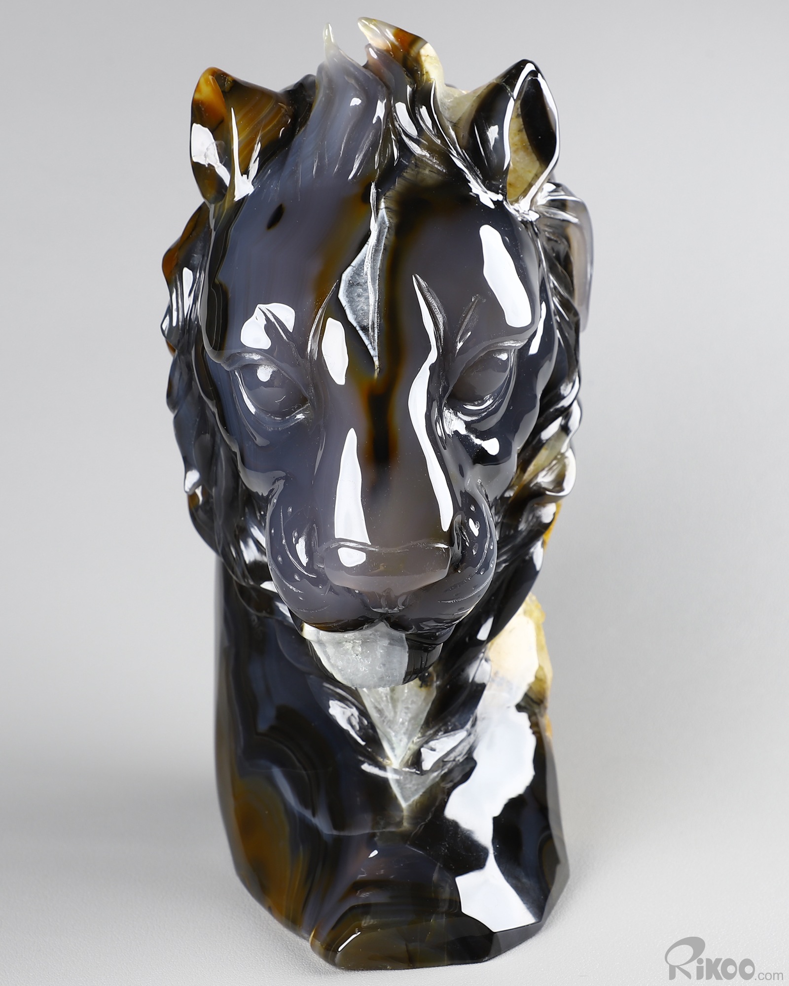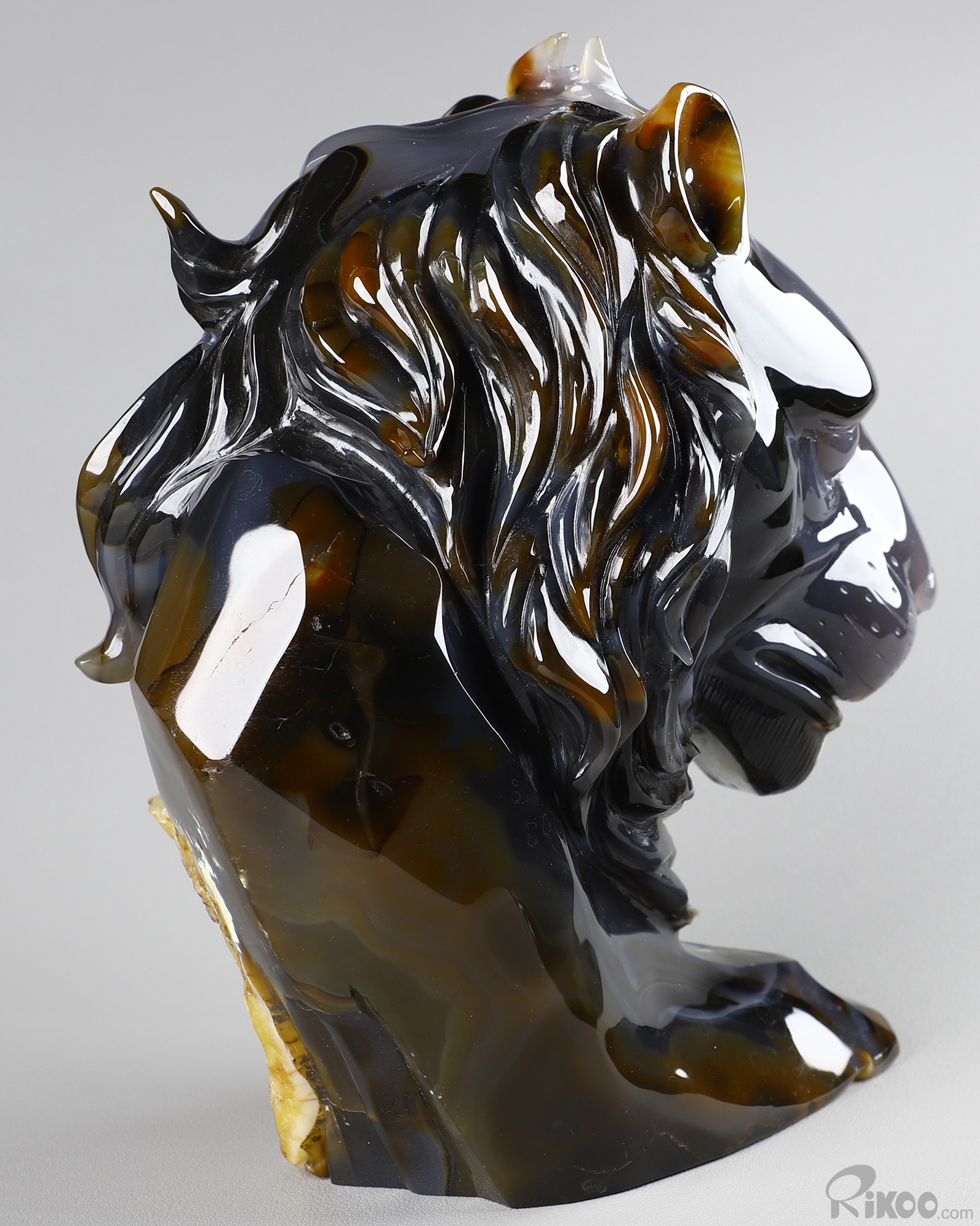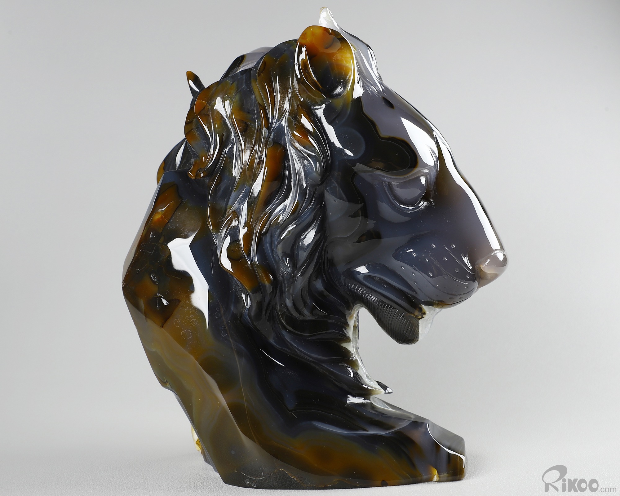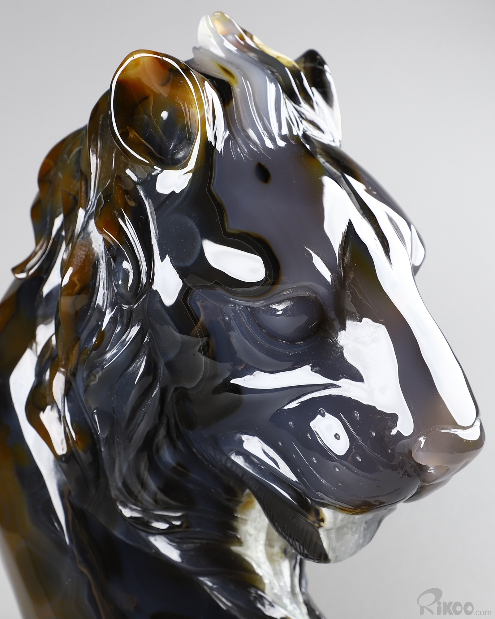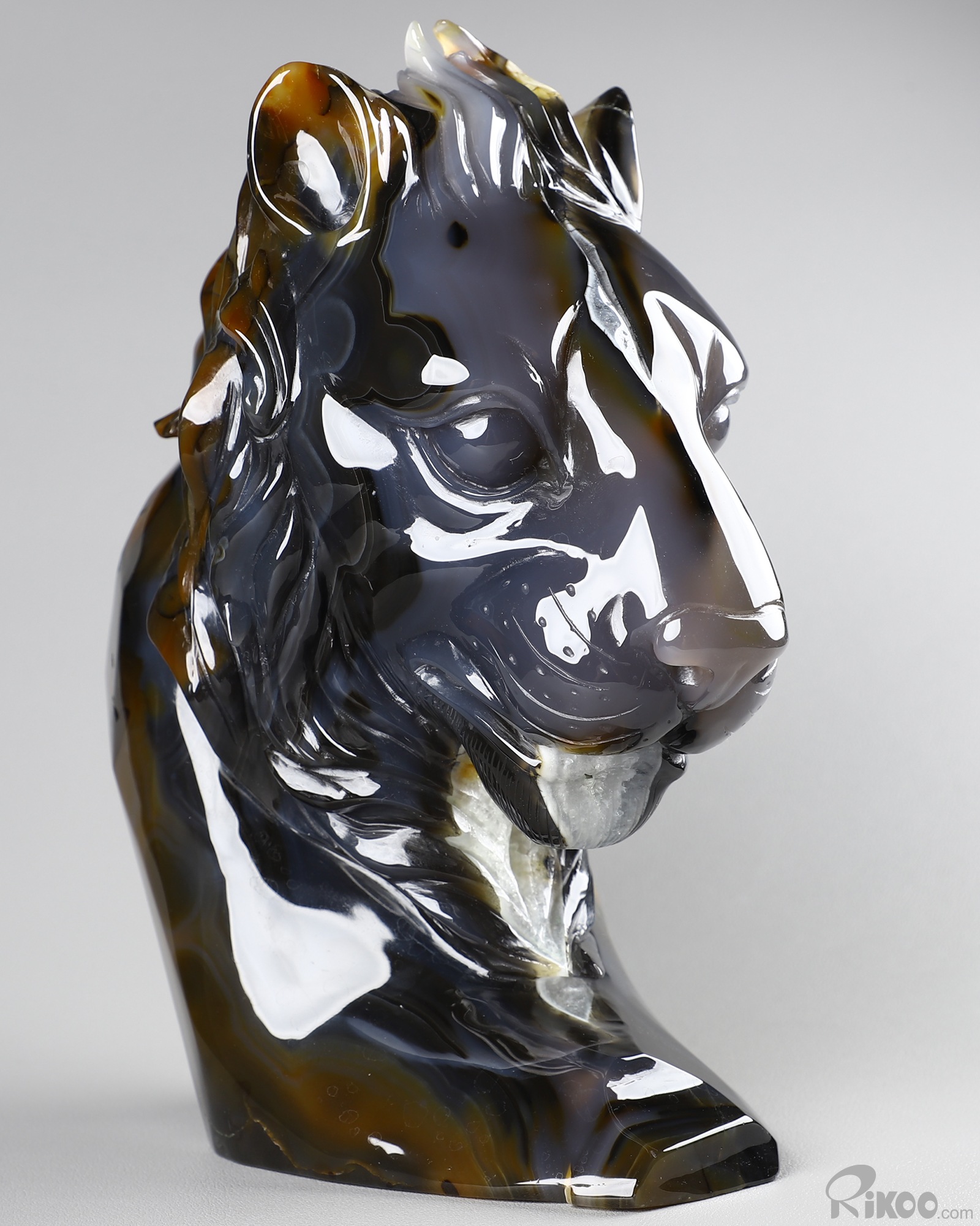 8.0" Agate Geode Hand Carved Crystal Lion Sculpture, Crystal Healing