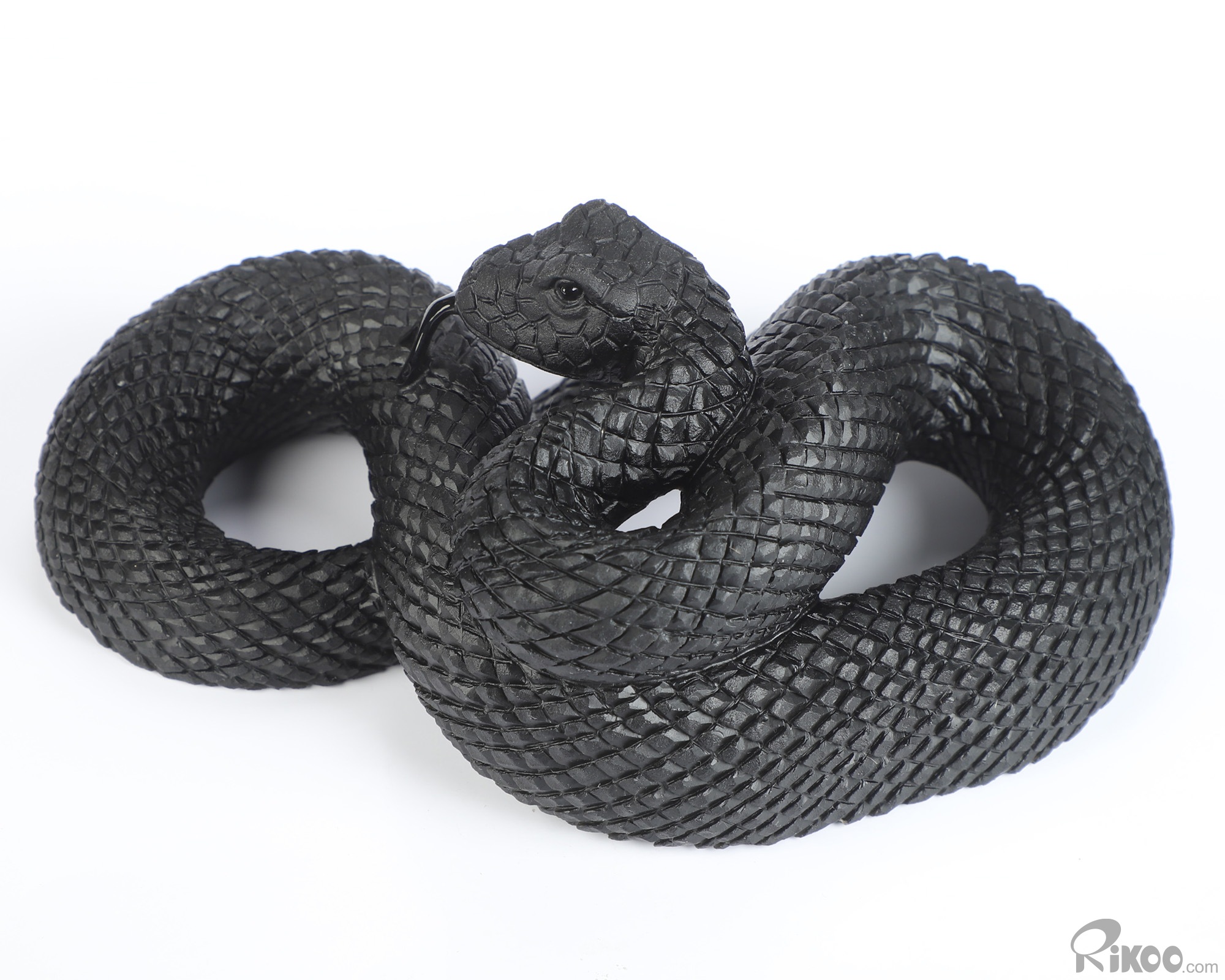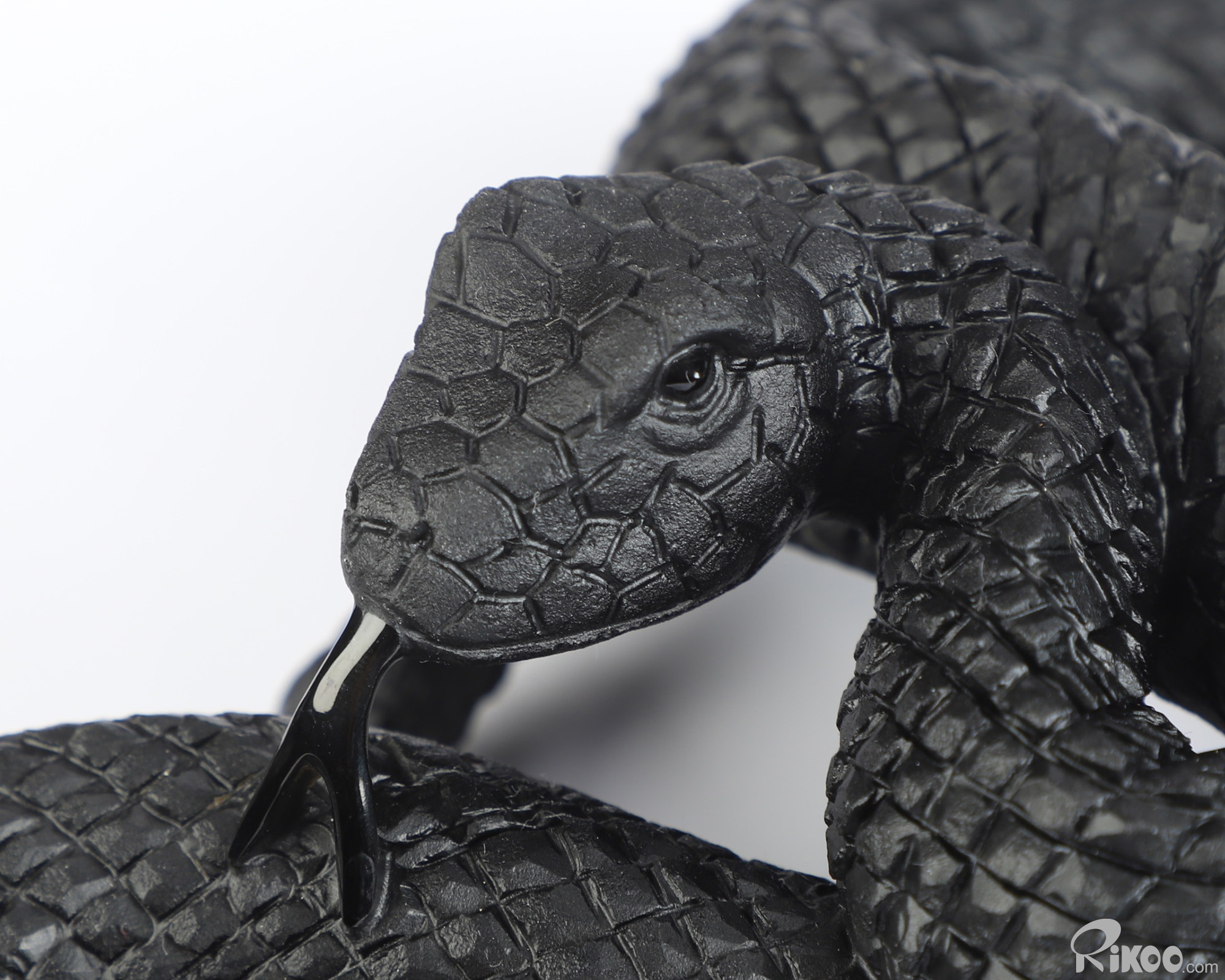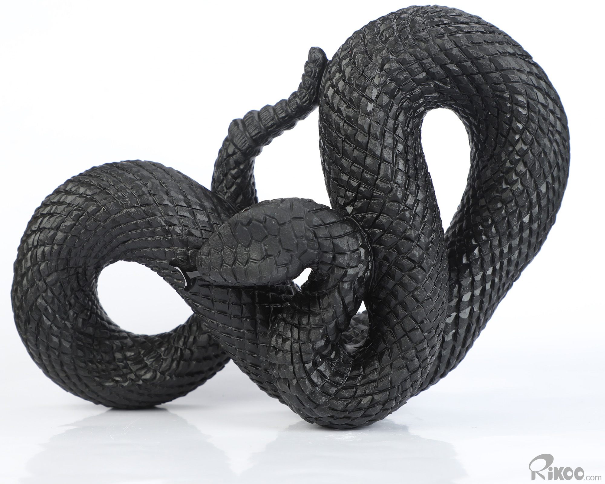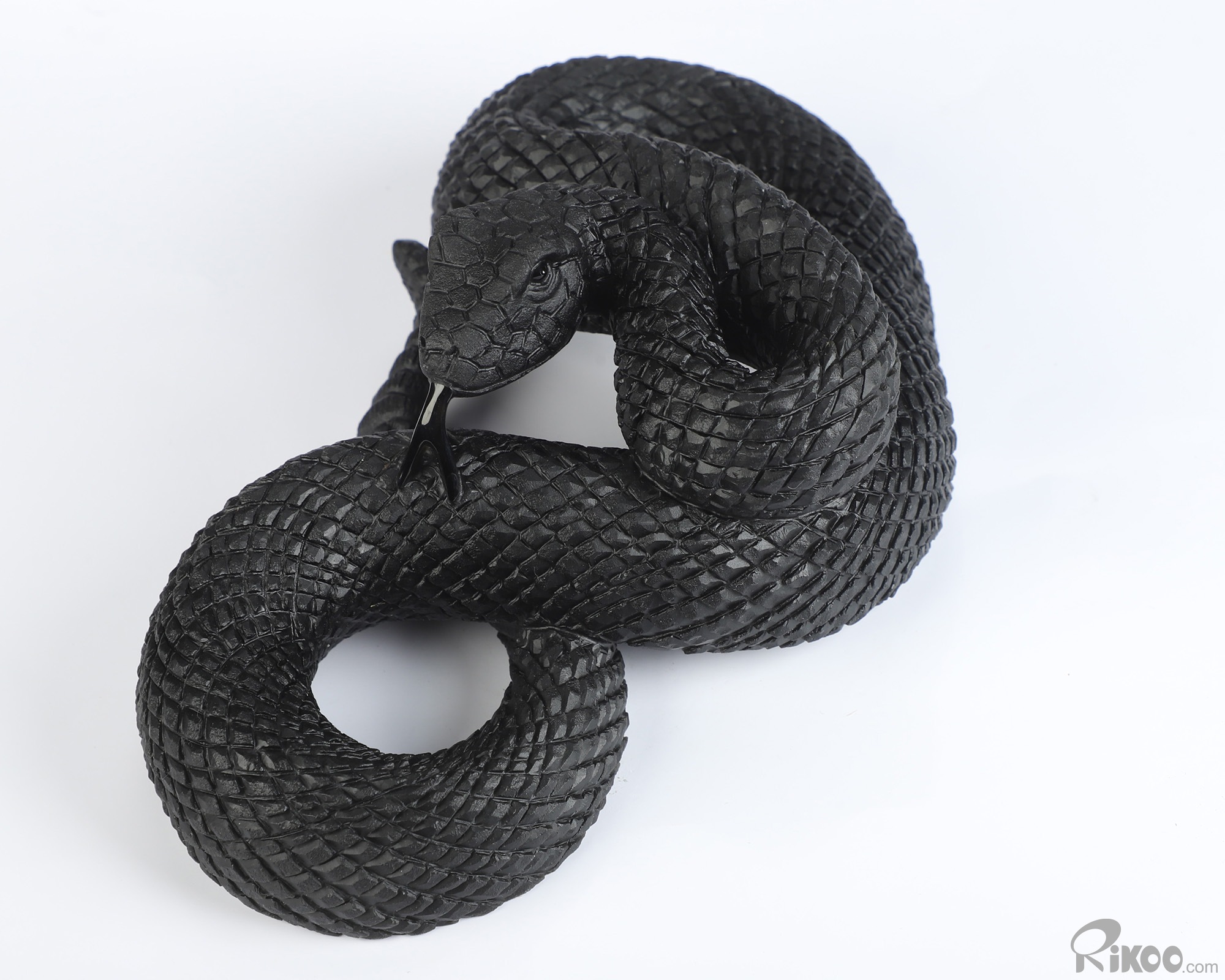 8.0" Black Obsidian Hand Carved Crystal Snake Sculpture, Crystal Healing