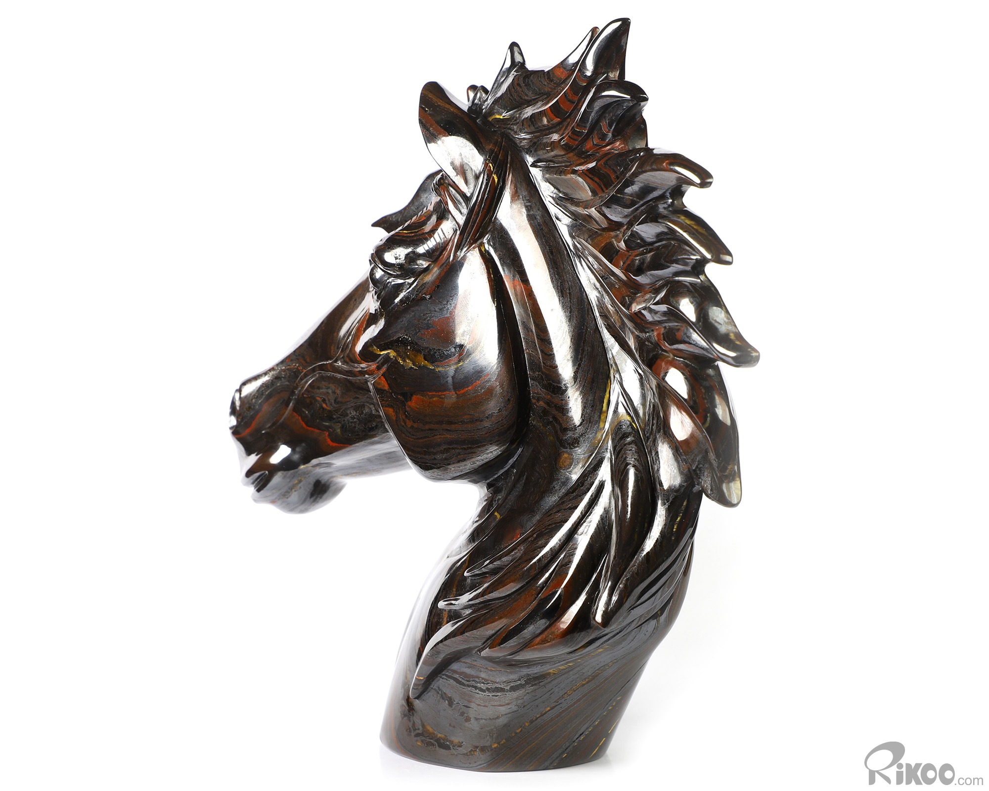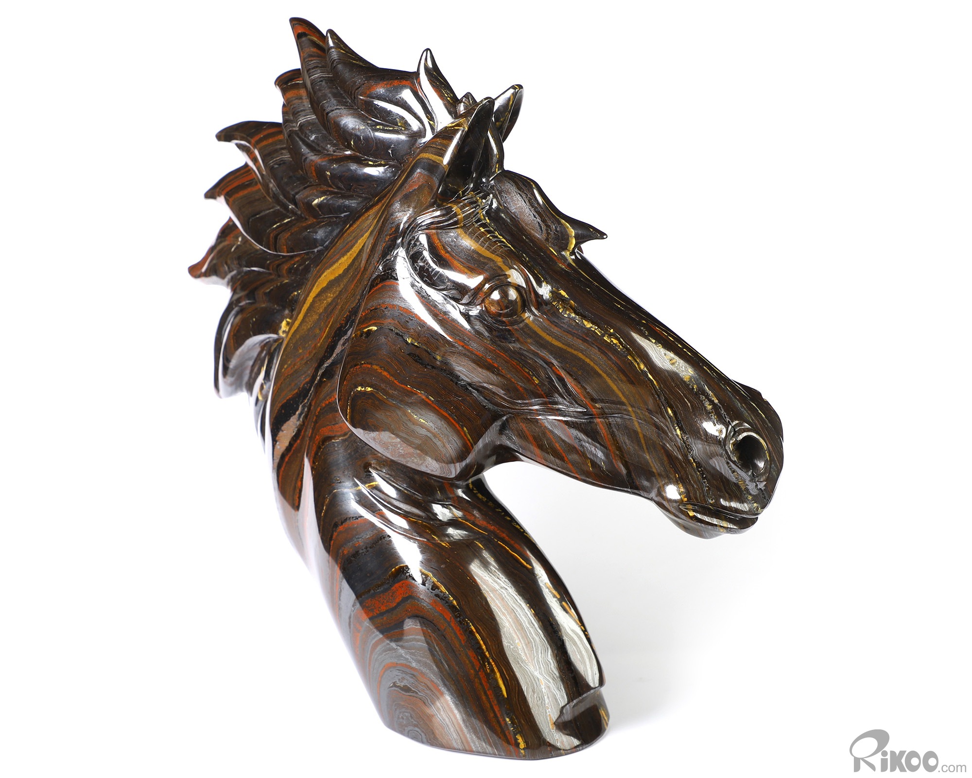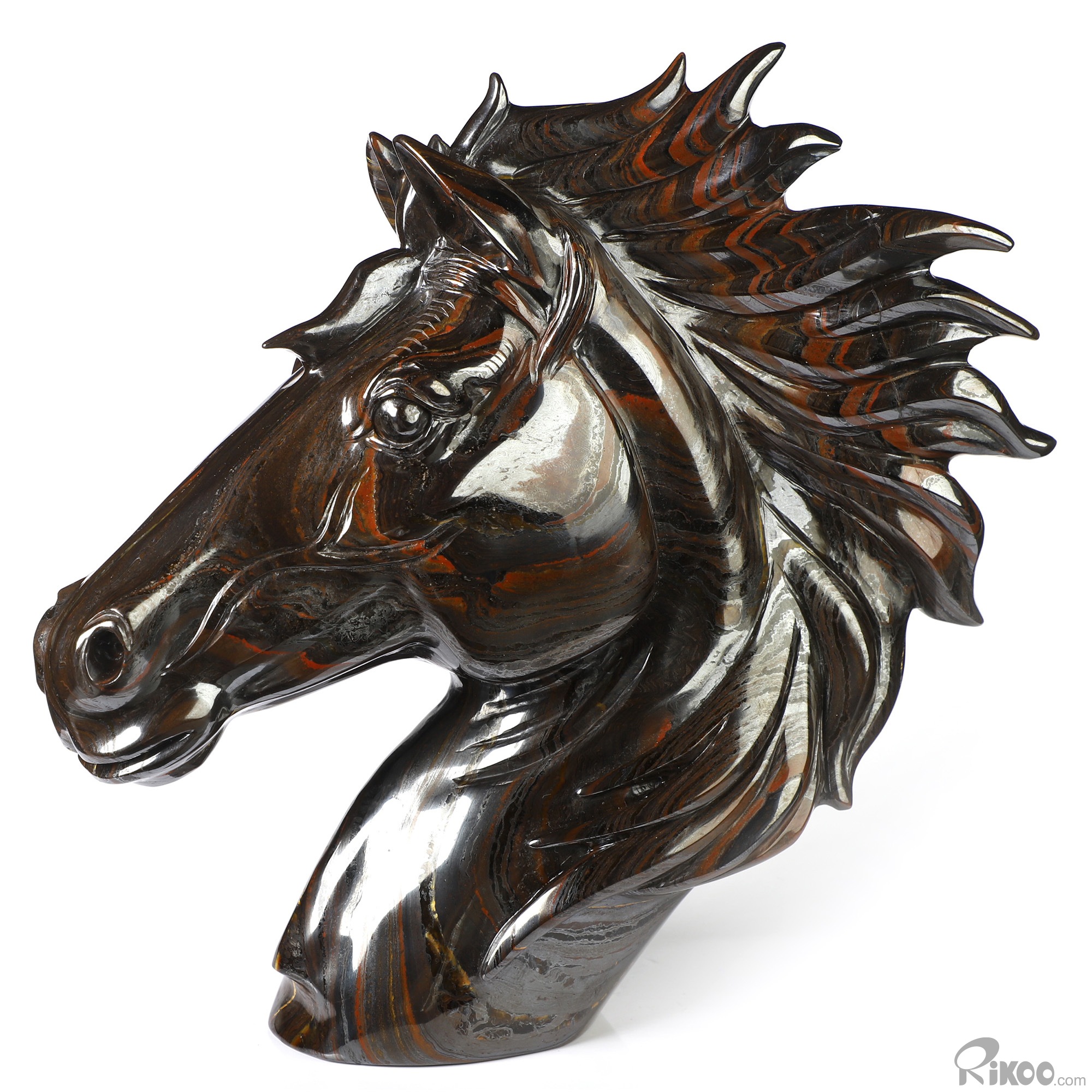 8.0" Colorful Tiger Iron Eye Hand Carved Crystal Horse Sculpture, Crystal Healing