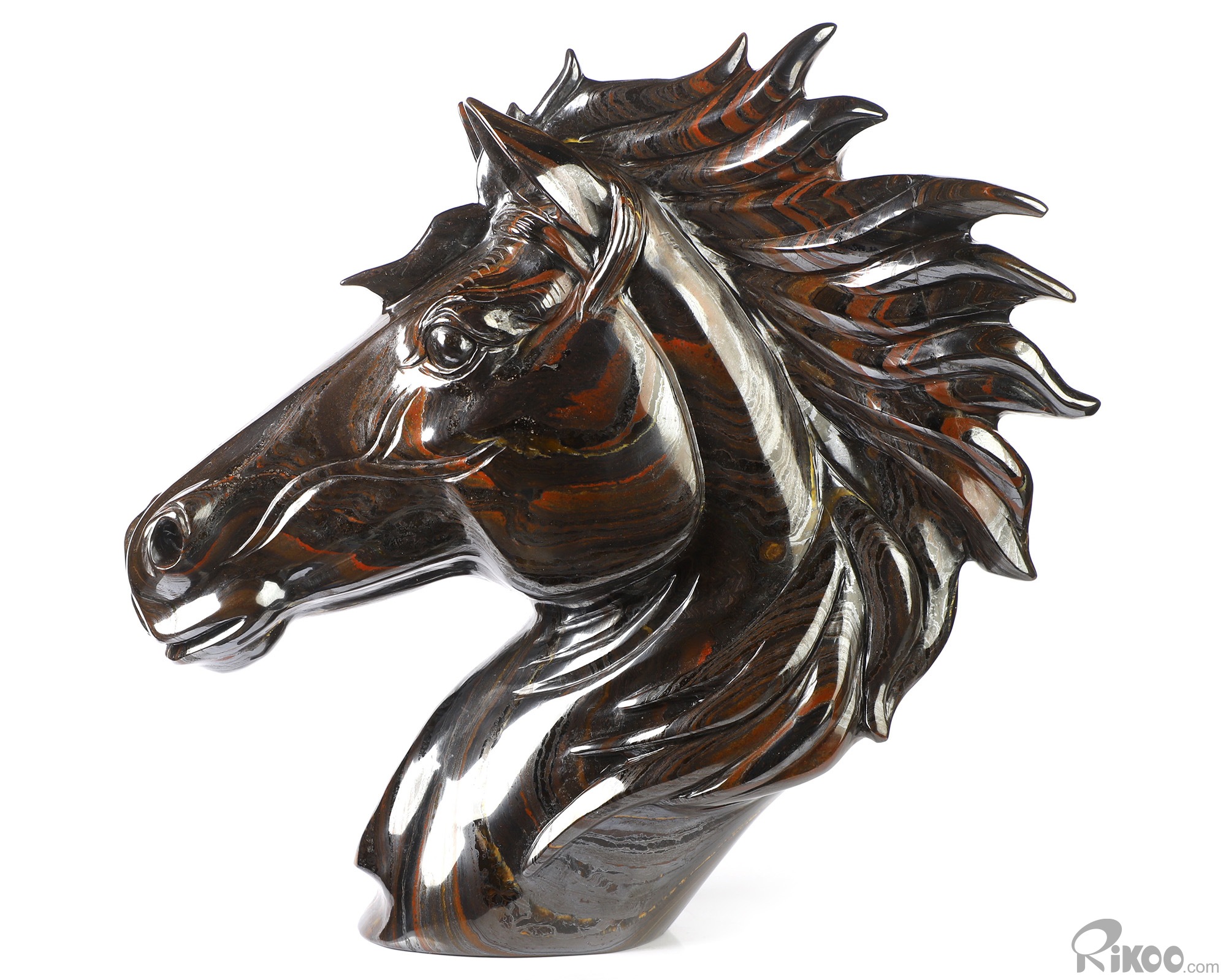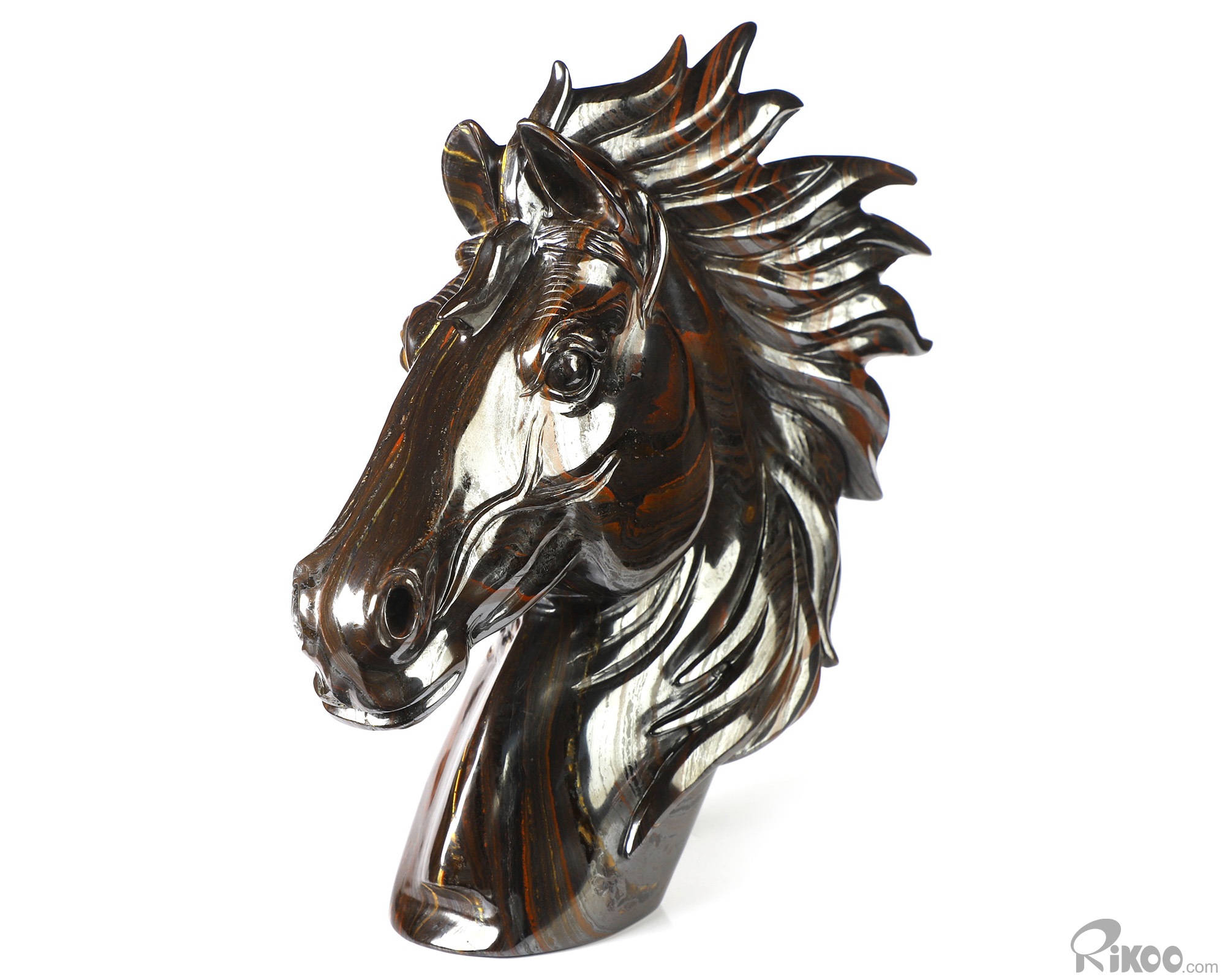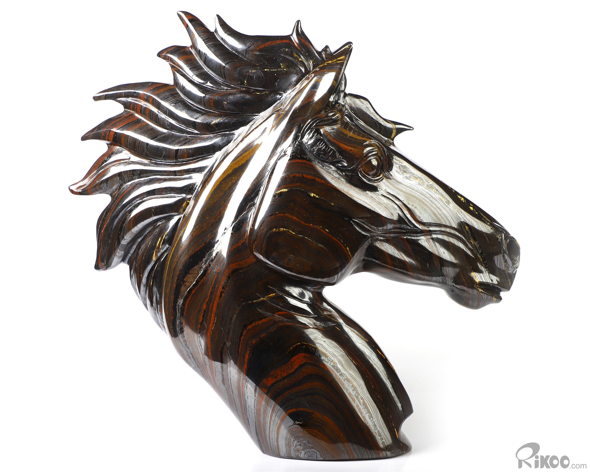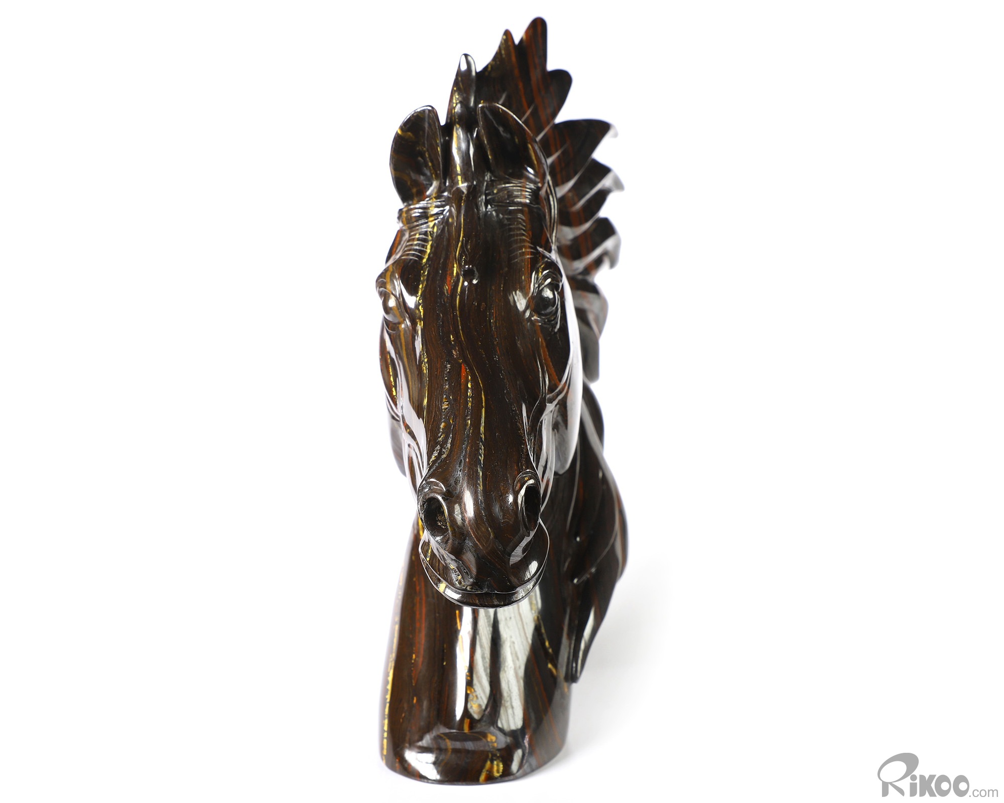 8.0" Colorful Tiger Iron Eye Hand Carved Crystal Horse Sculpture, Crystal Healing