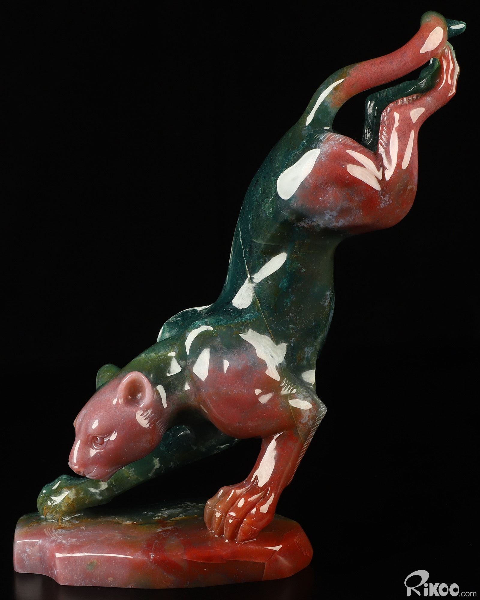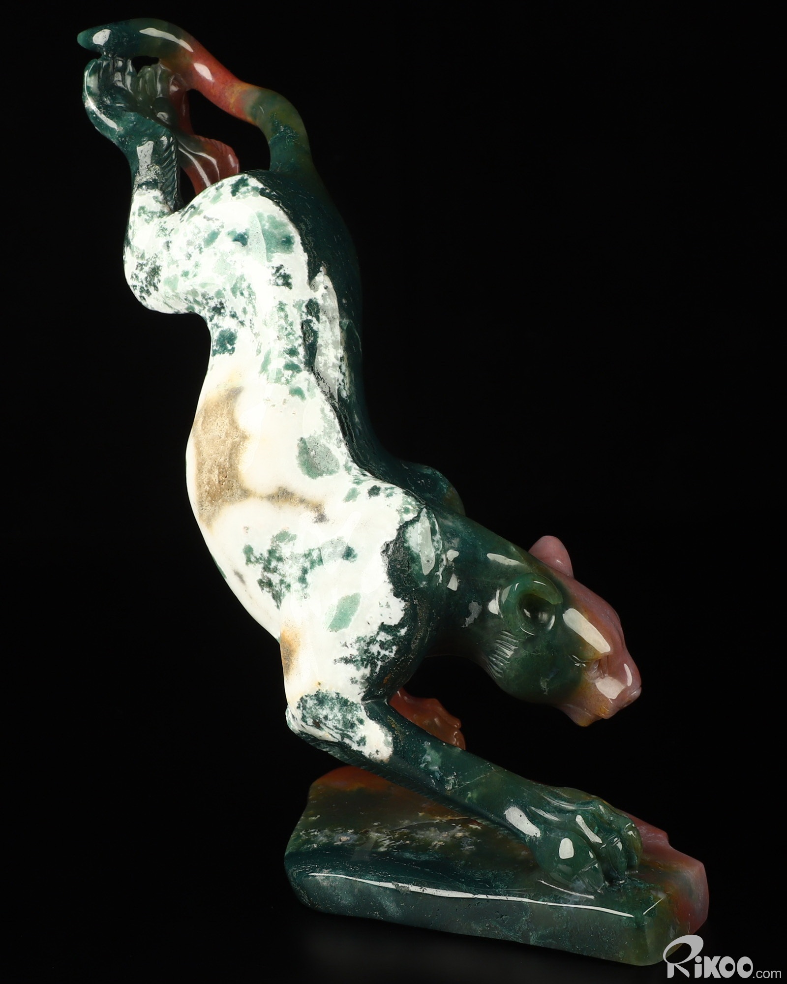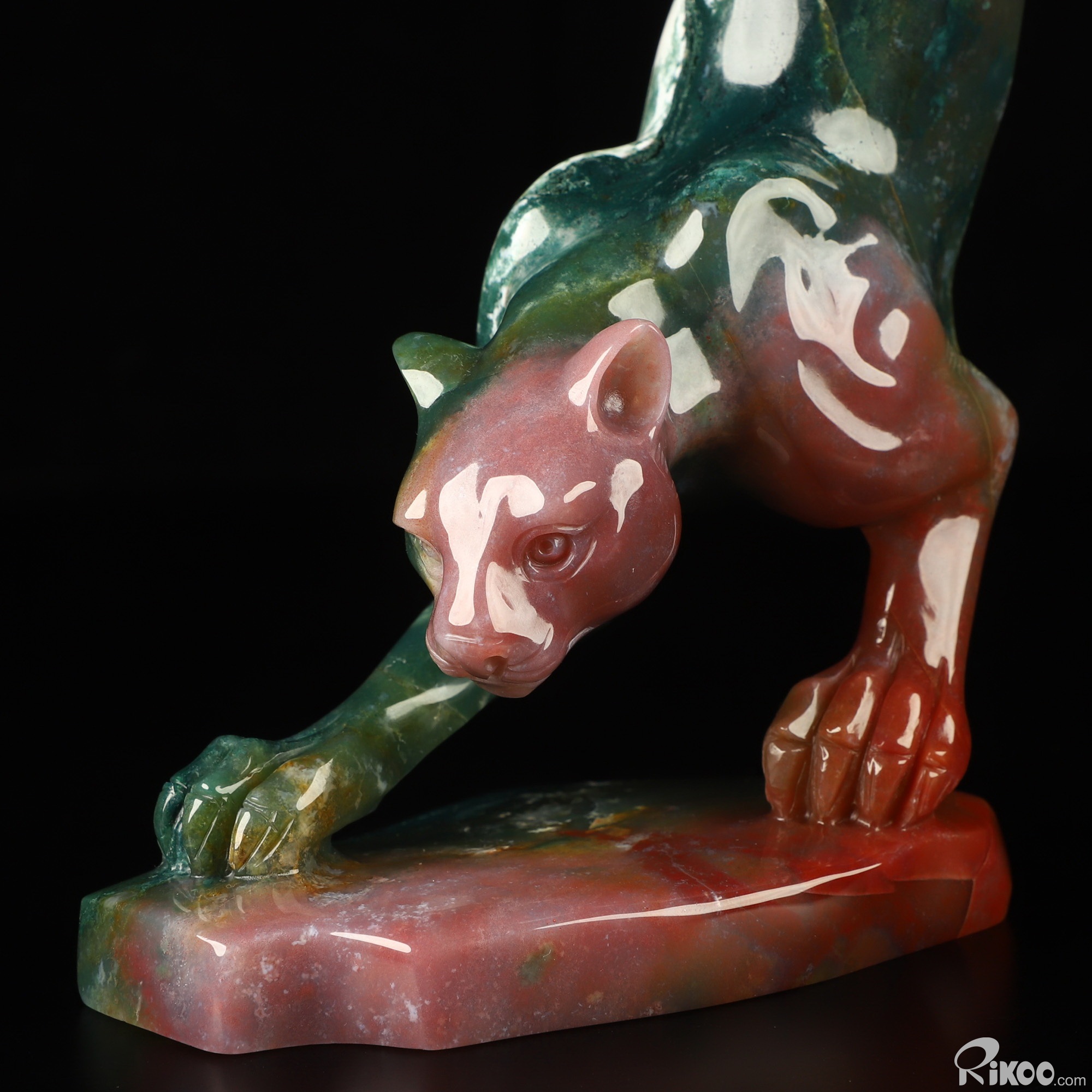 8.0" Indian Agate Hand Carved Crystal Leopard Sculpture, Crystal Healing