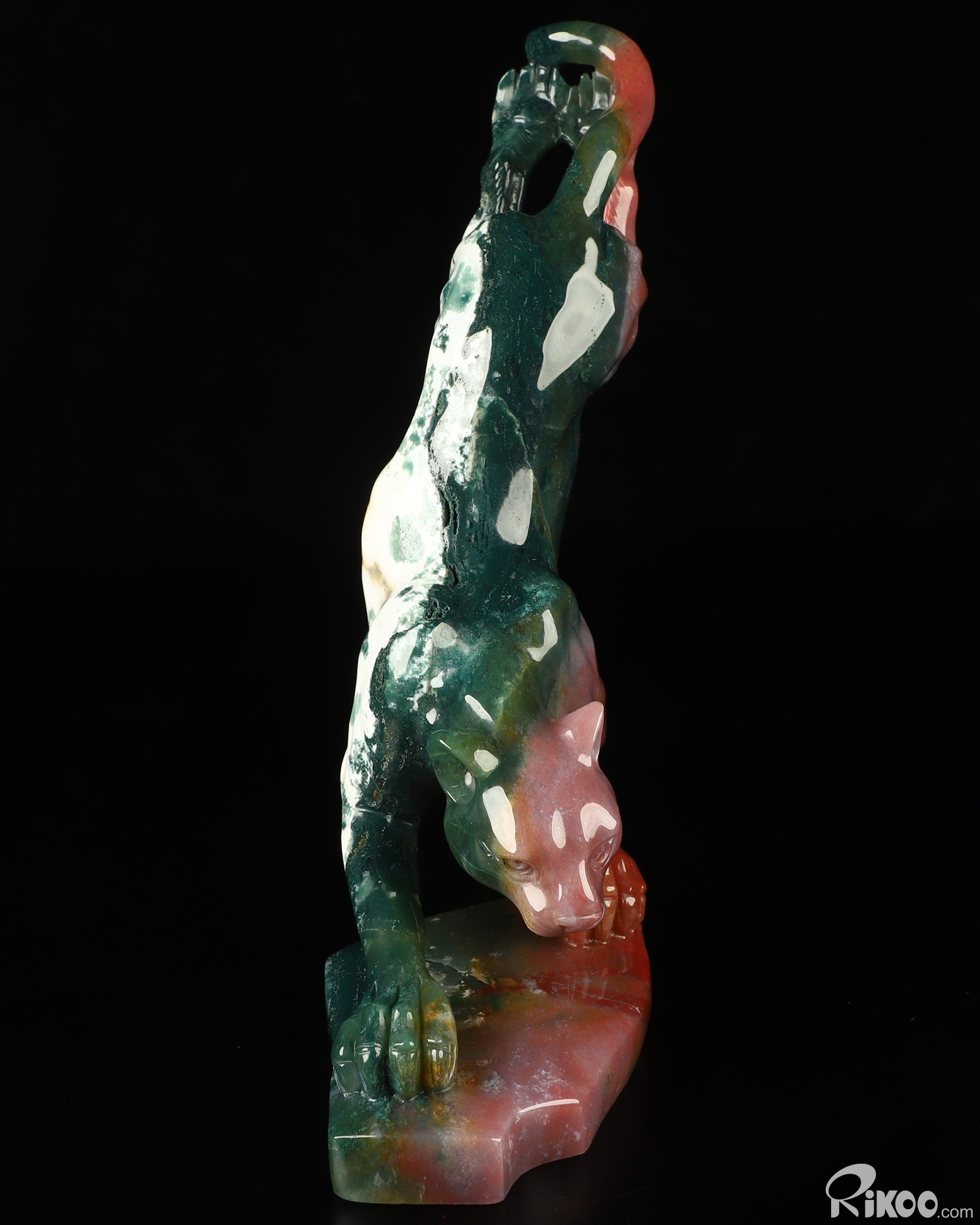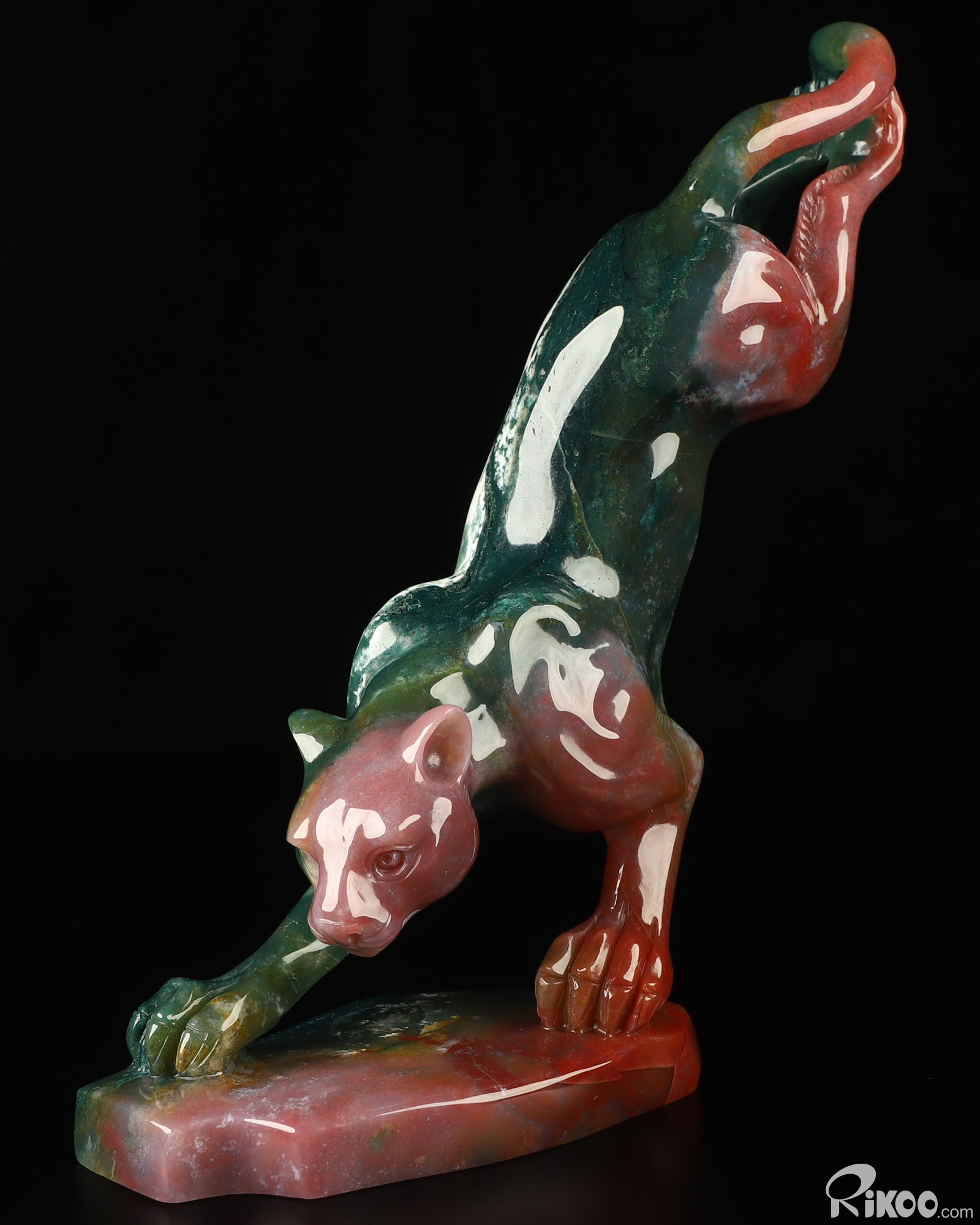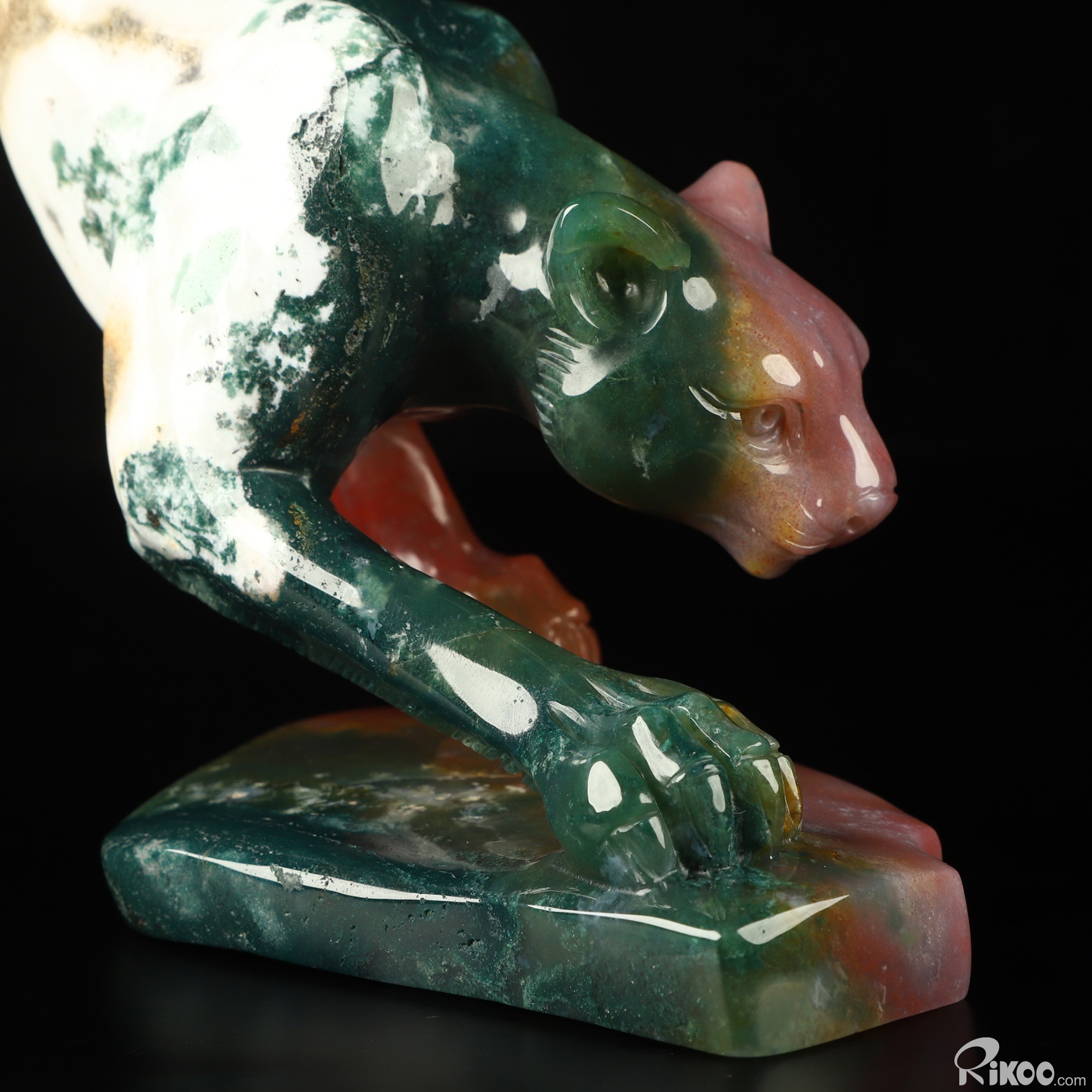 8.0" Indian Agate Hand Carved Crystal Leopard Sculpture, Crystal Healing