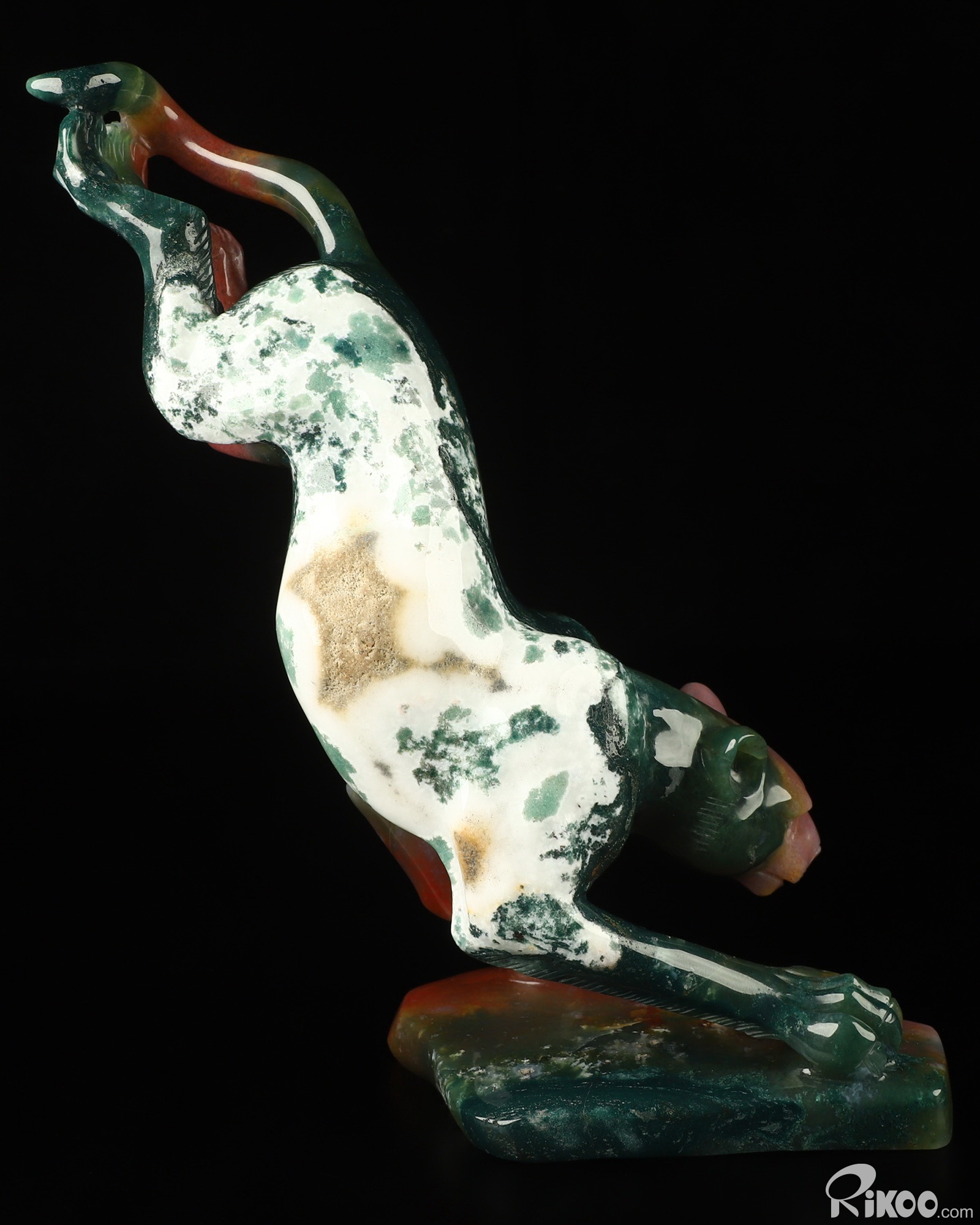You are looking at a Indian Agate sculpture. The sculpture is 8 inches long.