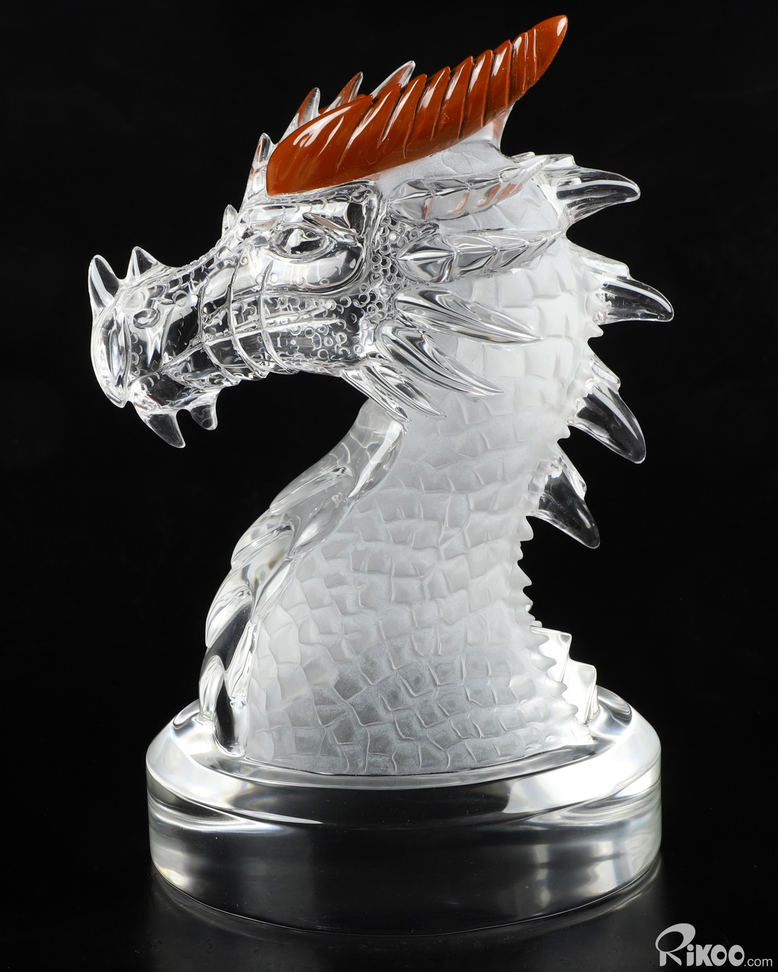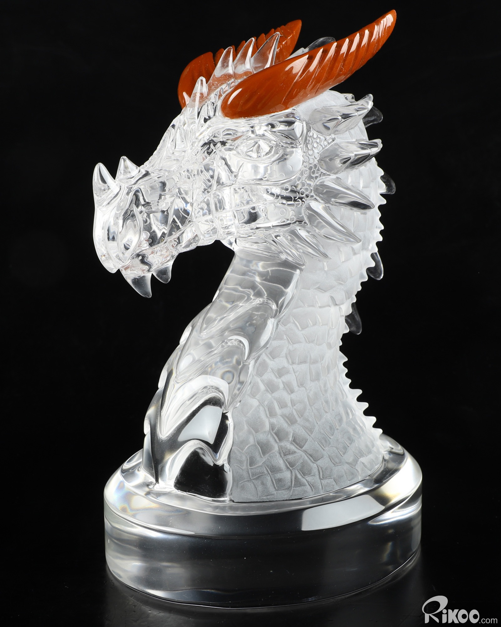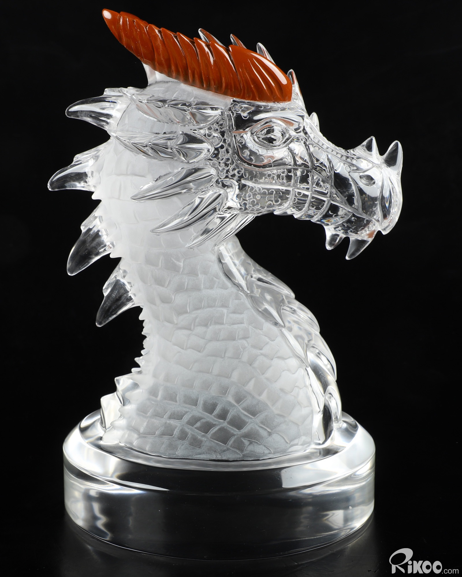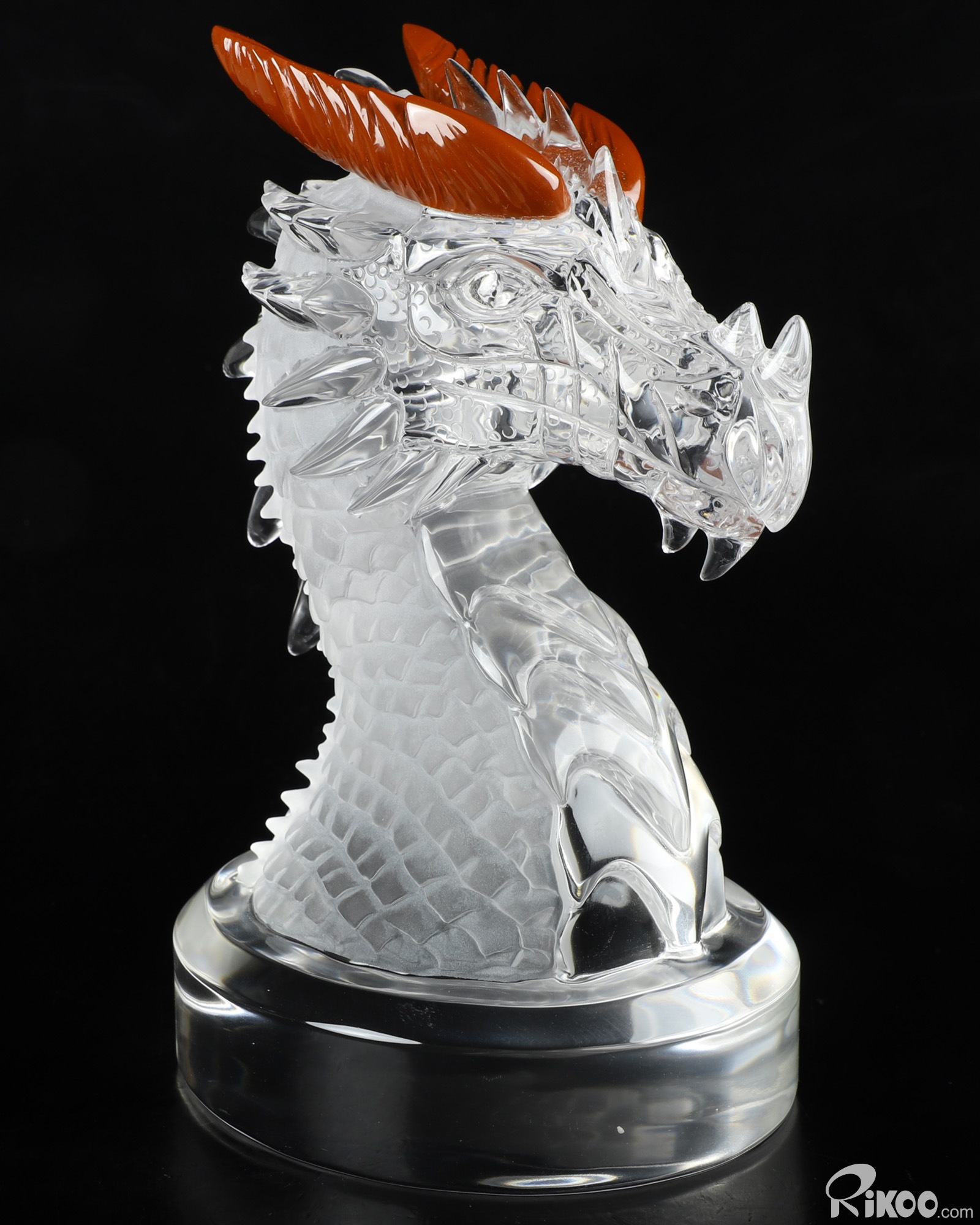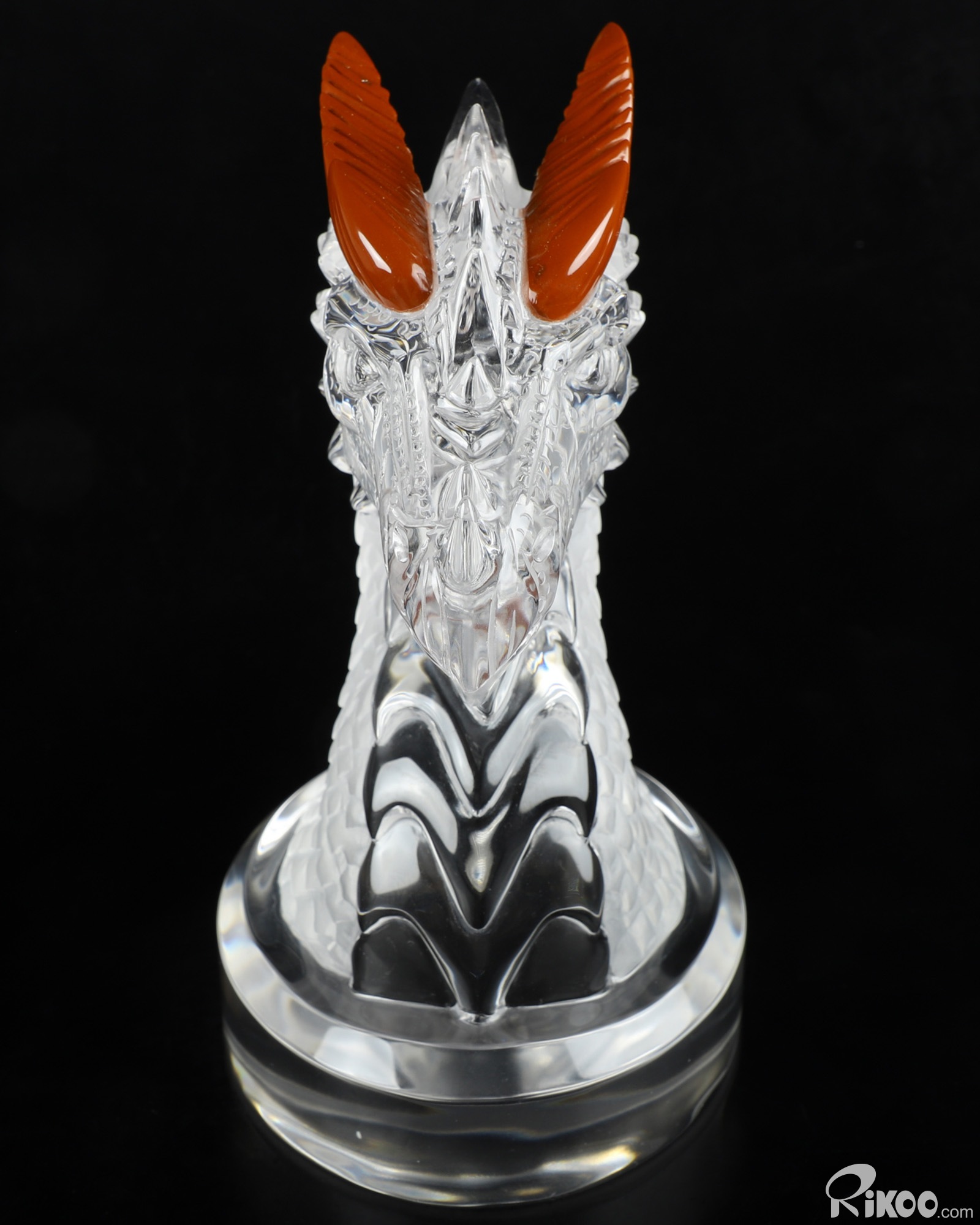 8.0" K9 Crystal Carved Crystal Dragon with Red Jasper Horn Sculpture, Realistic, Crystal Healing