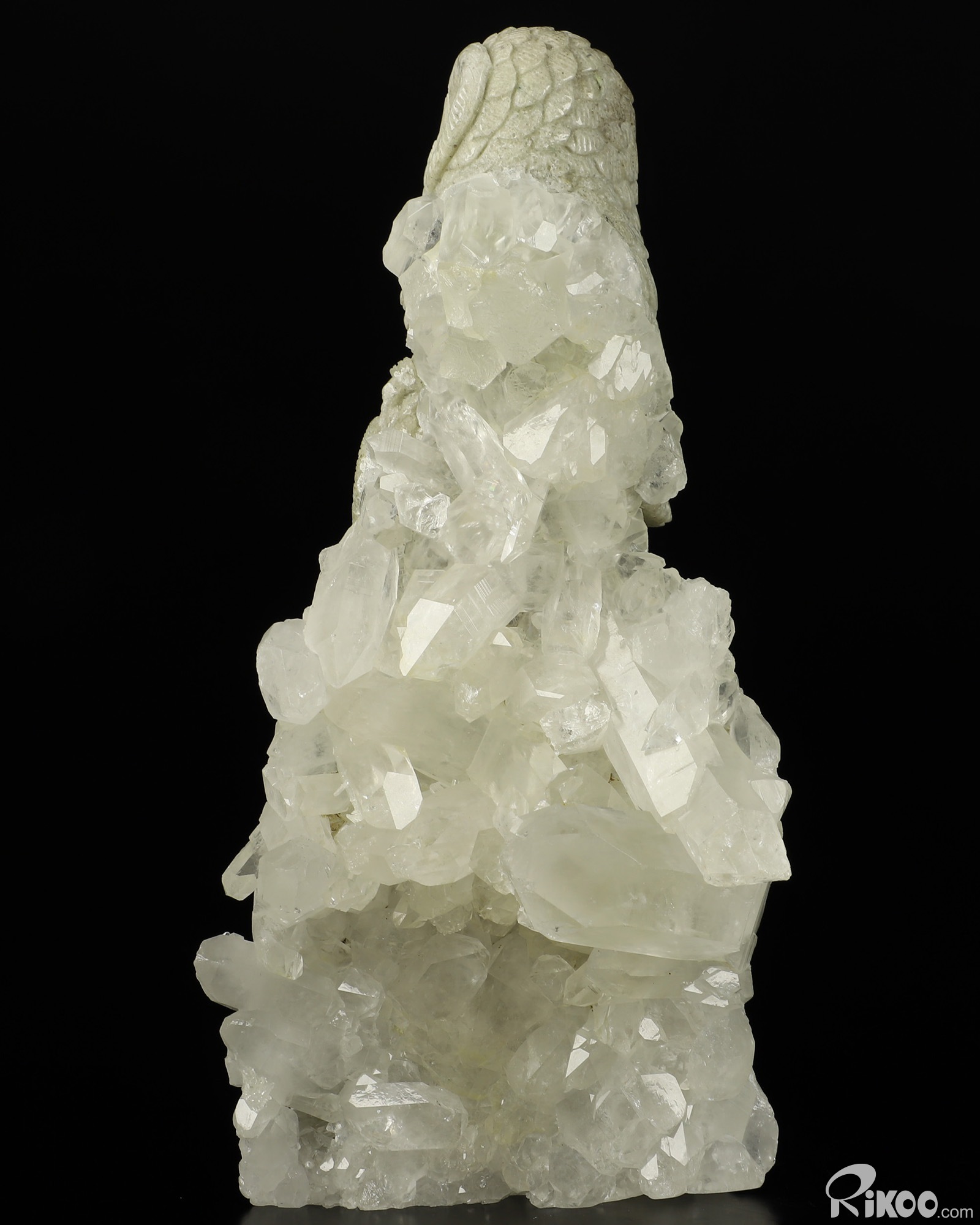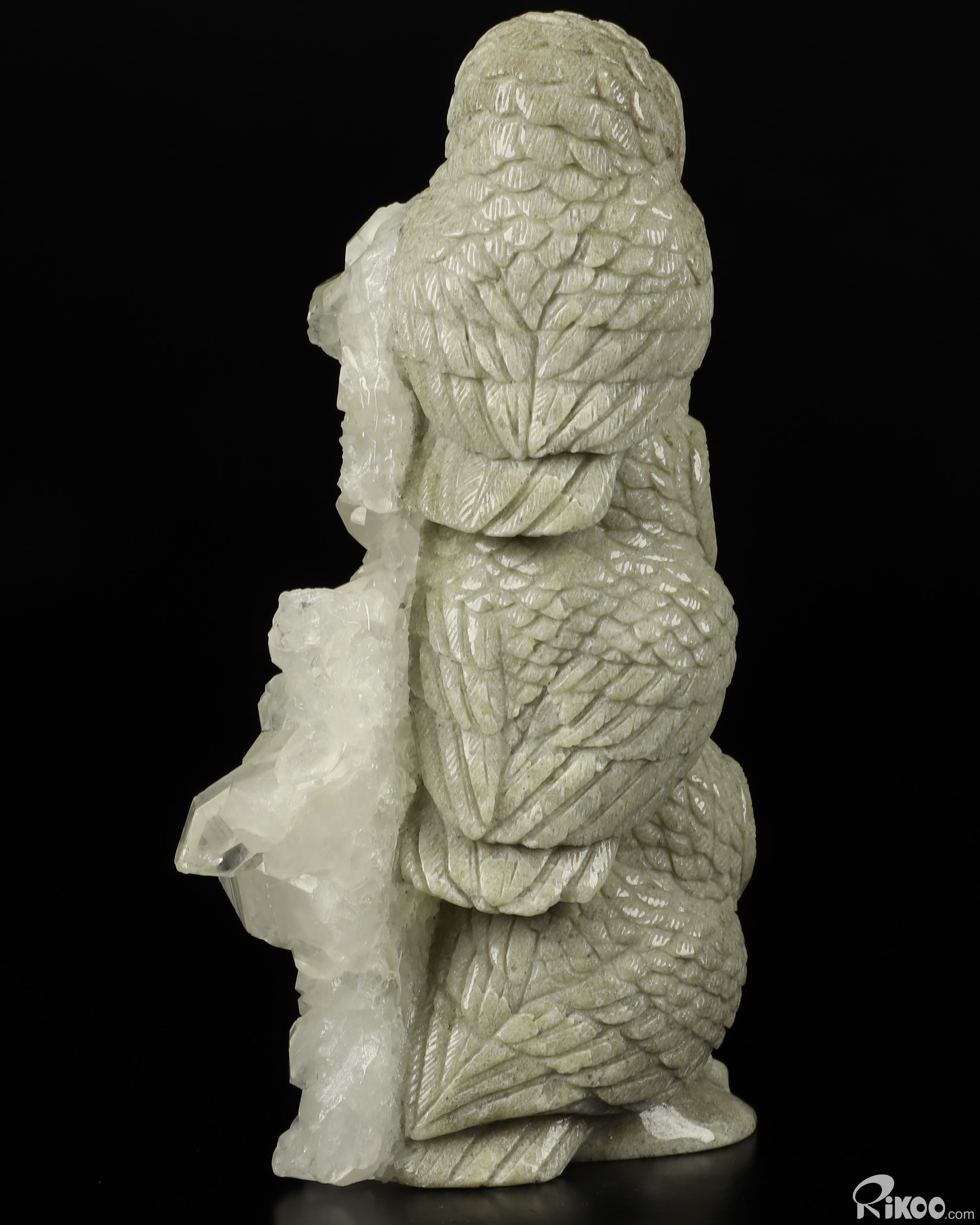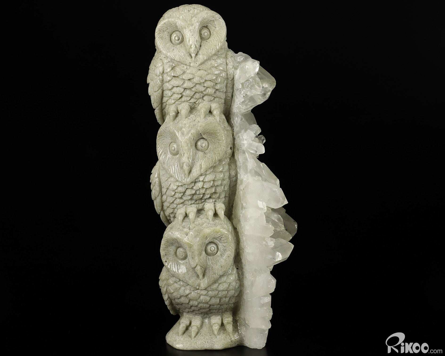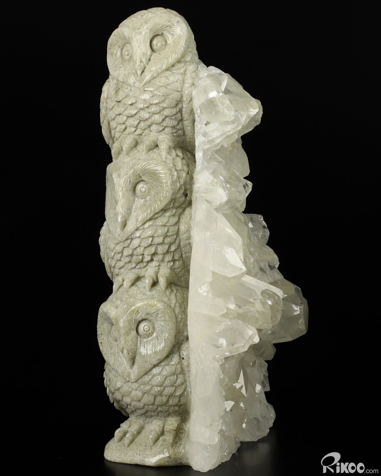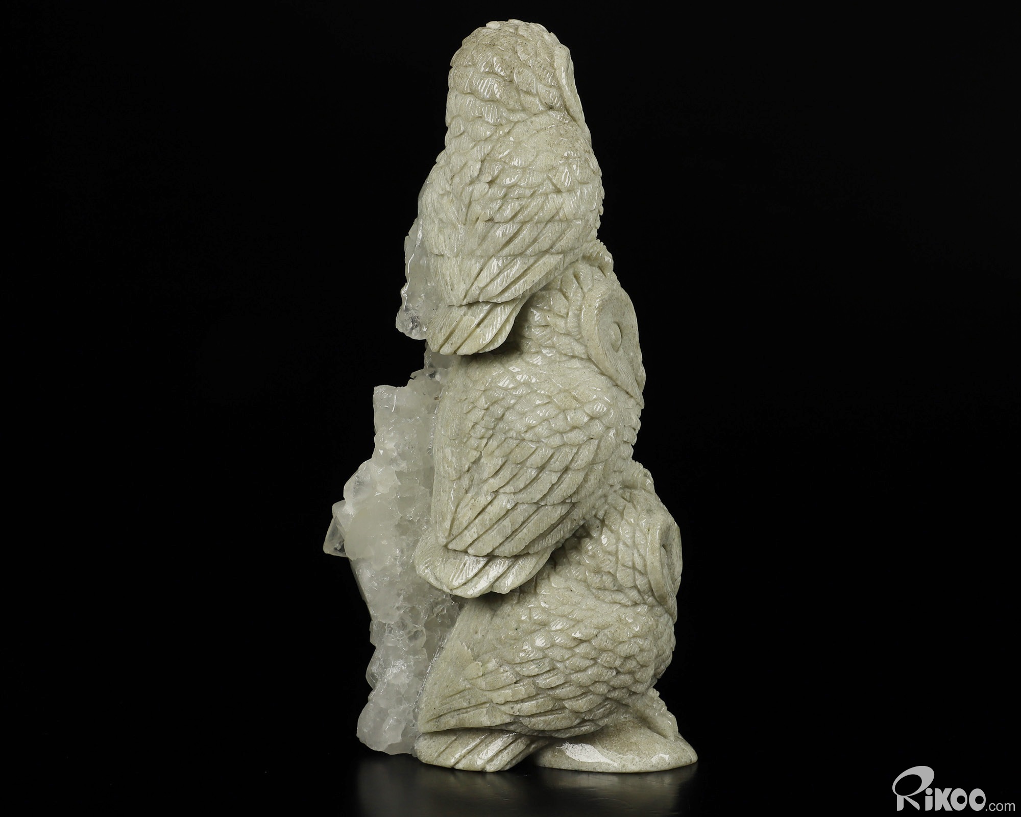 8.0" Quartz Druse Carved Owls Crystal Owl Sculpture, Realistic, Crystal Healing