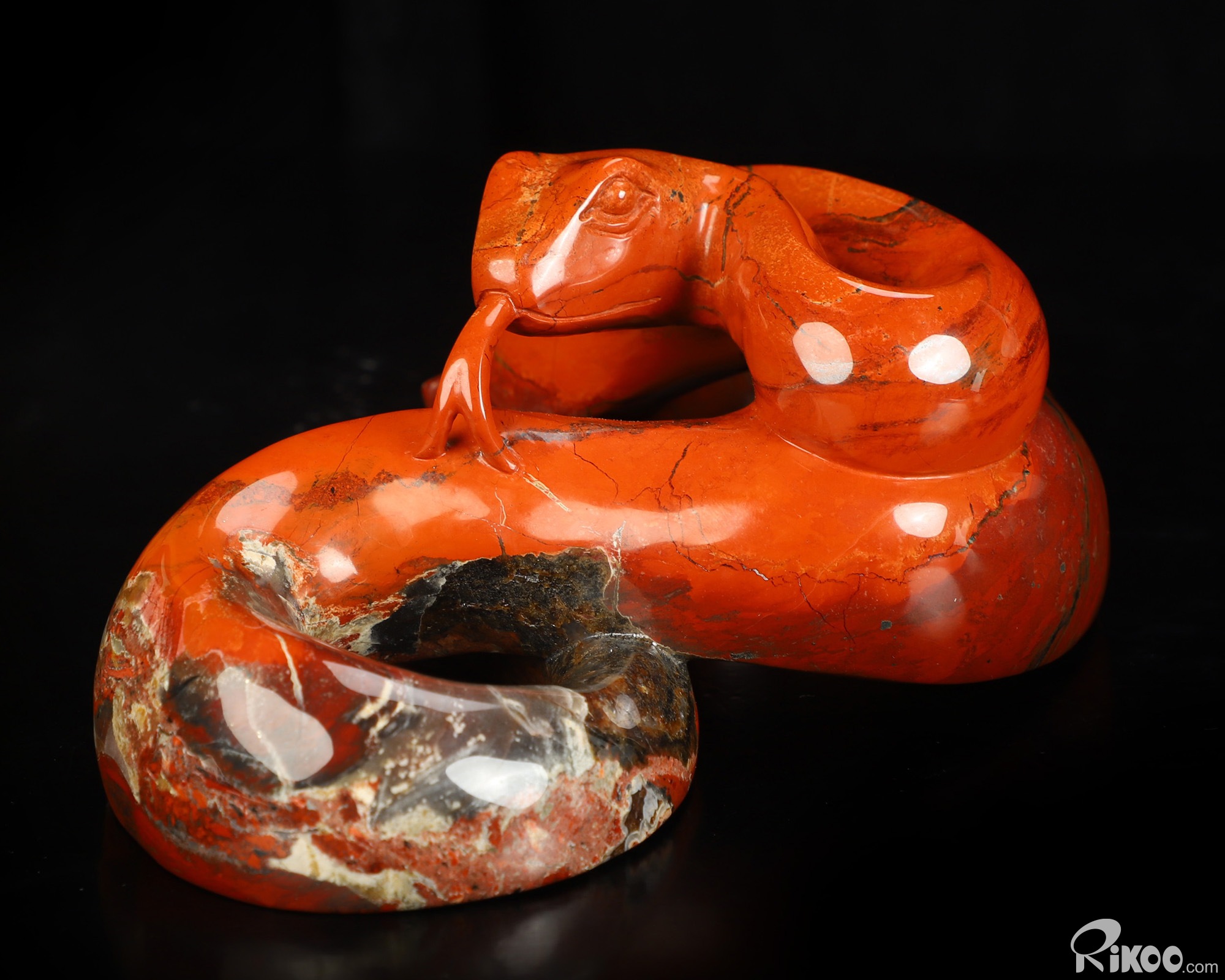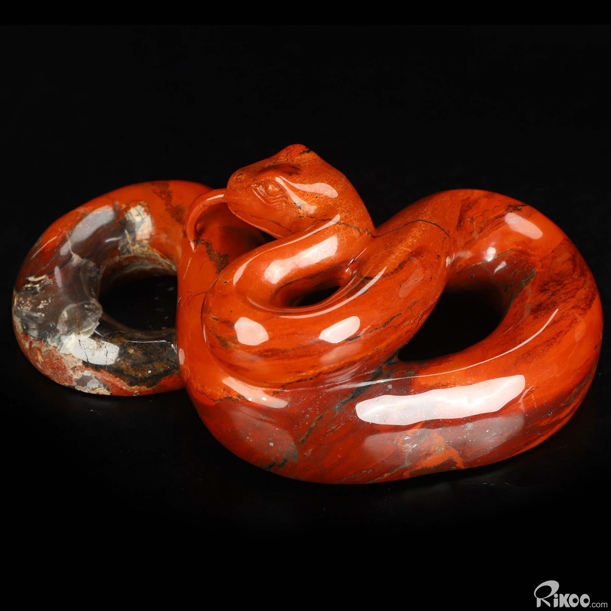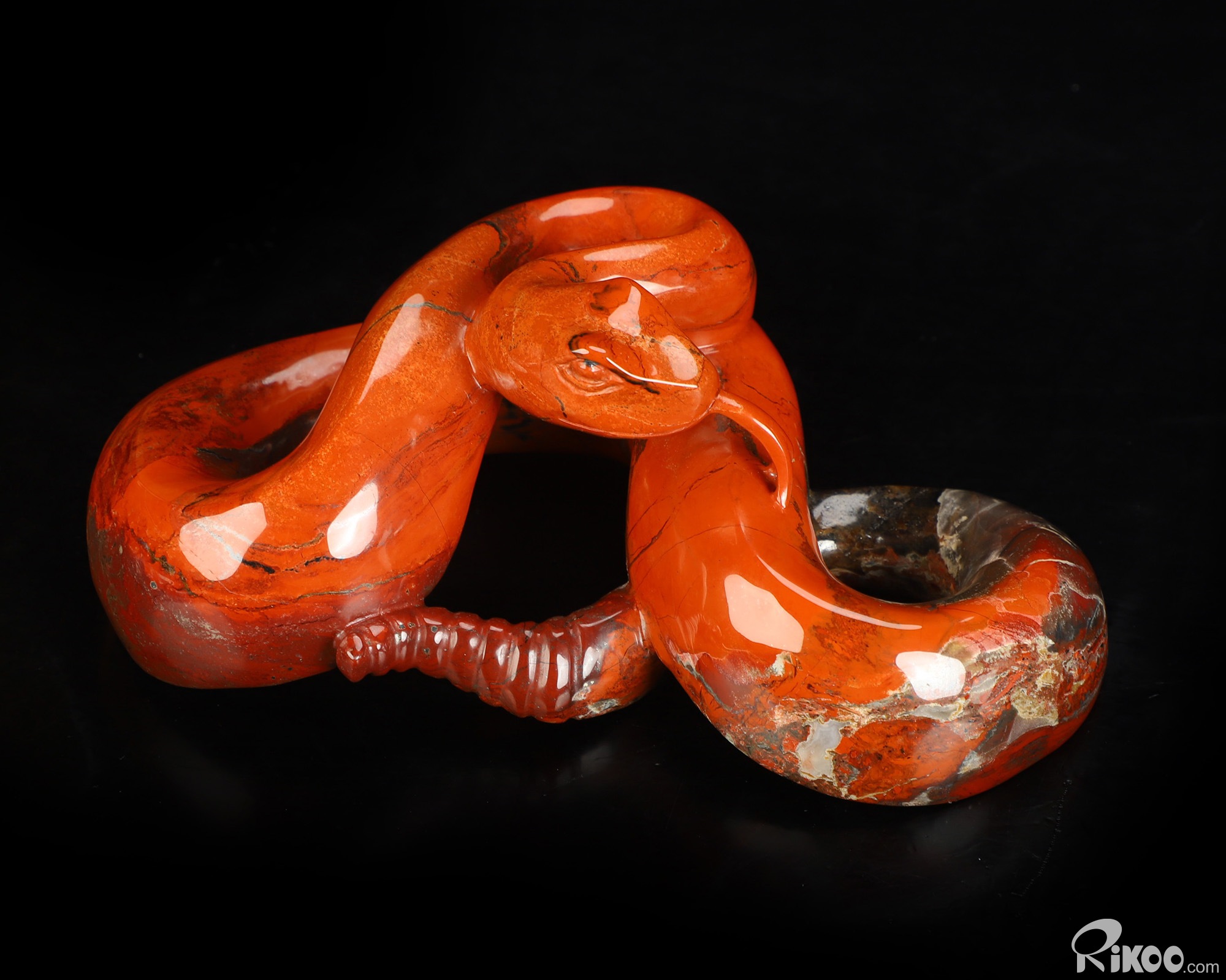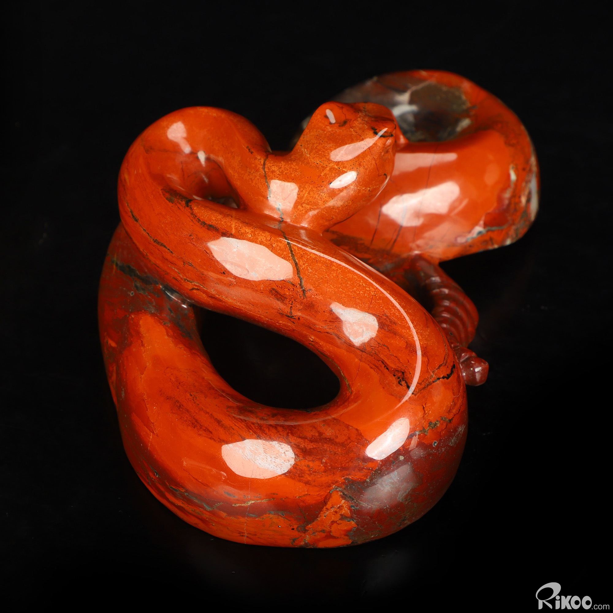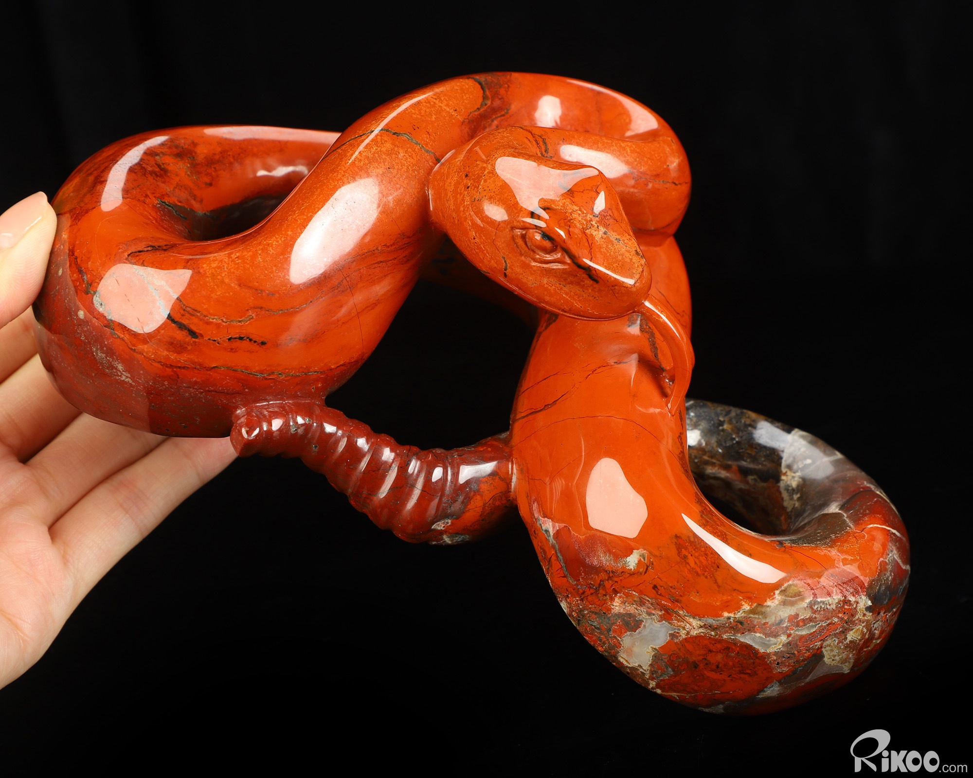 8.0" Red Jasper Hand Carved Crystal Snake Sculpture, Crystal Healing