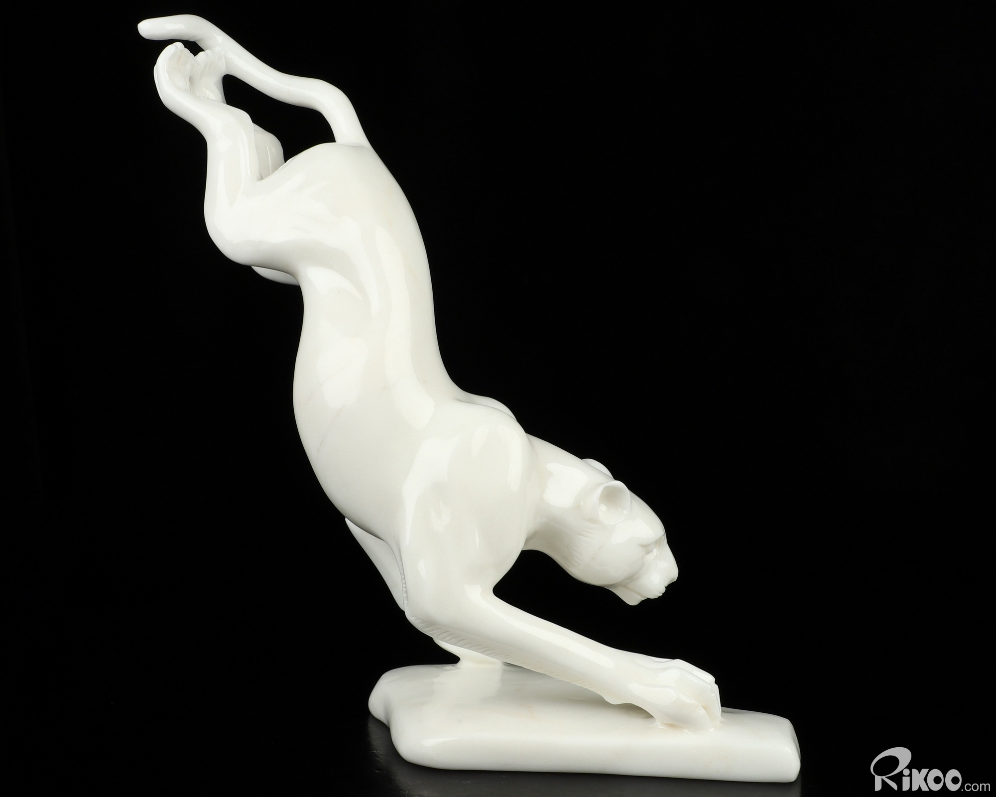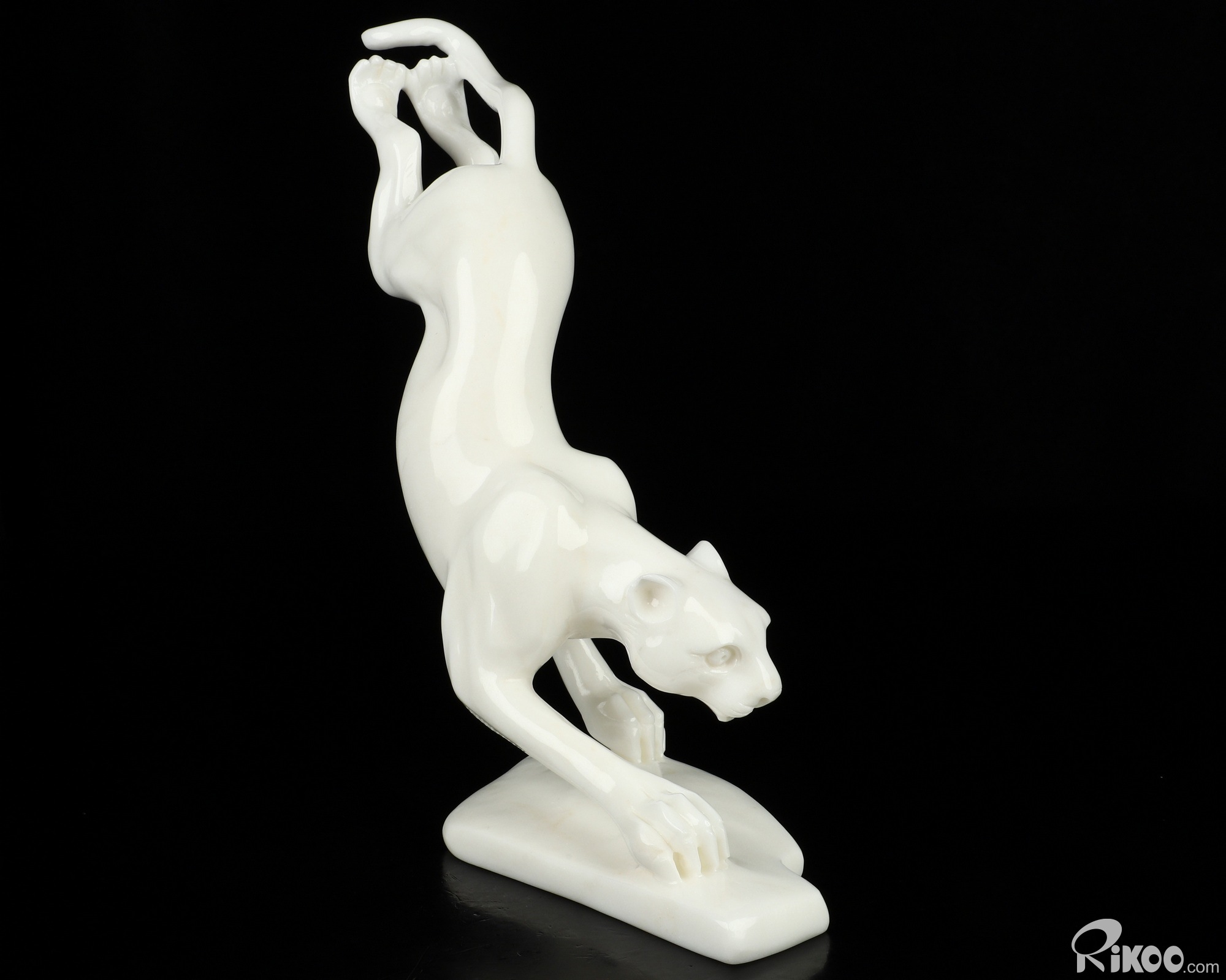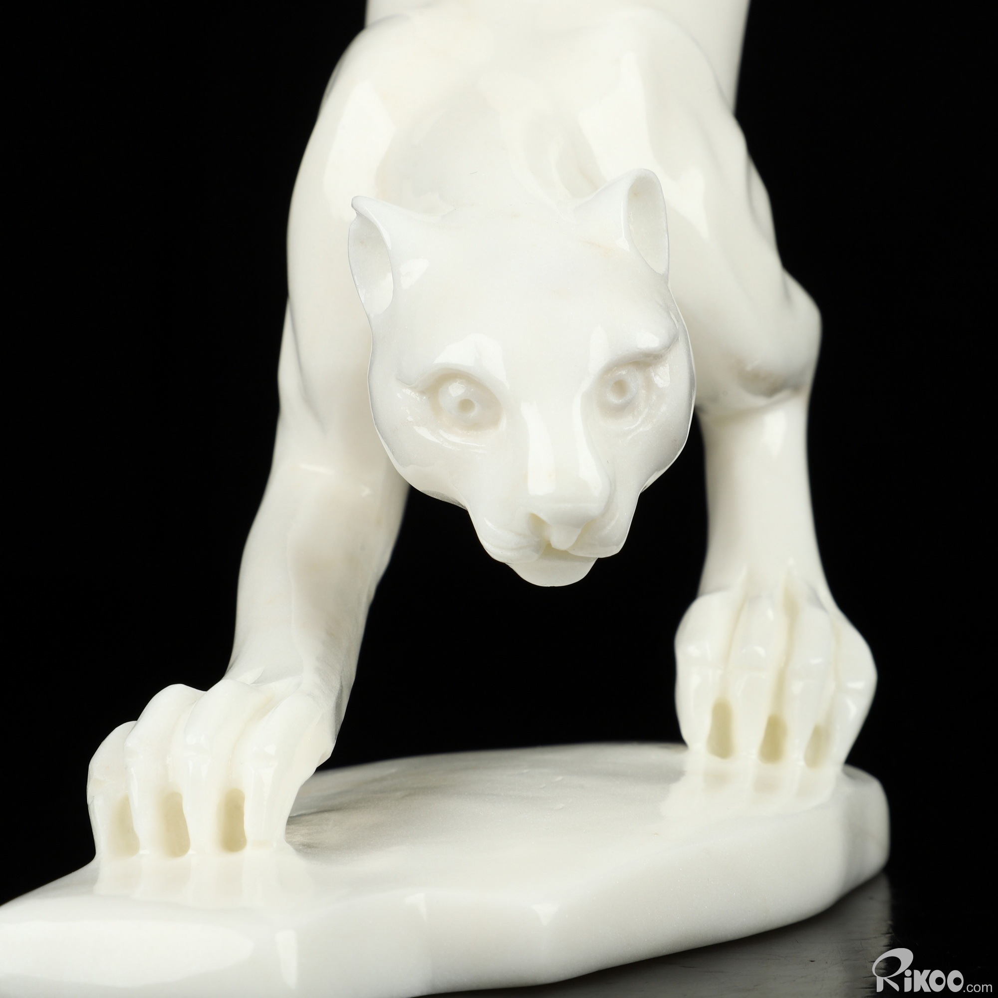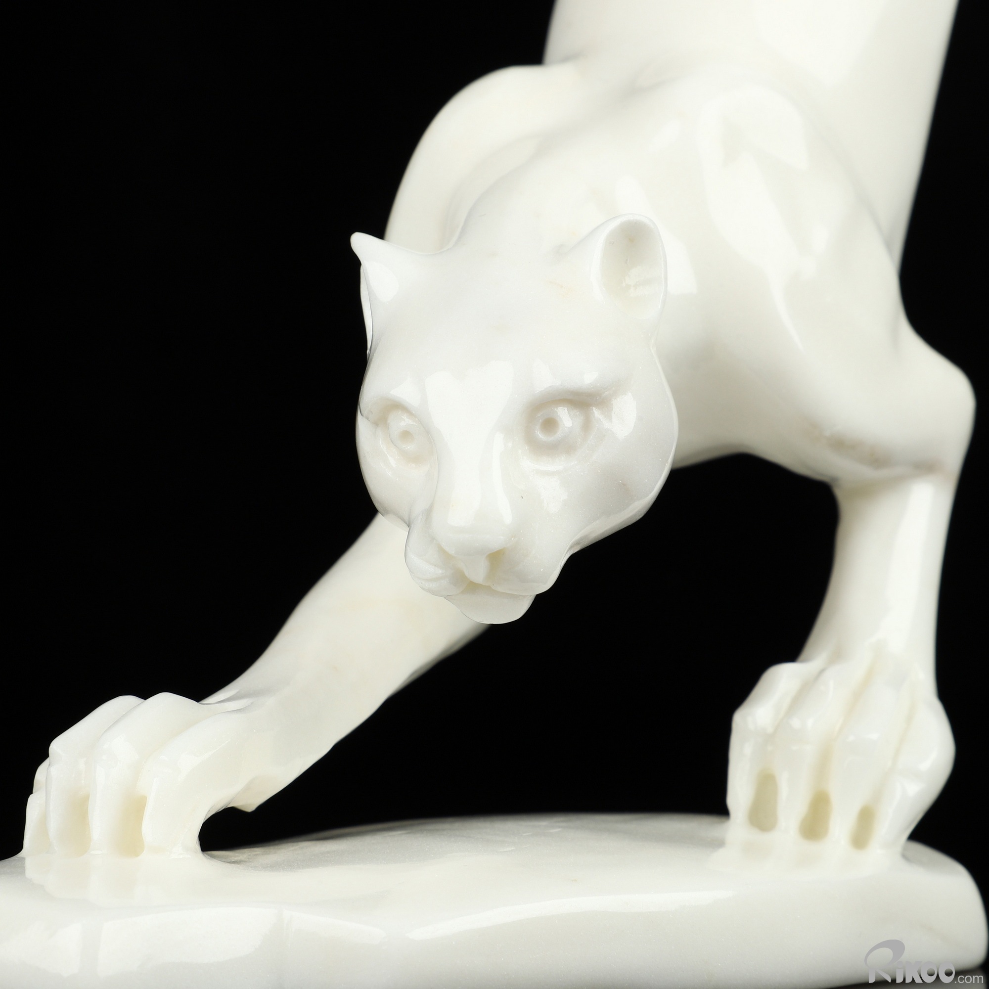 8.0" White Jade Hand Carved Crystal Leopard Sculpture, Crystal Healing