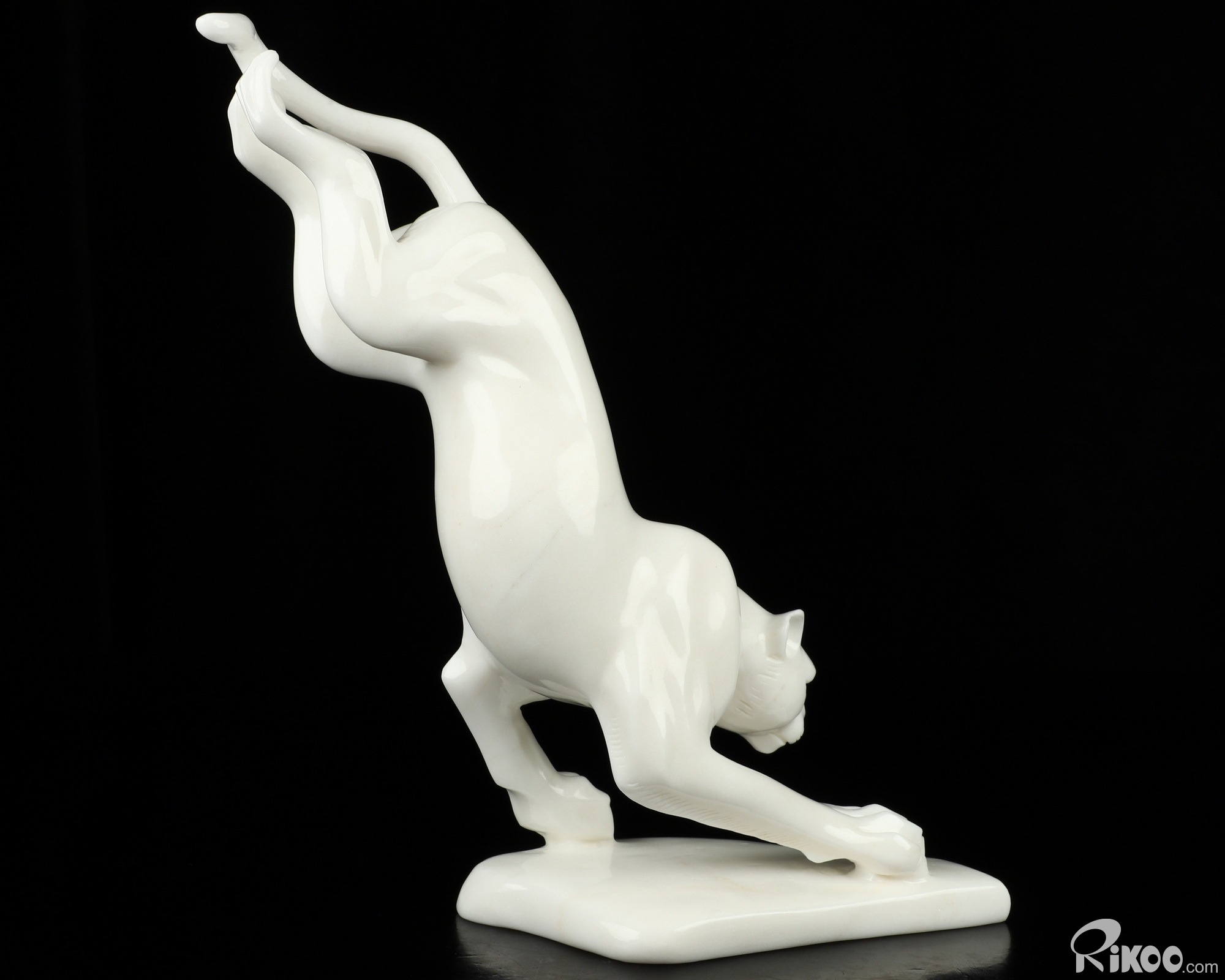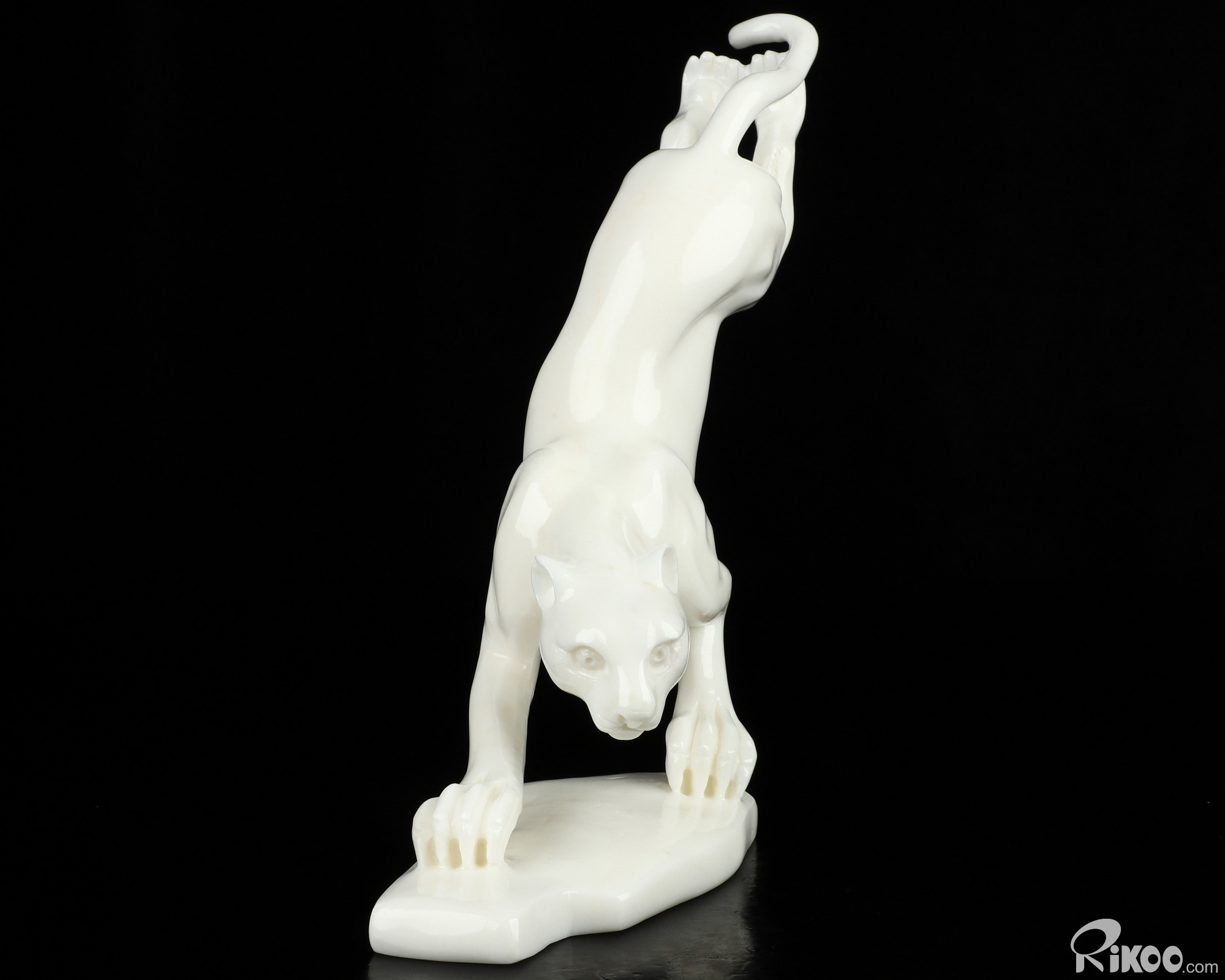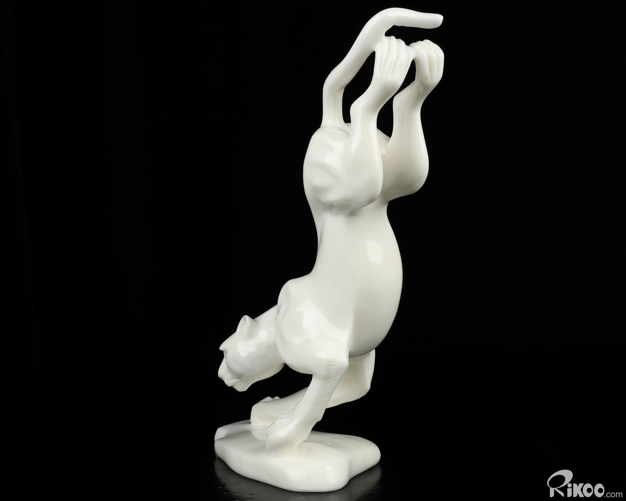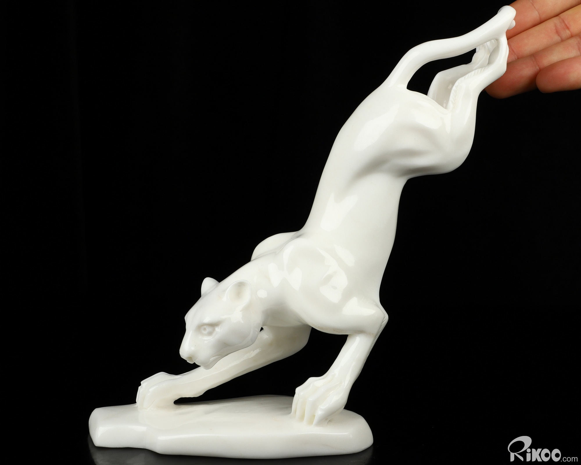 8.0" White Jade Hand Carved Crystal Leopard Sculpture, Crystal Healing