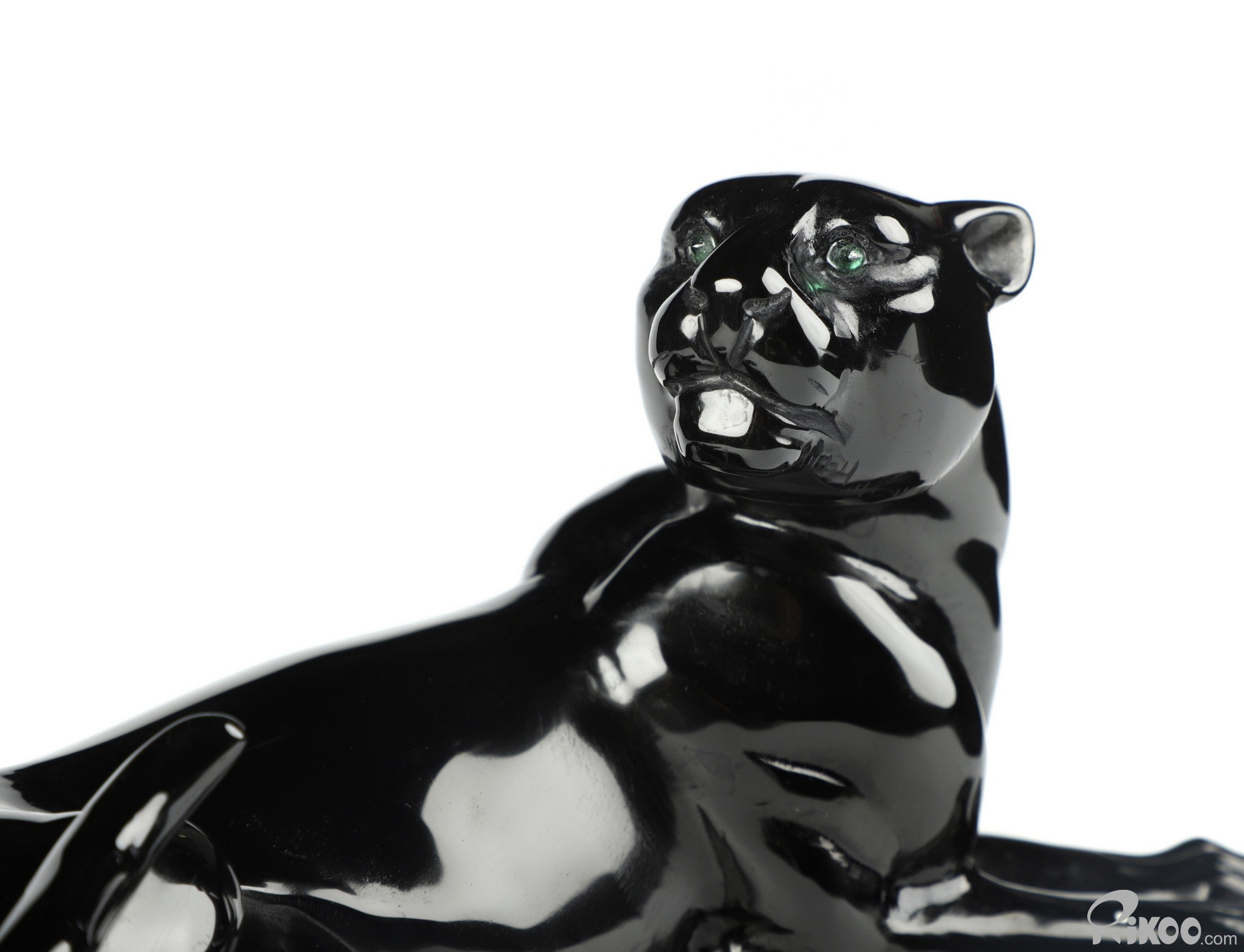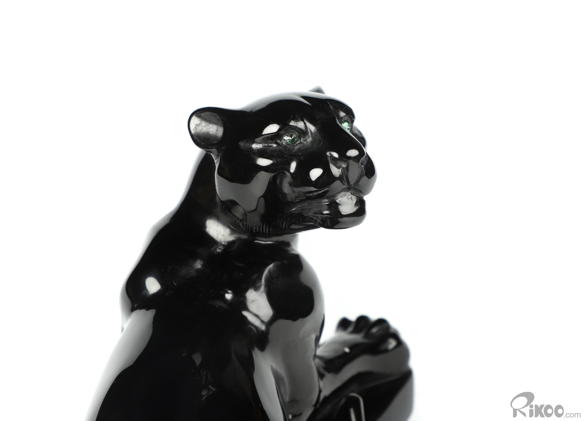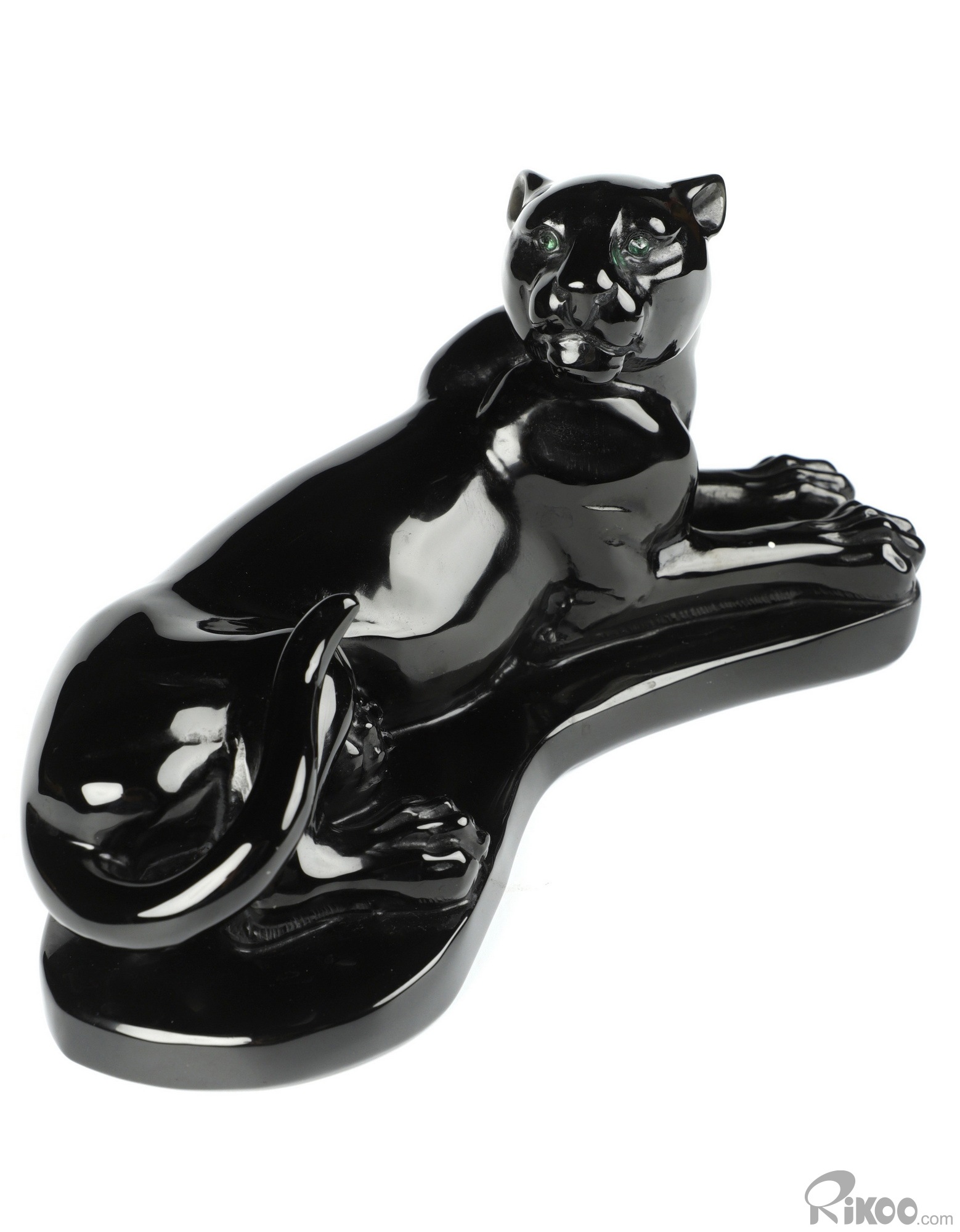 8.1" Black Obsidian Hand Carved Crystal Leopard Sculpture and Emerald, Crystal Healing