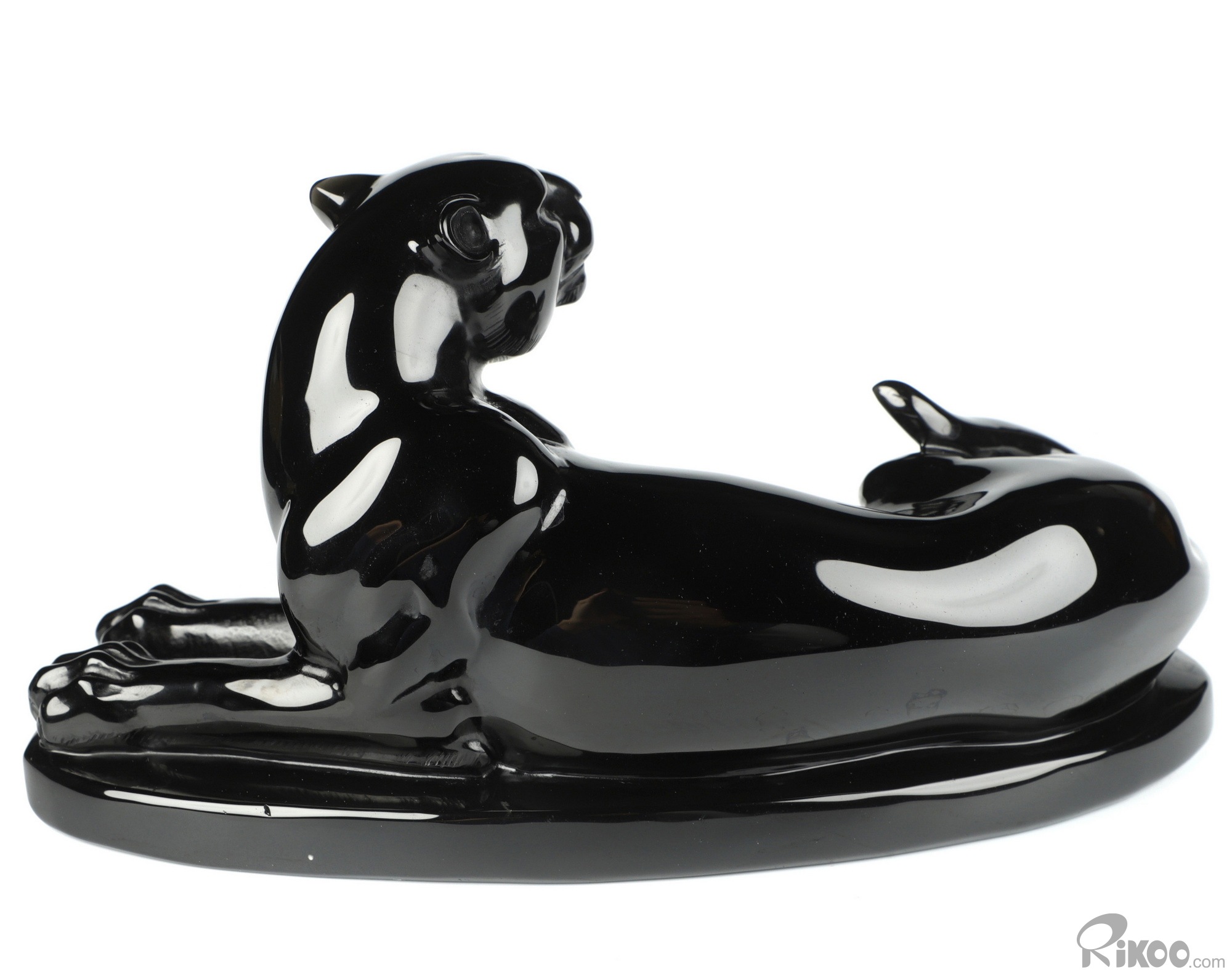 You are looking at a Black Obsidian Leopard. The Leopard is 8.1 inches long from front to back.