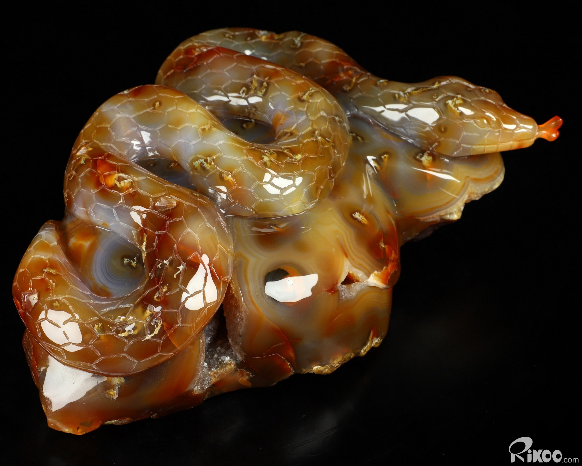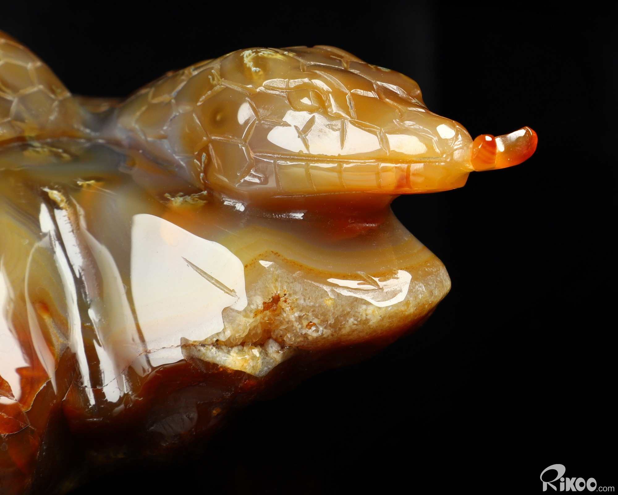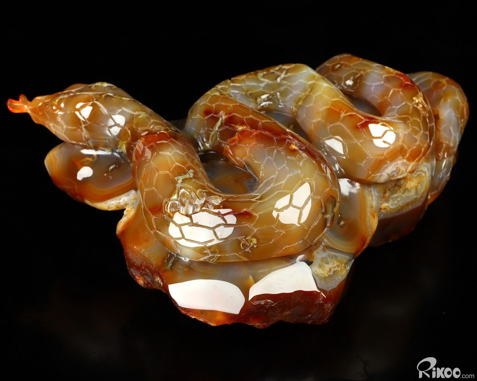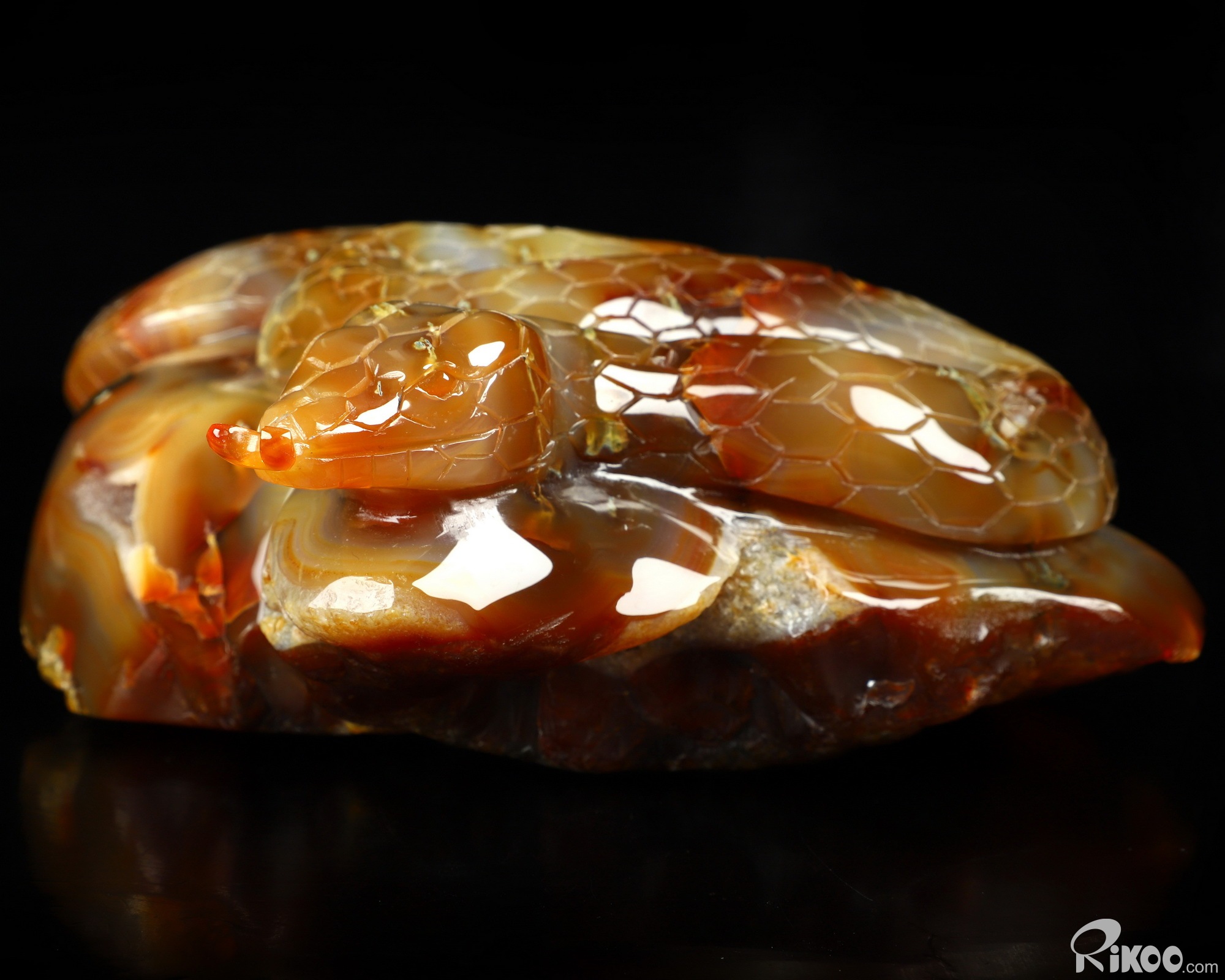 You are looking at a Carnelian sculpture. The sculpture is 8.1 inches long.