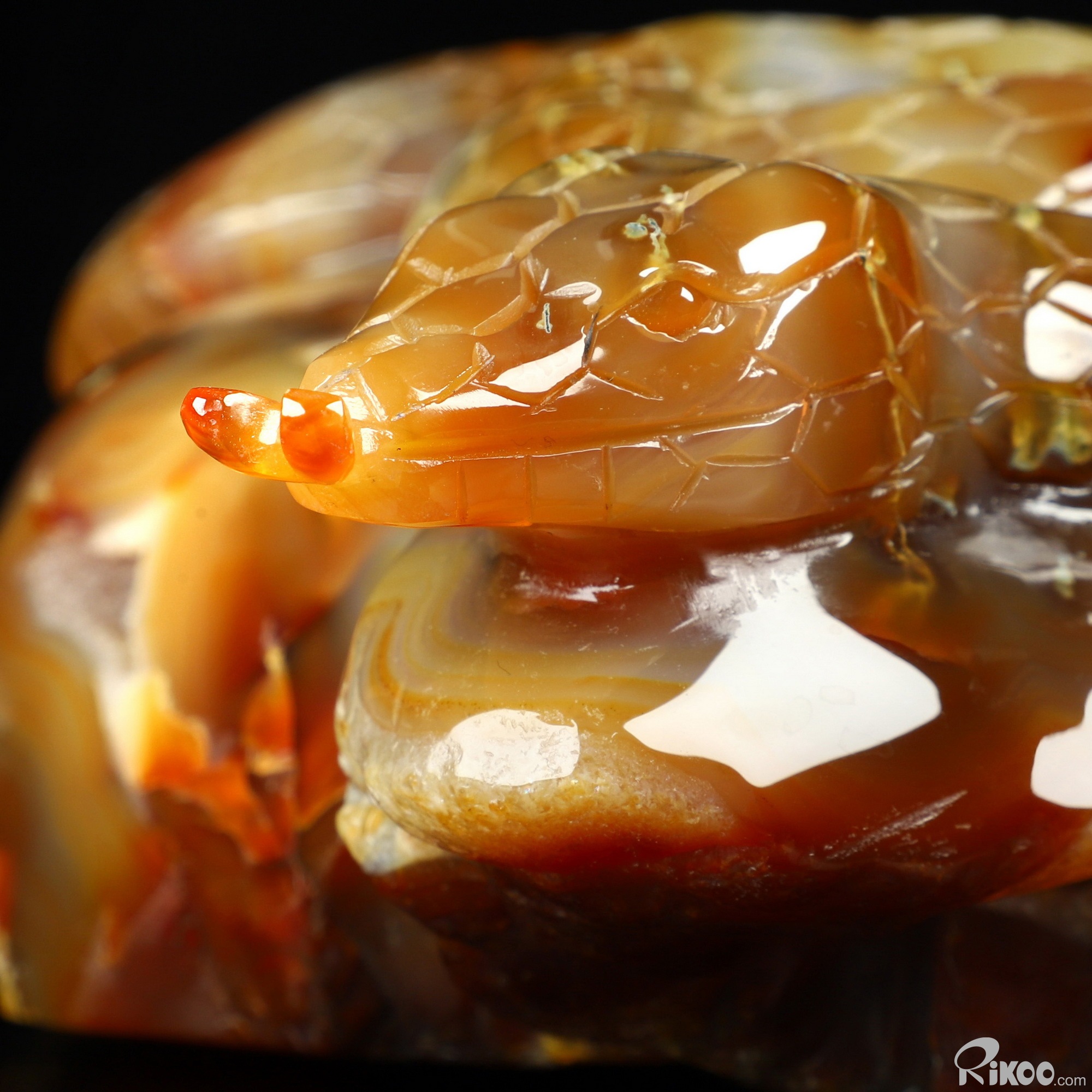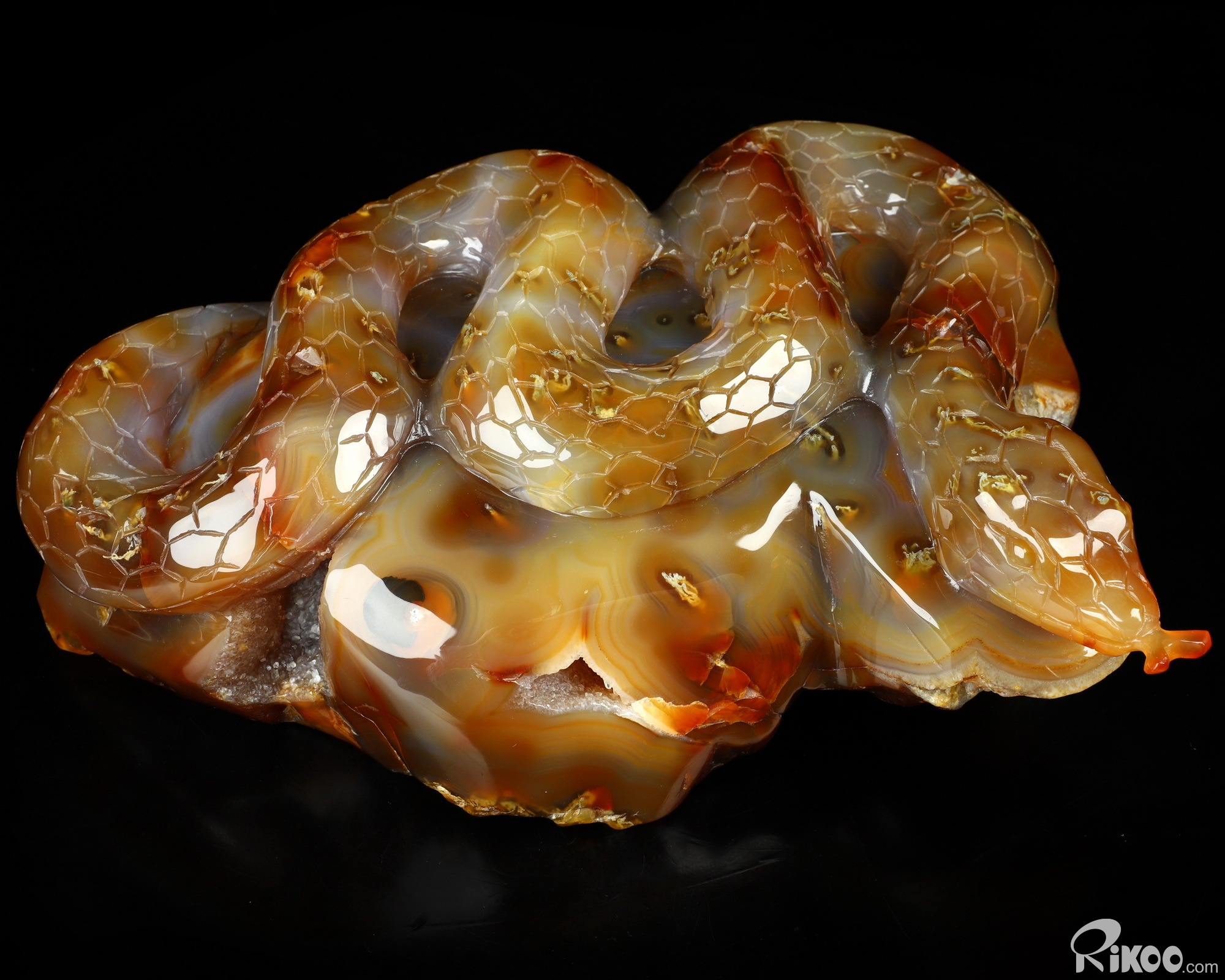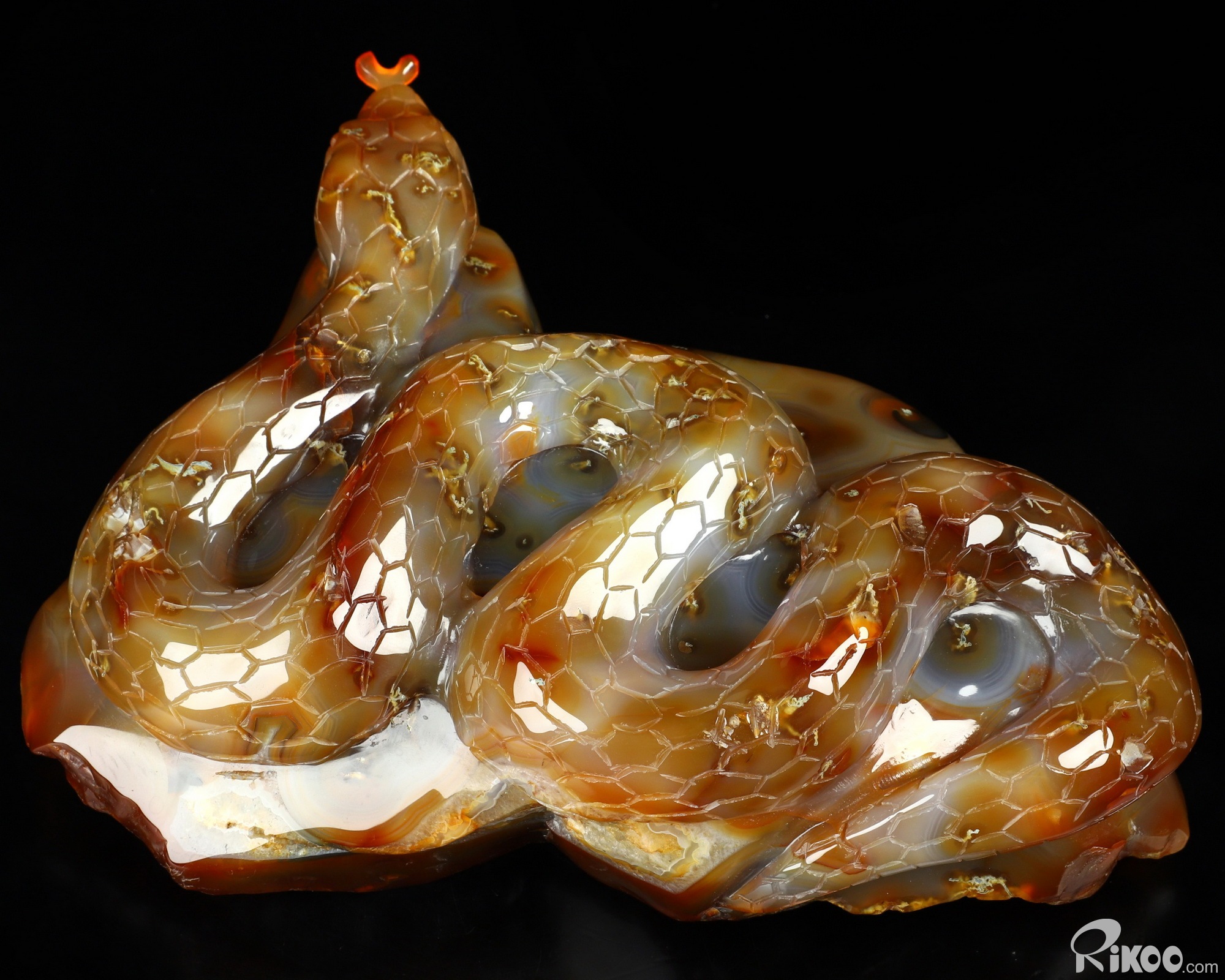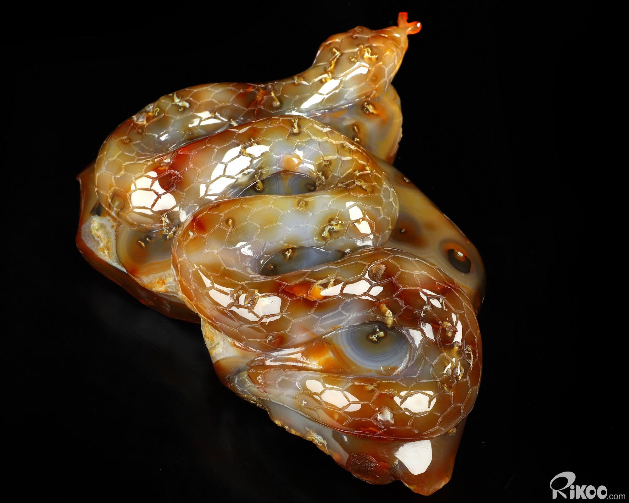 You are looking at a Carnelian sculpture. The sculpture is 8.1 inches long.
