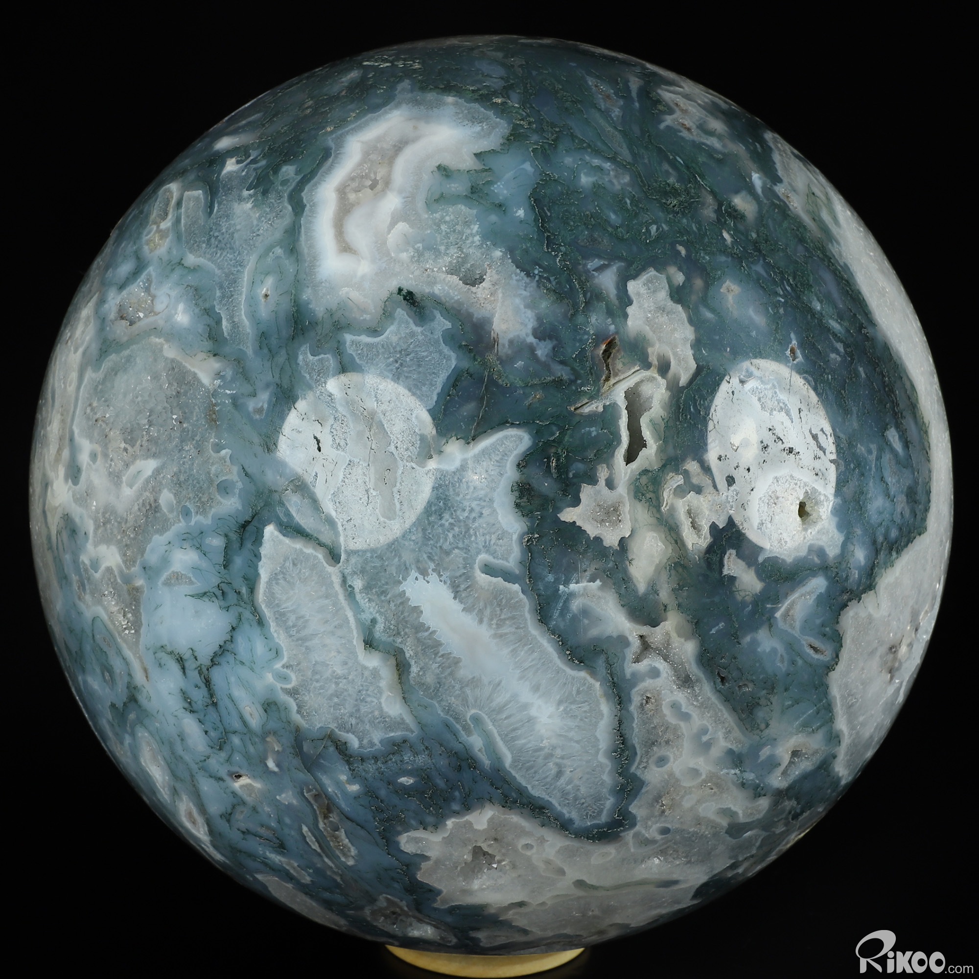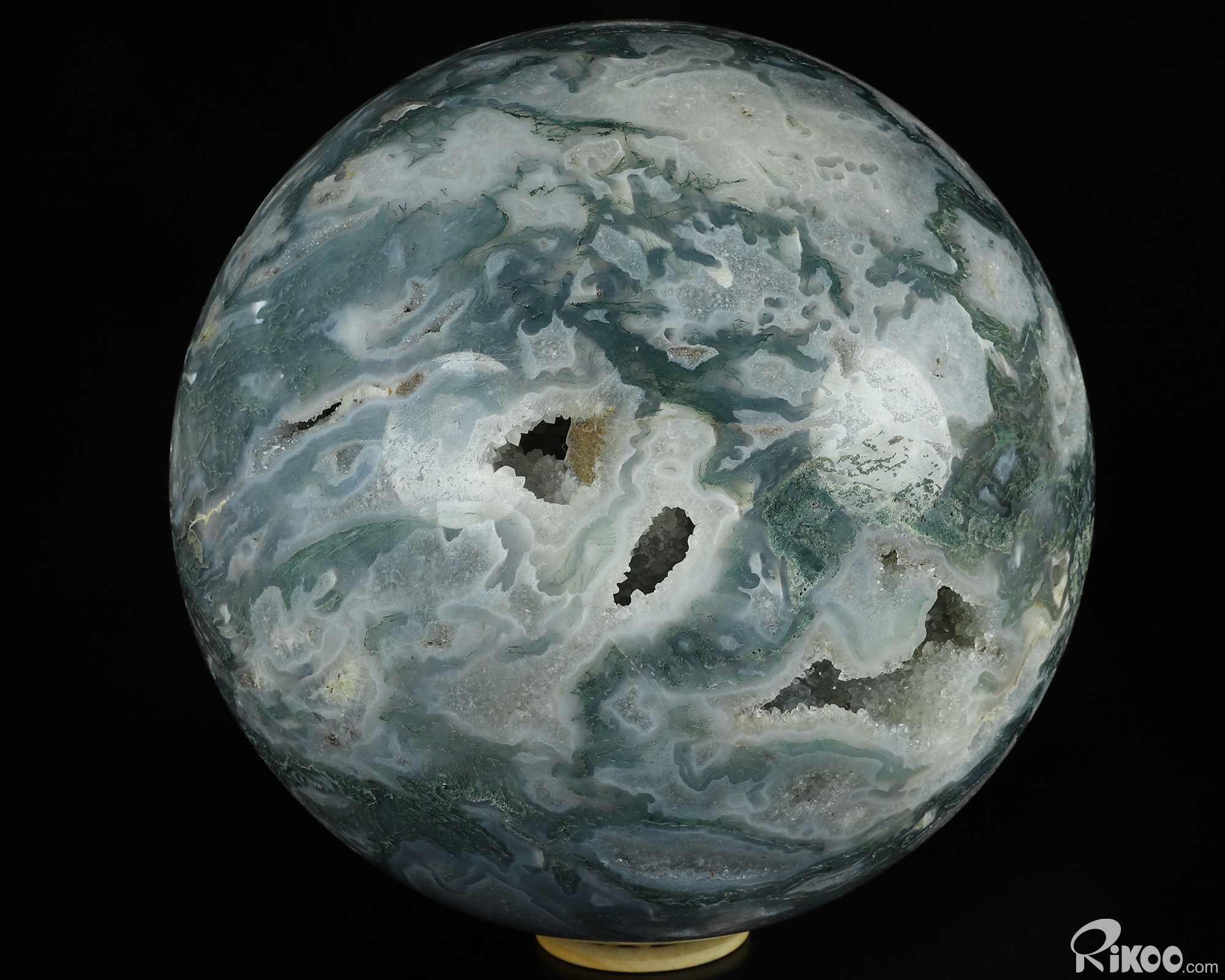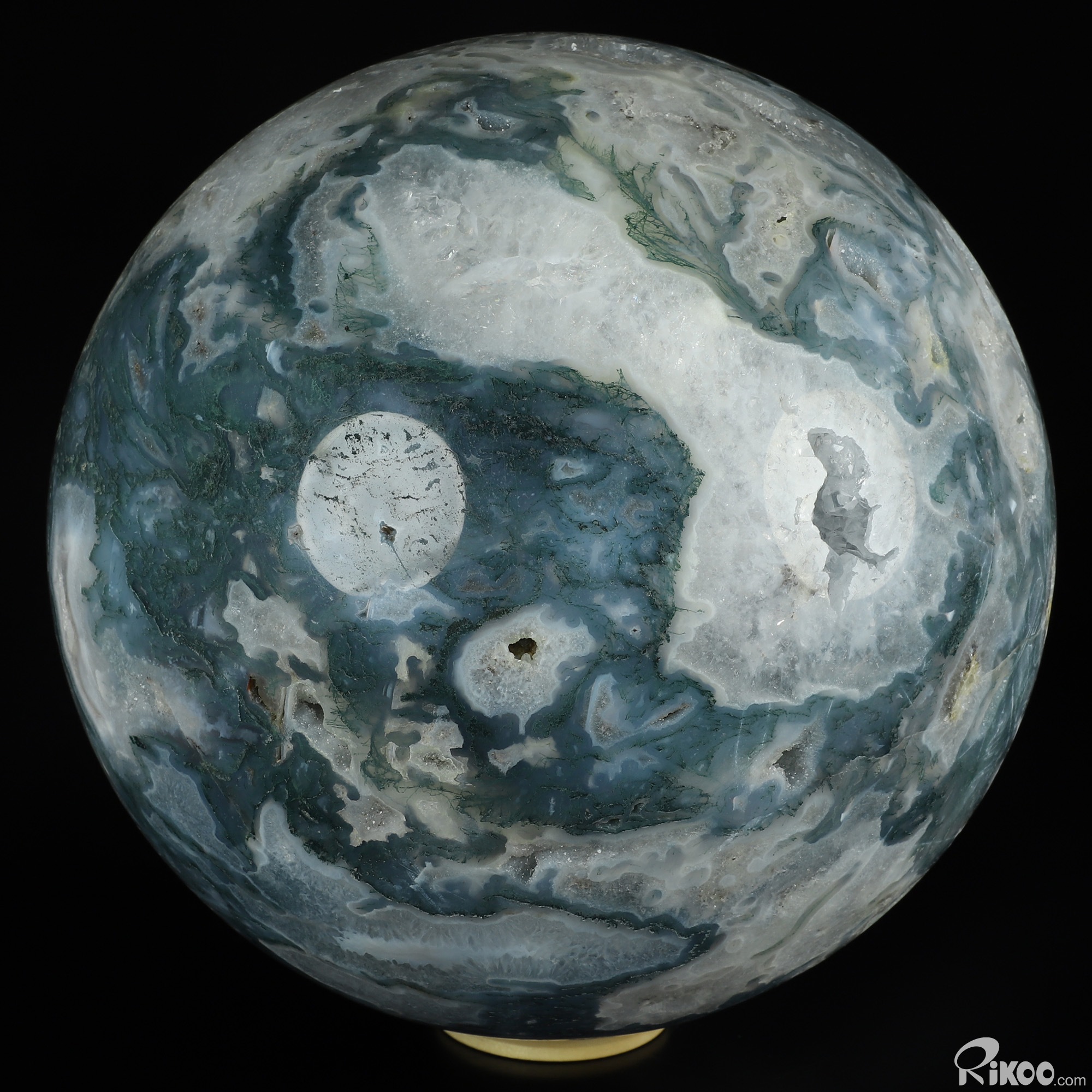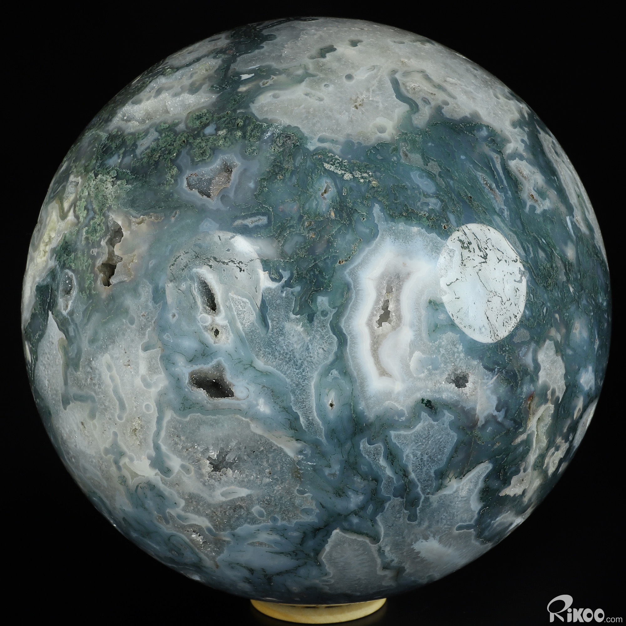 You are looking at a Green Moss Agate Ball. The Ball is 8.1 inches long from front to back.