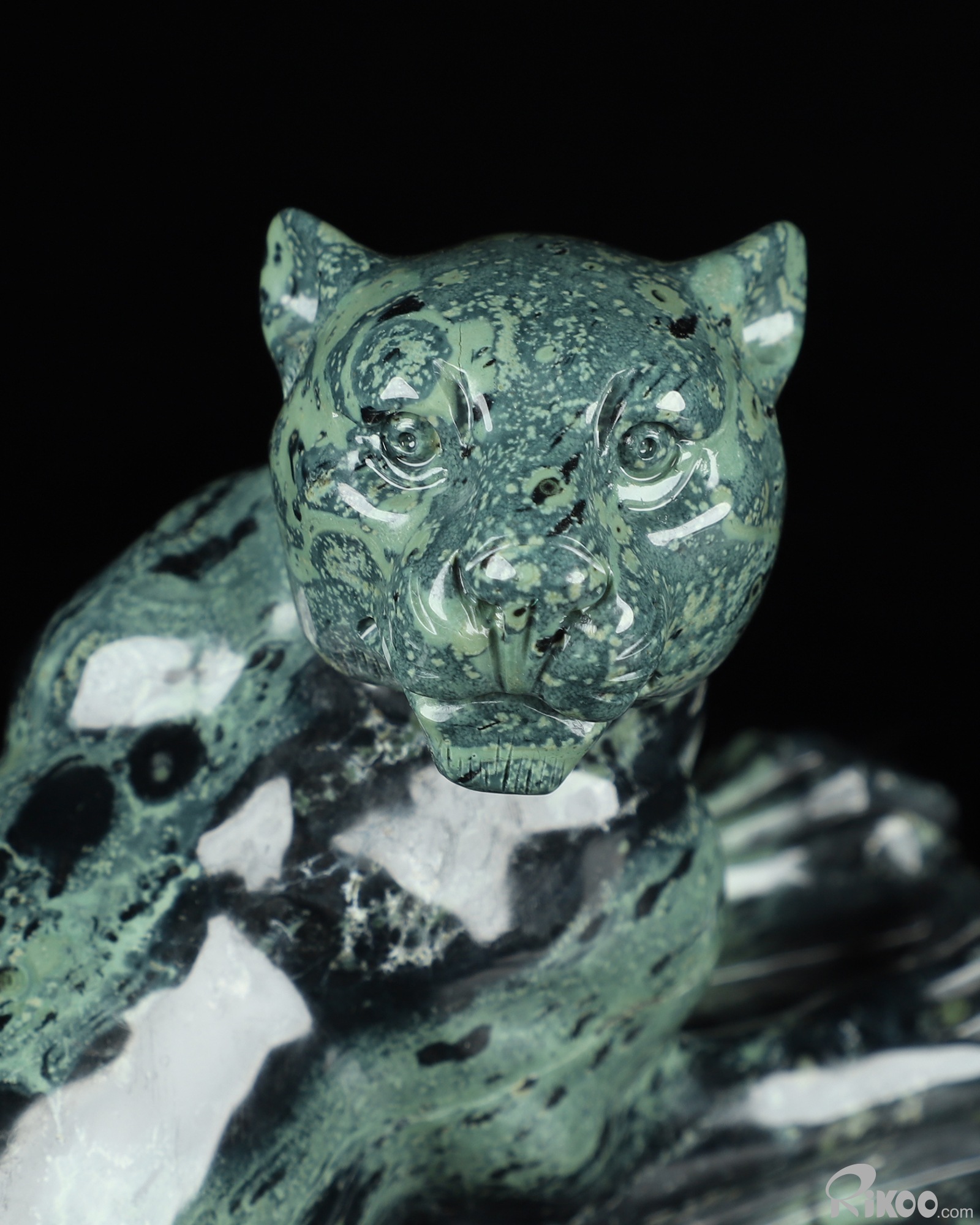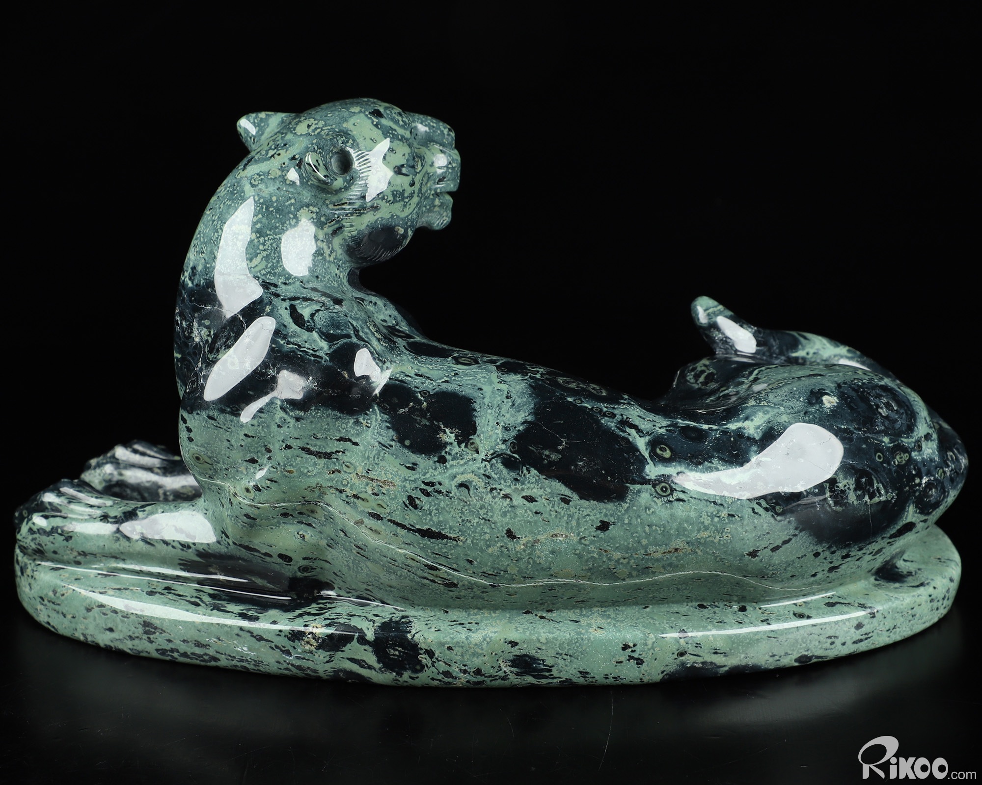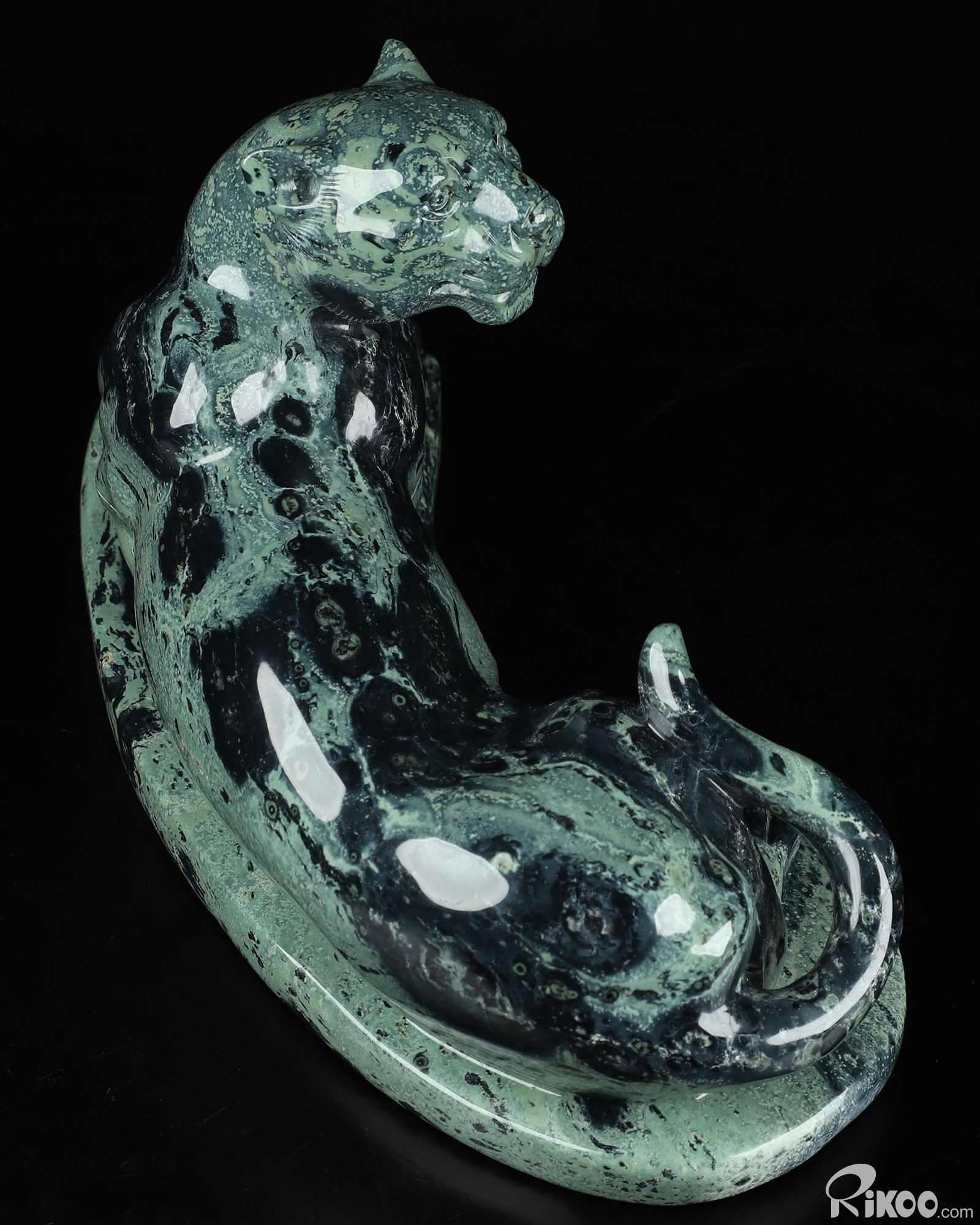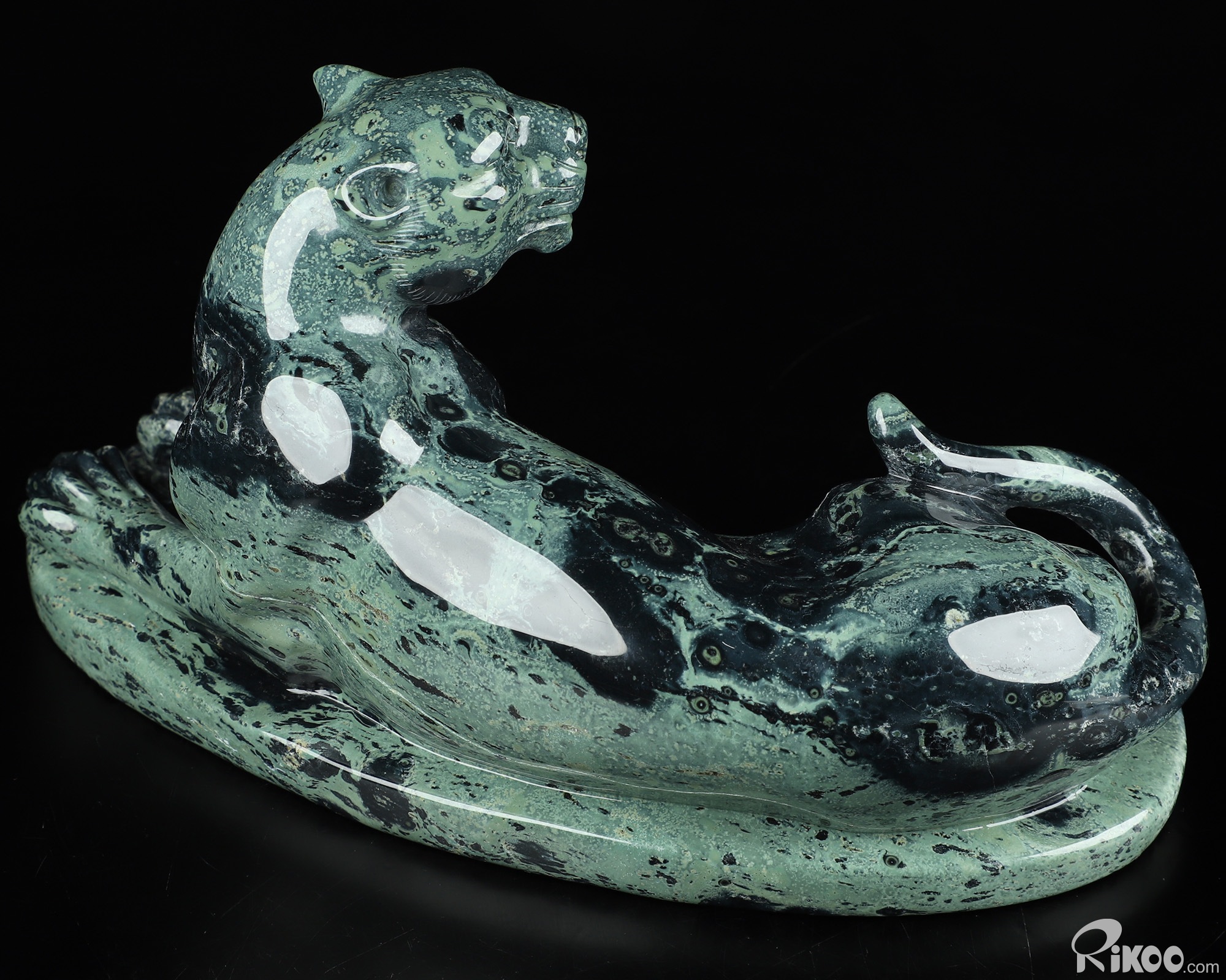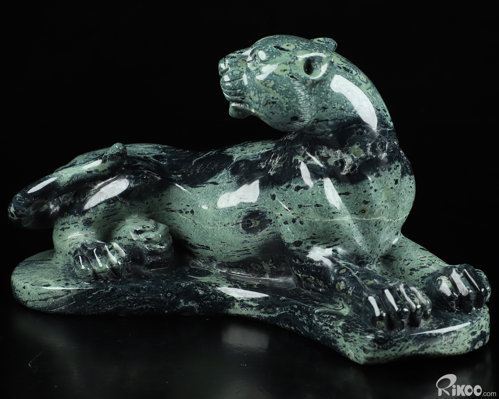 8.1" Kambaba Jasper Carved Crystal Leopard, Realistic