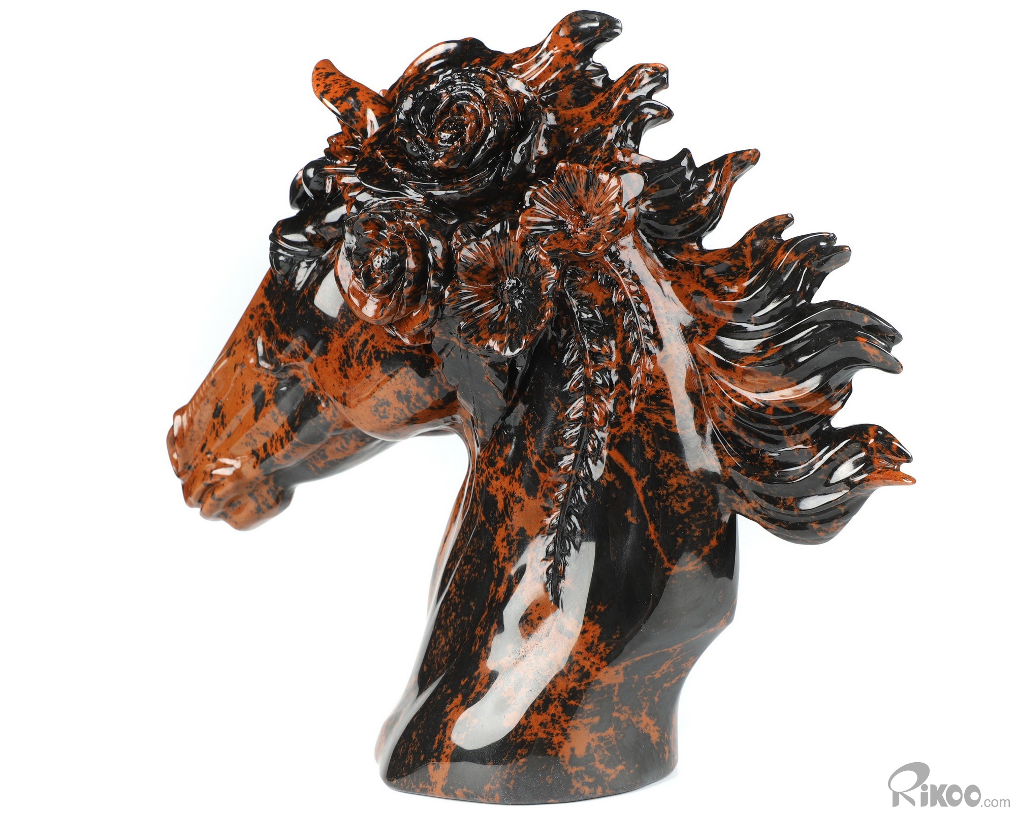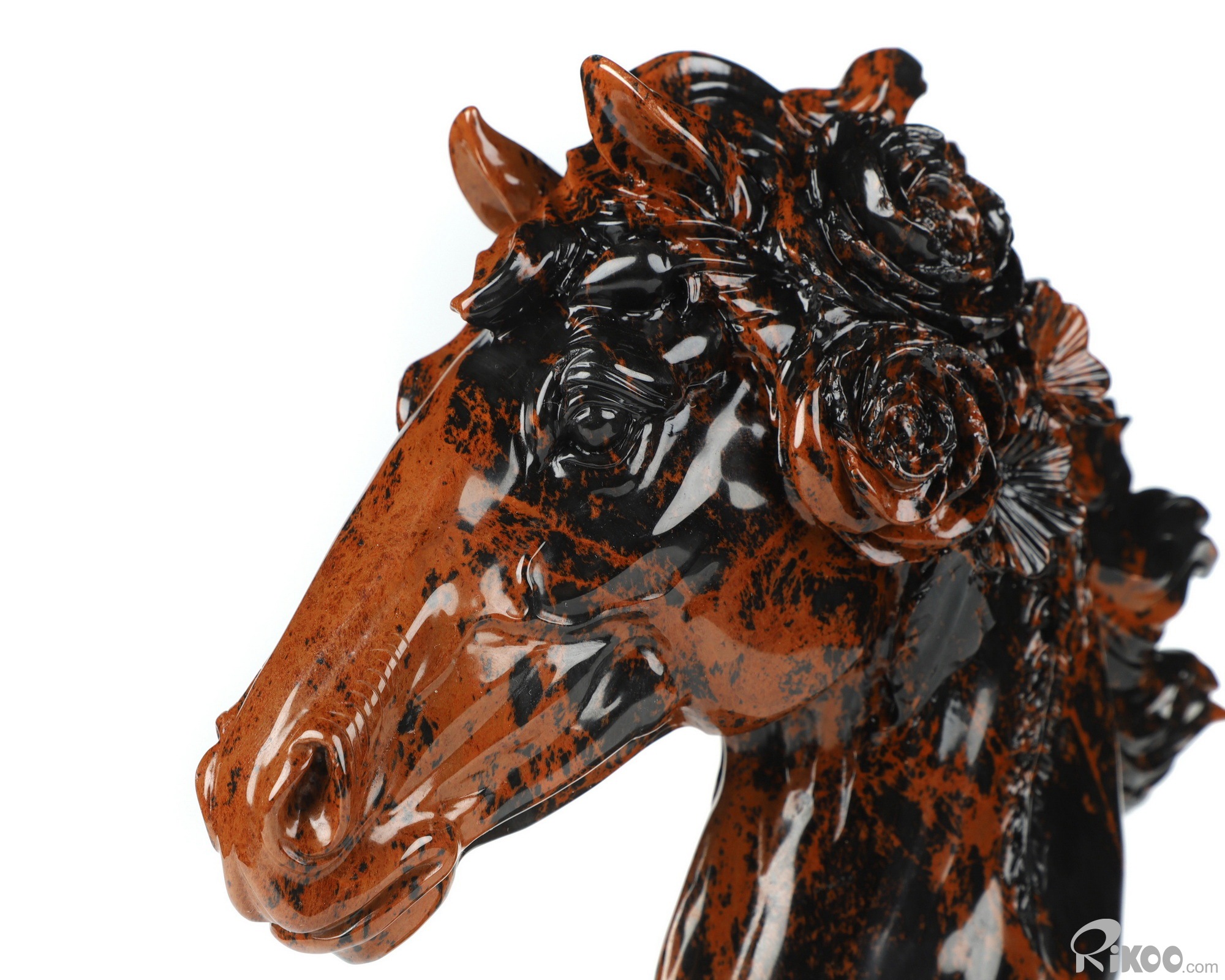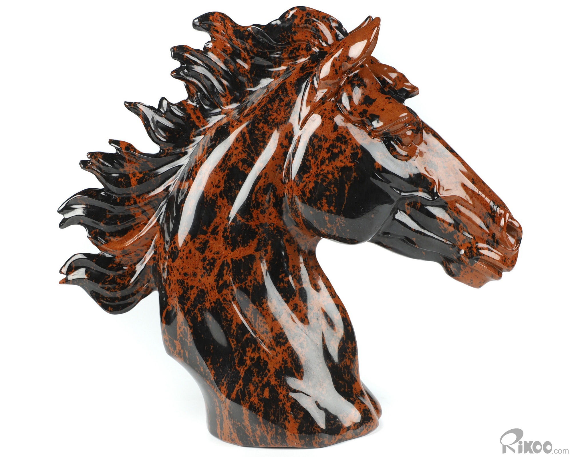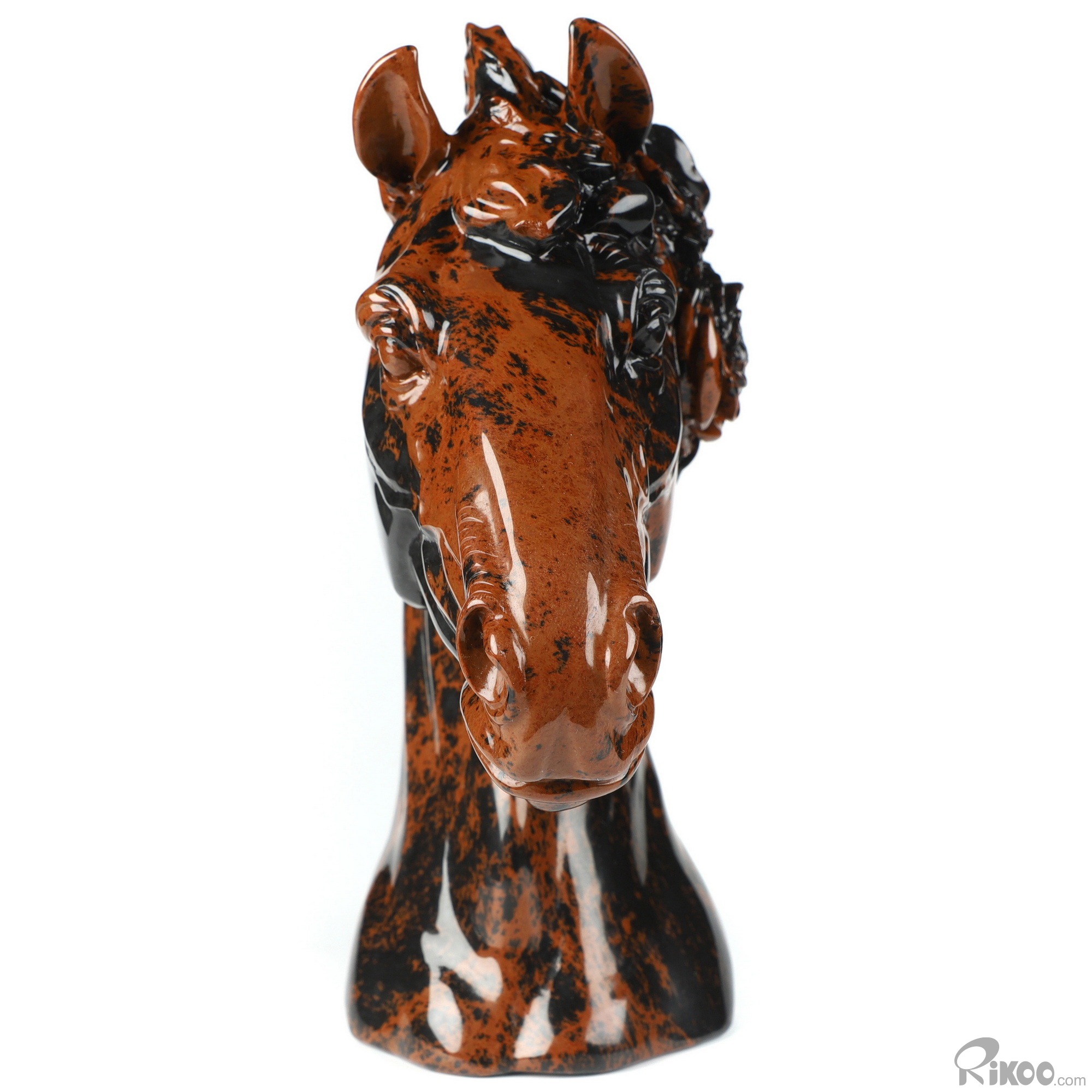 8.1" Mahogany Obsidian Hand Carved Crystal Horse Sculpture, Crystal Healing