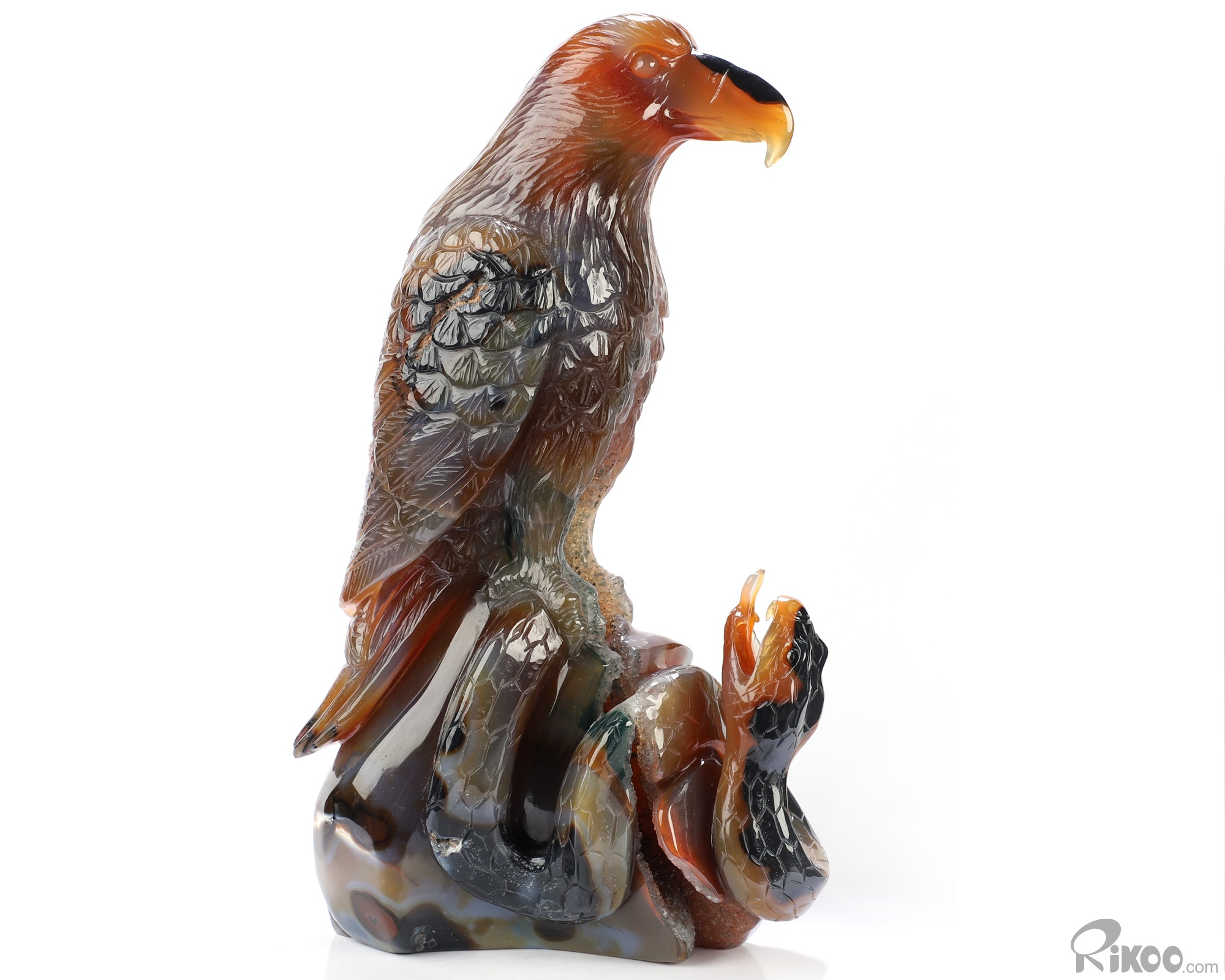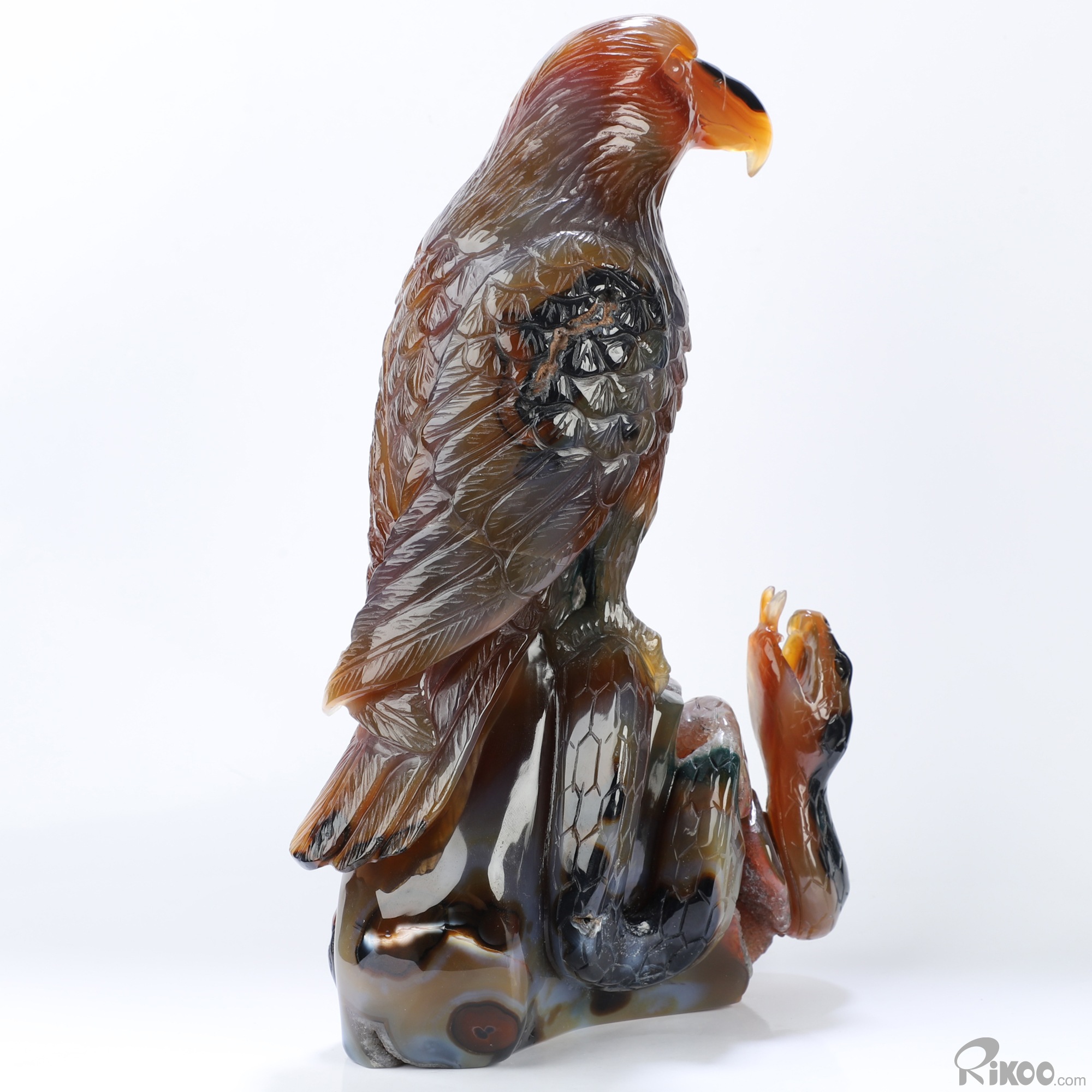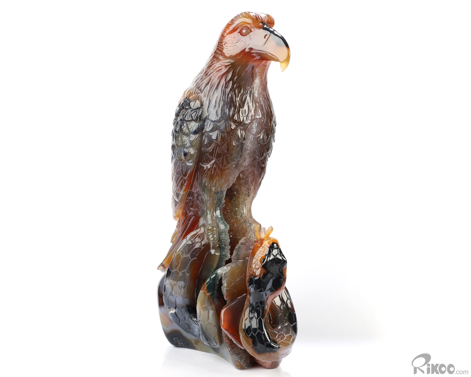 8.1" Premium Brazilian Agate Hand Carved Crystal Eagle and Sanke Sculpture, Crystal Healing