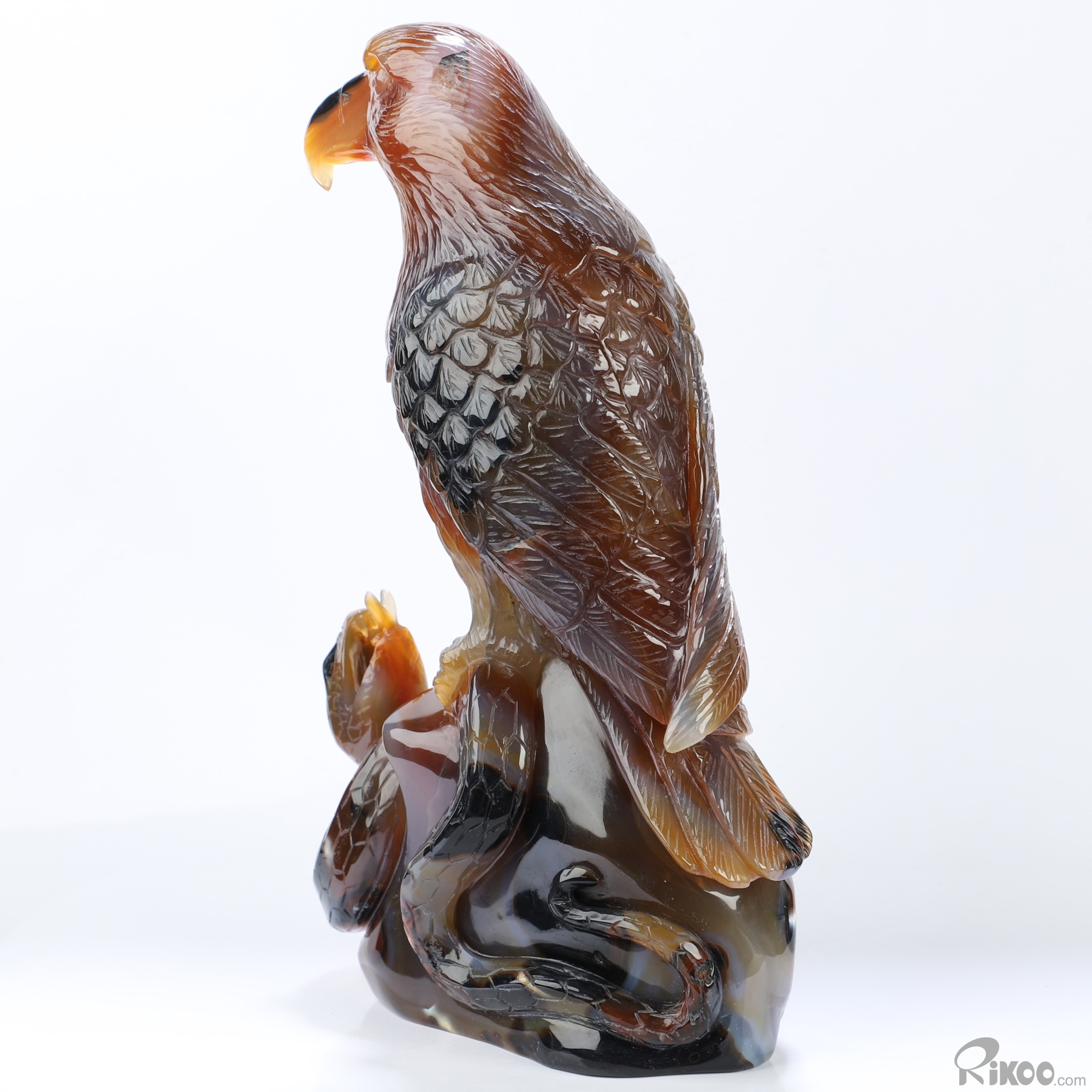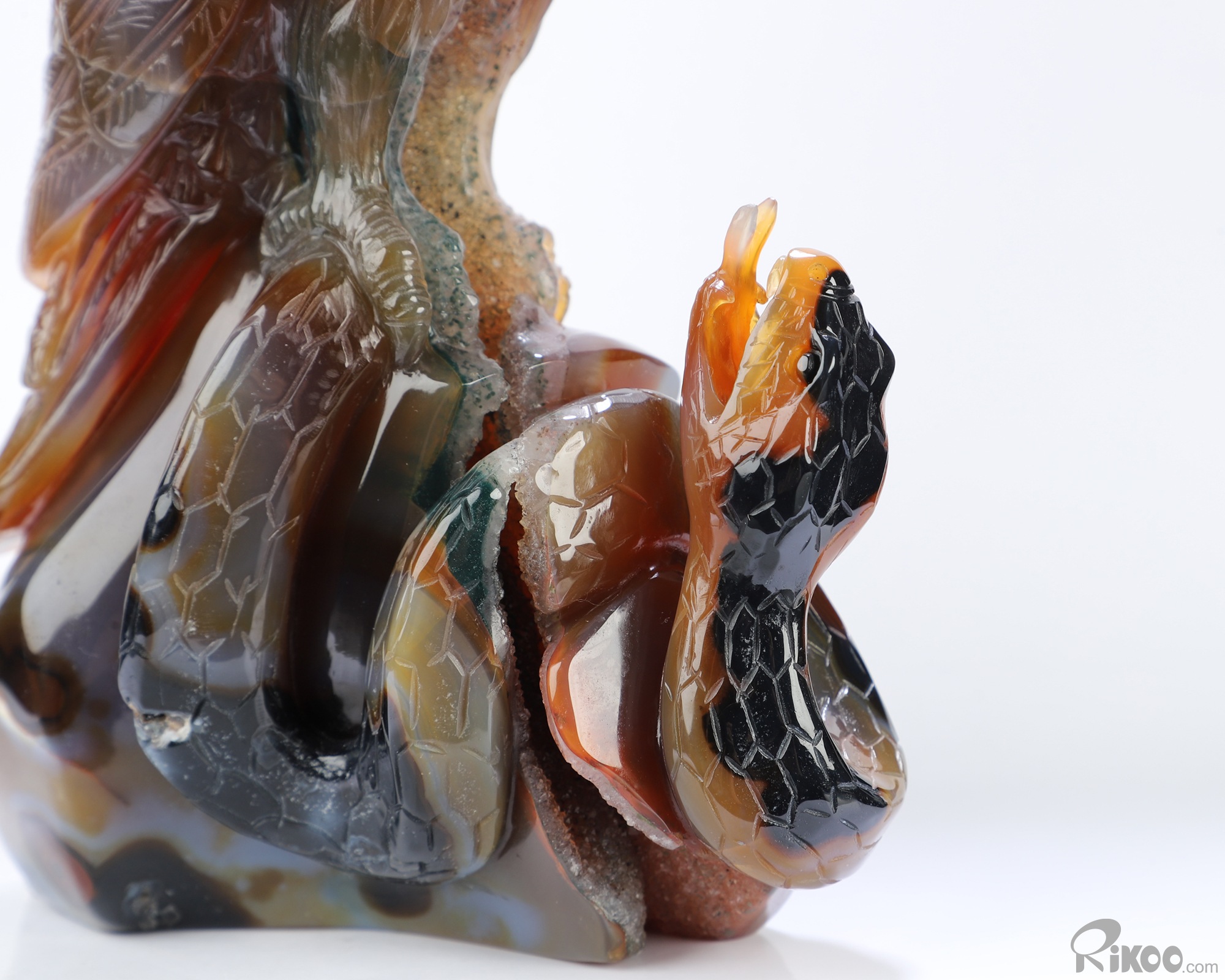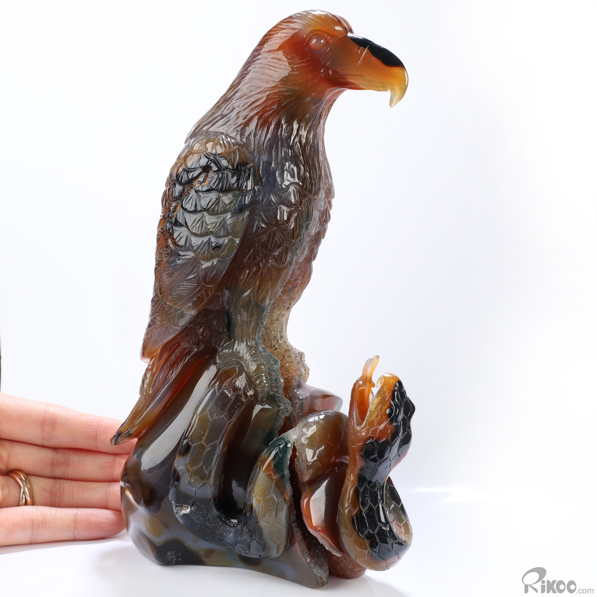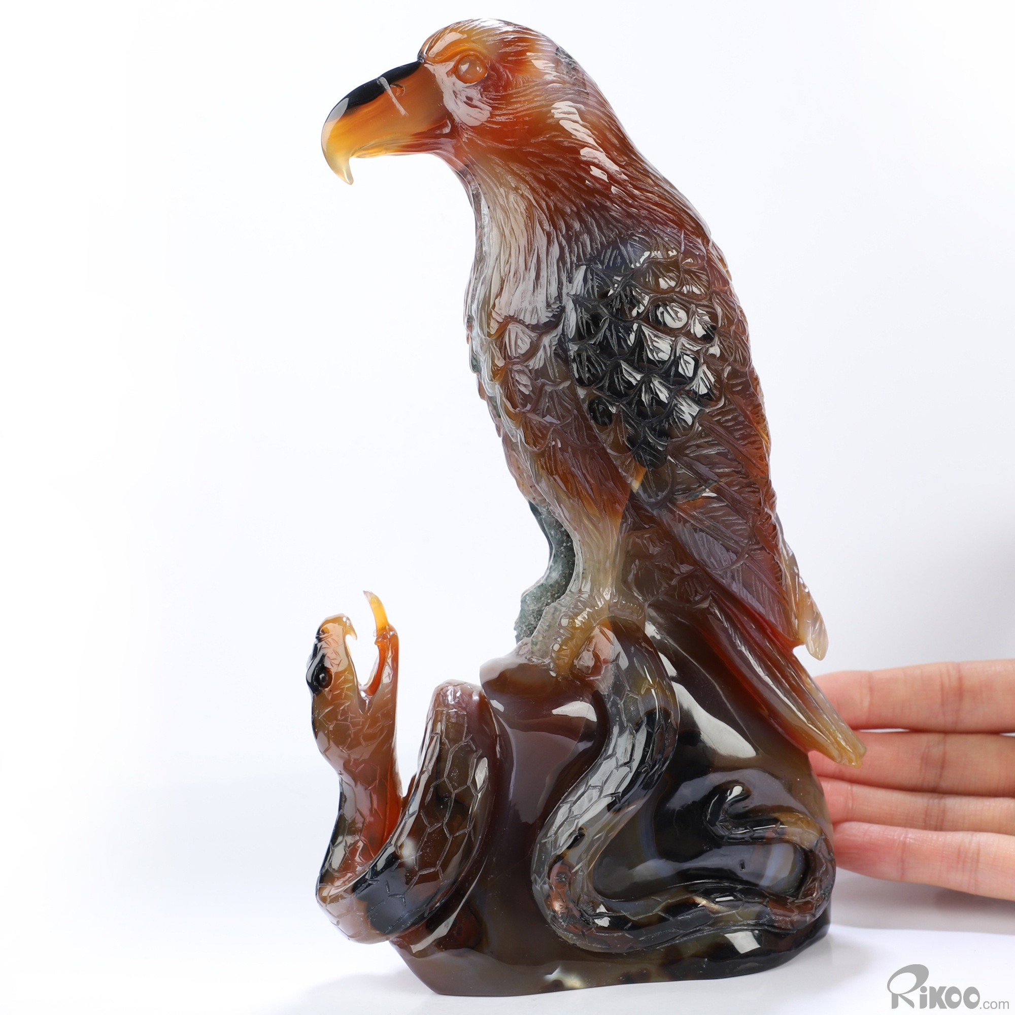 8.1" Premium Brazilian Agate Hand Carved Crystal Eagle and Sanke Sculpture, Crystal Healing
