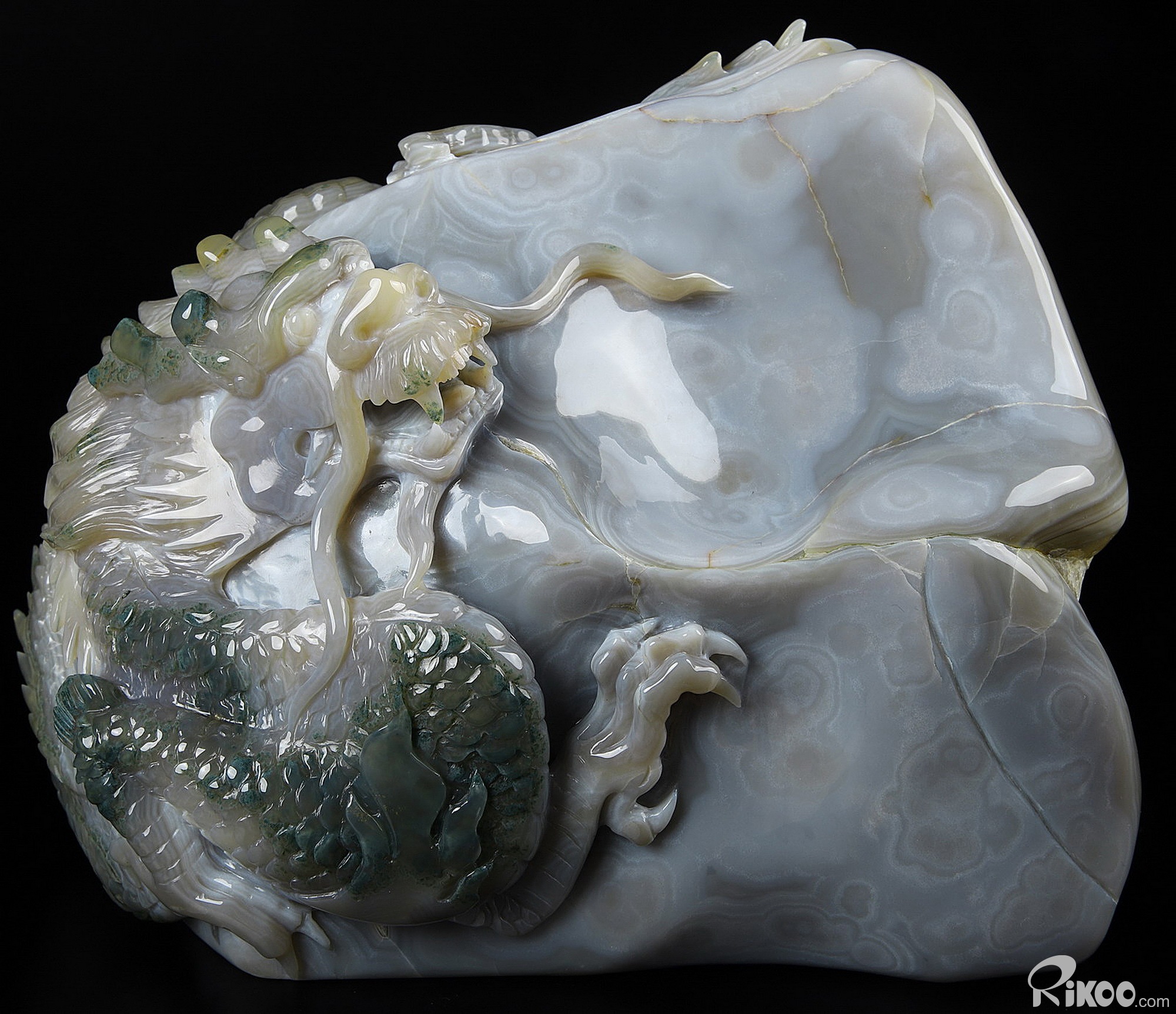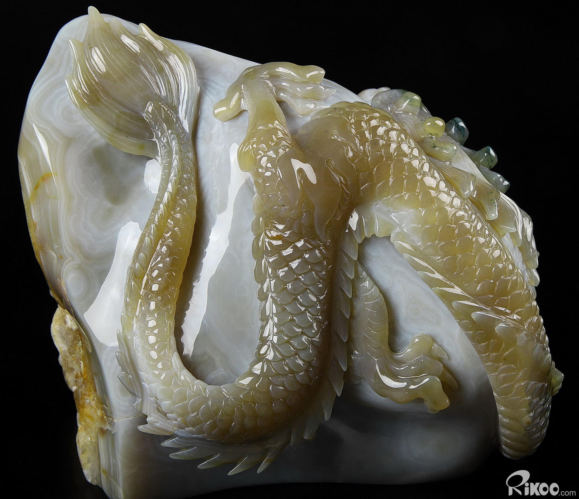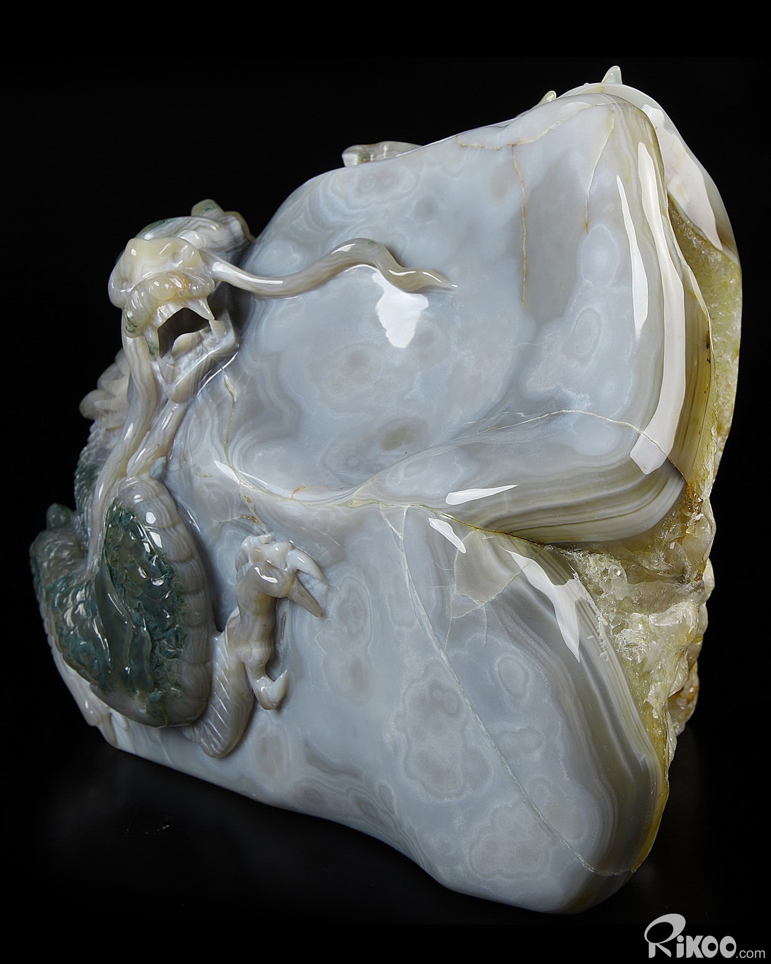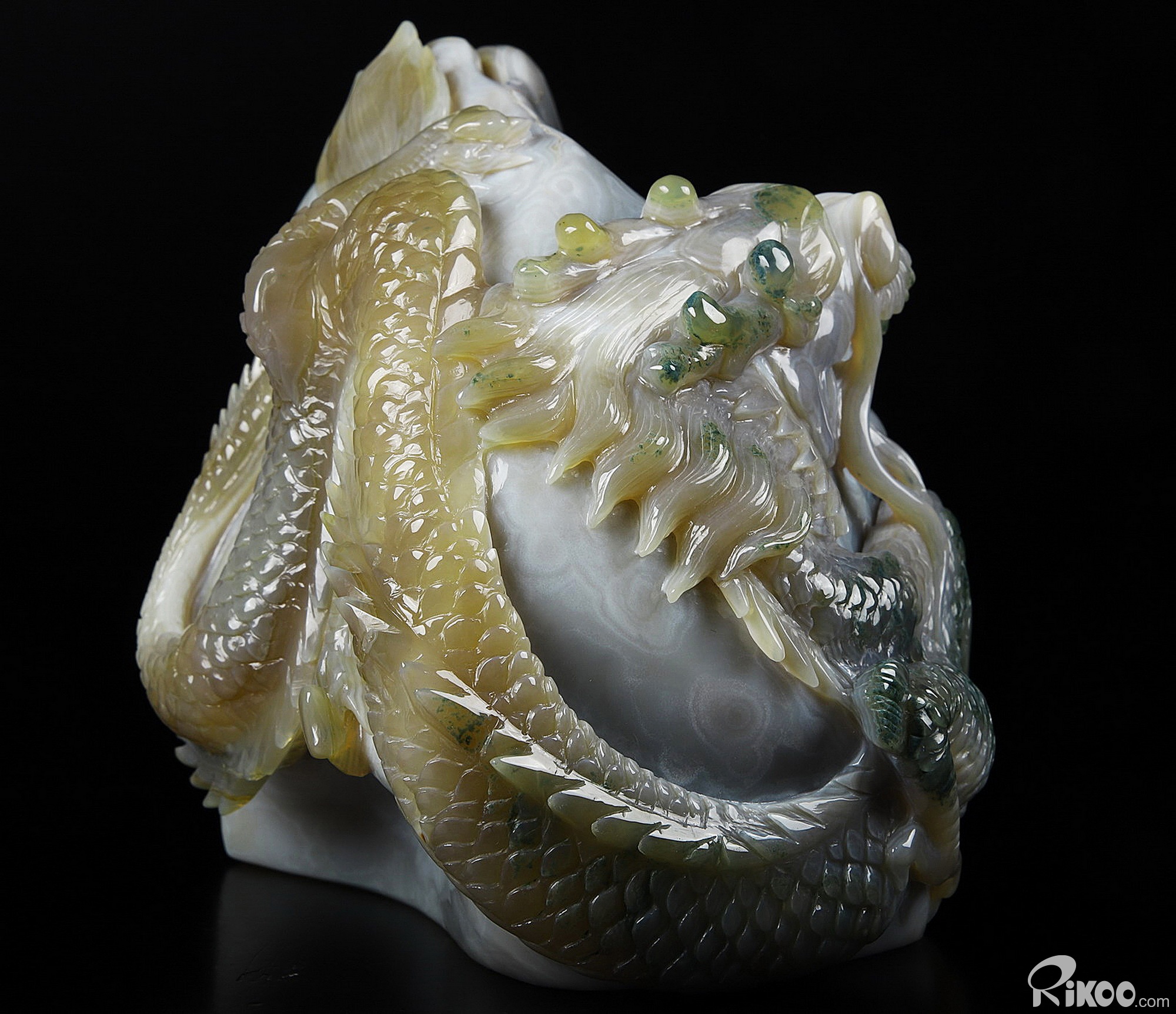 Awesome 8.2" Agate Geode Carved Crystal Dragon Sculpture, Crystal Healing