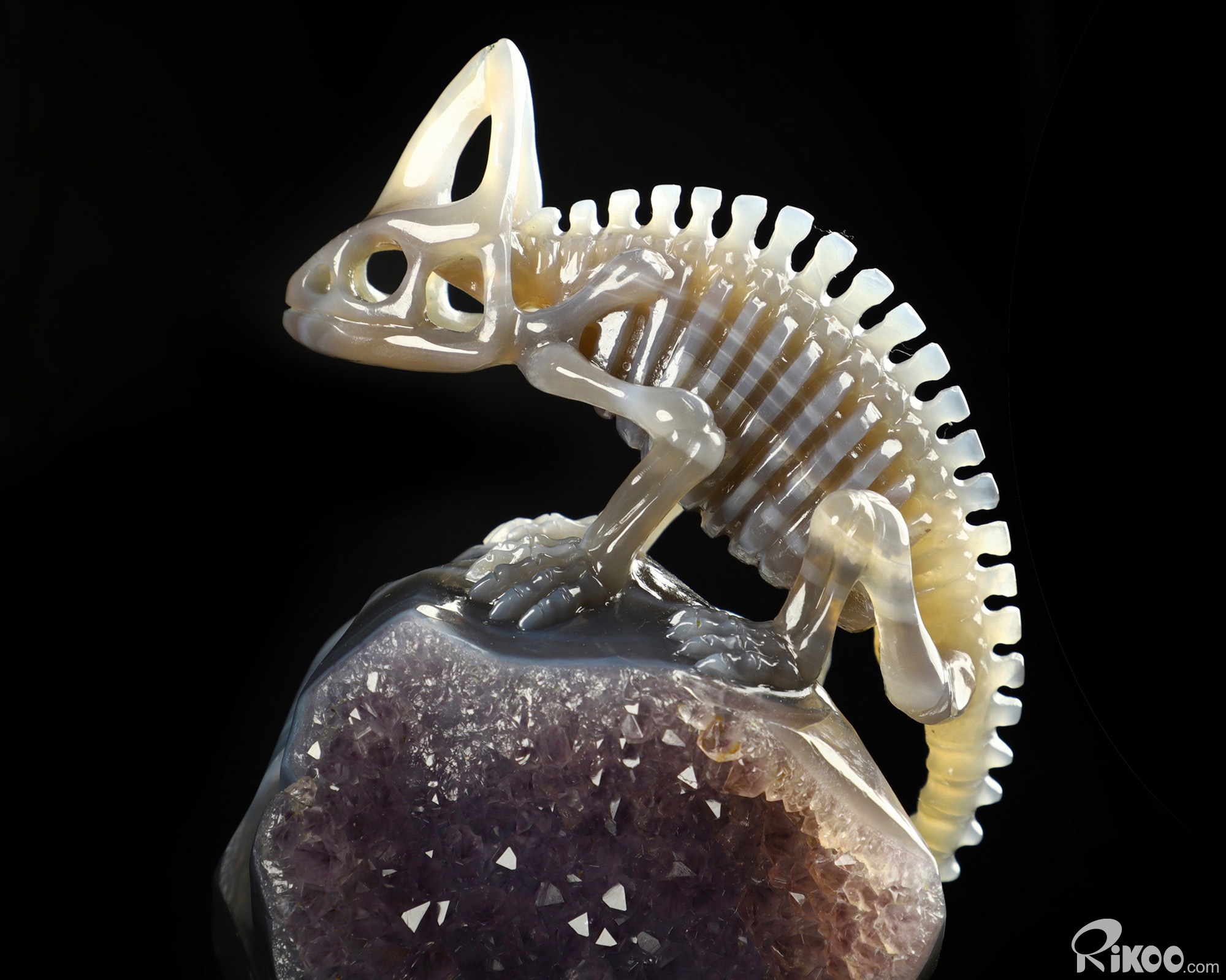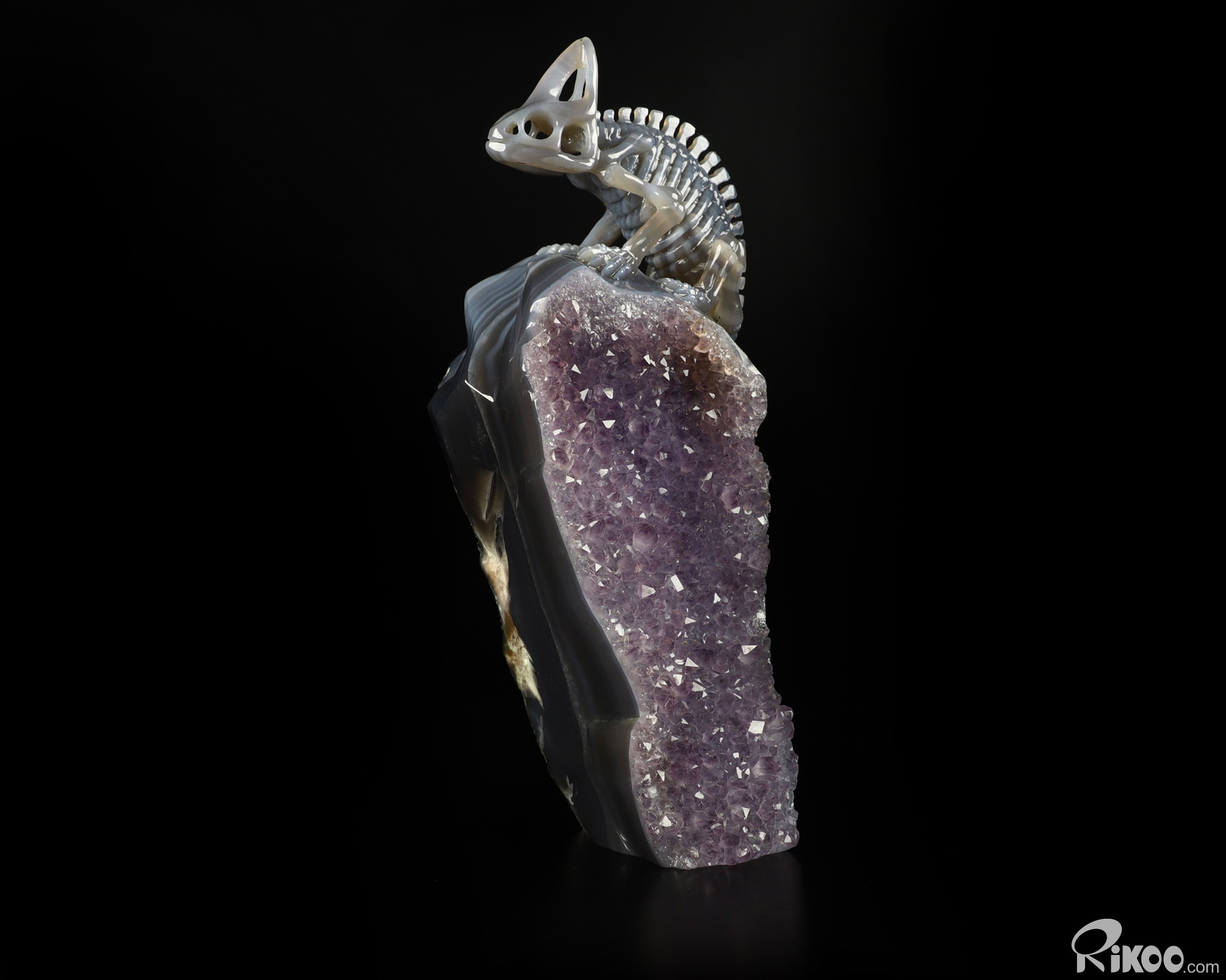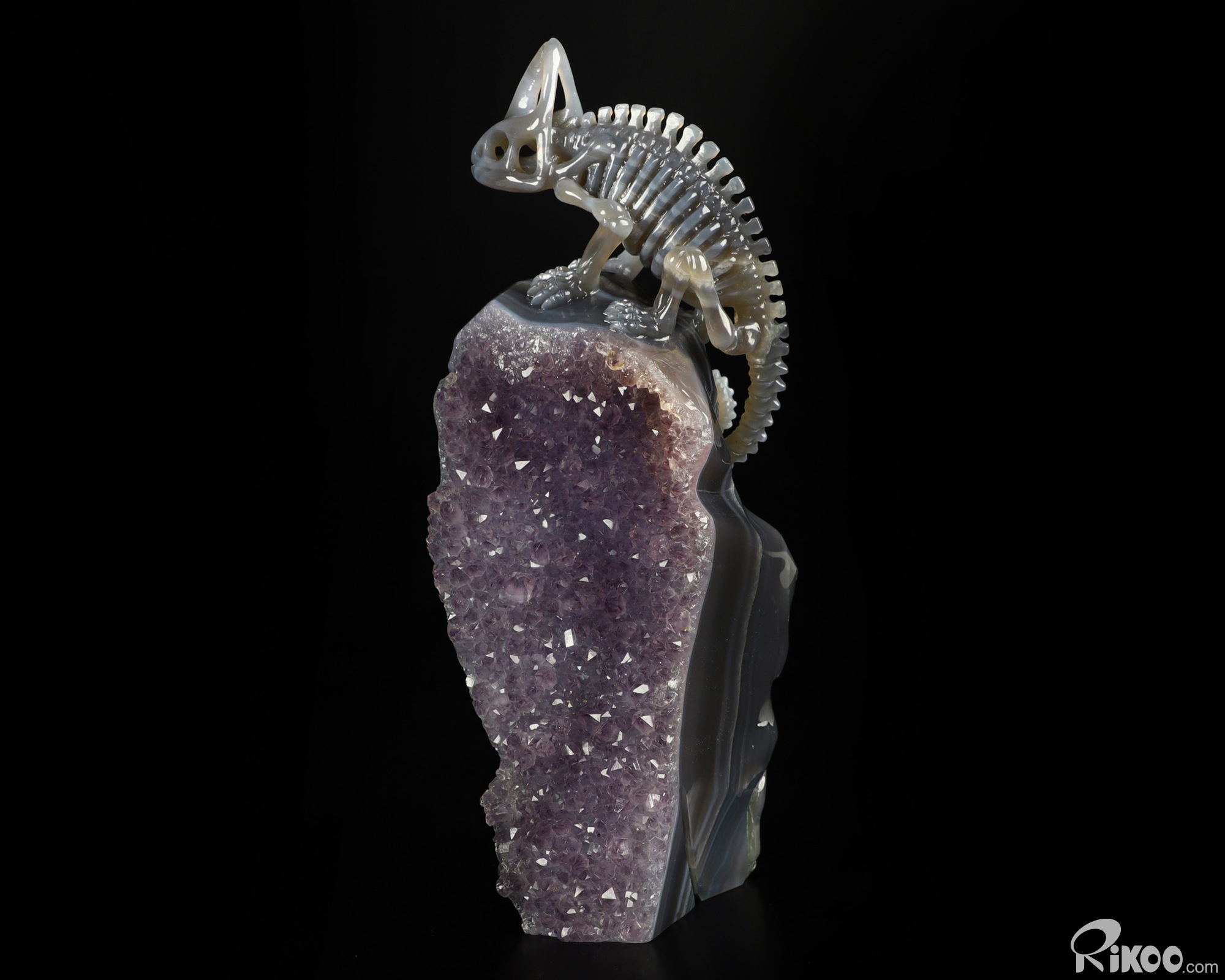 8.2" Amethyst & Agate Carved Crystal Chameleon Skeleton Sculpture, Crystal Healing