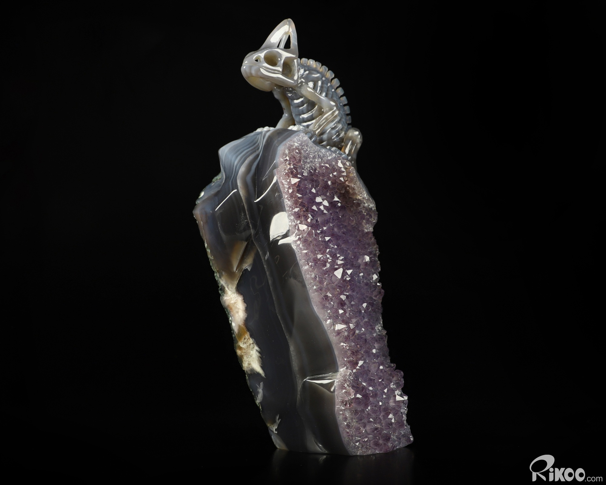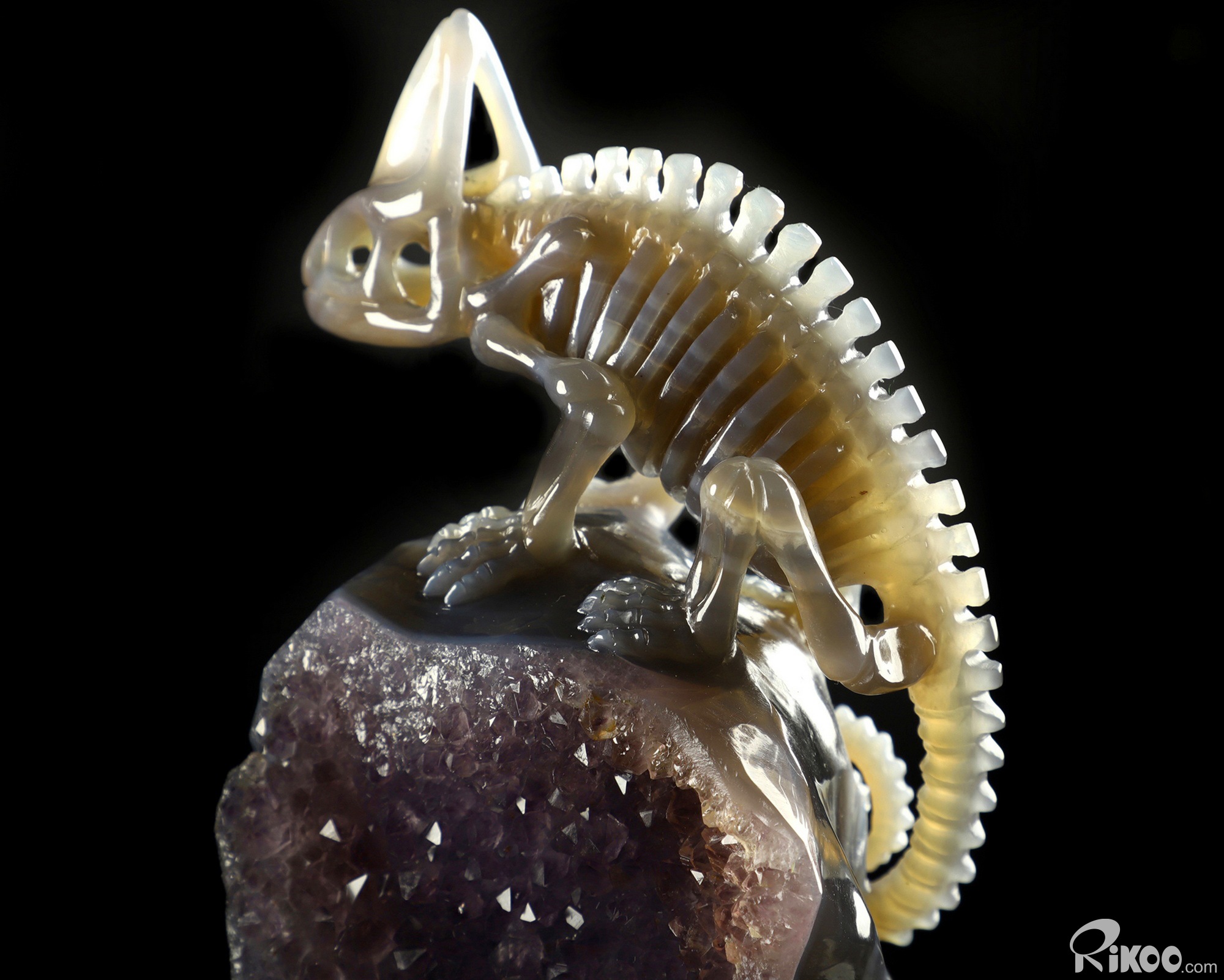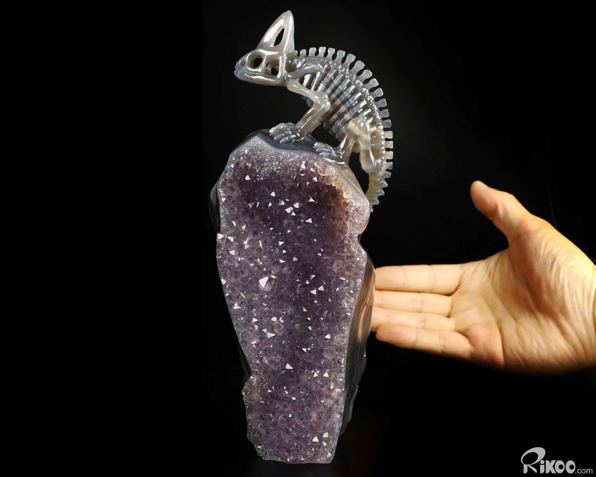 8.2" Amethyst & Agate Carved Crystal Chameleon Skeleton Sculpture, Crystal Healing