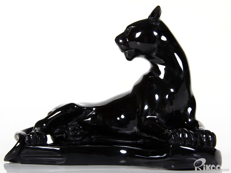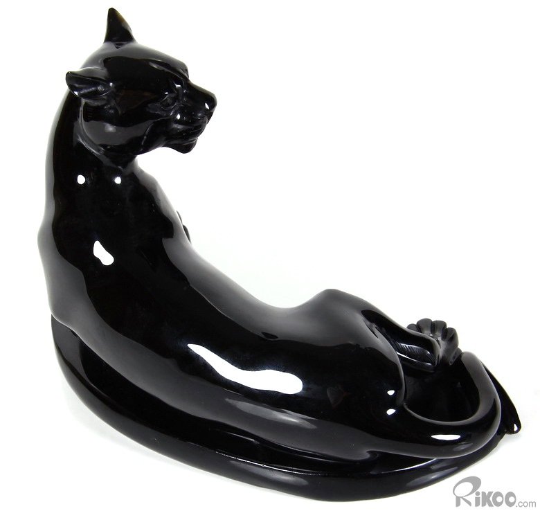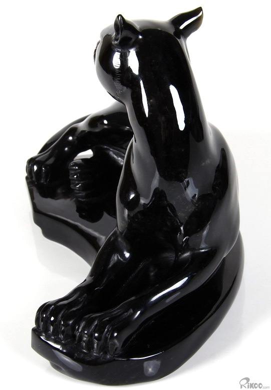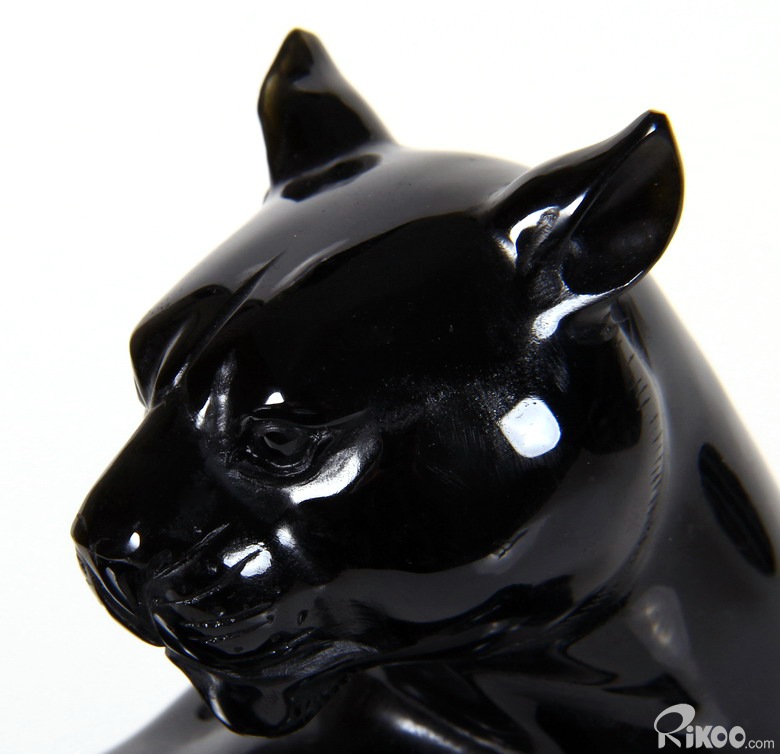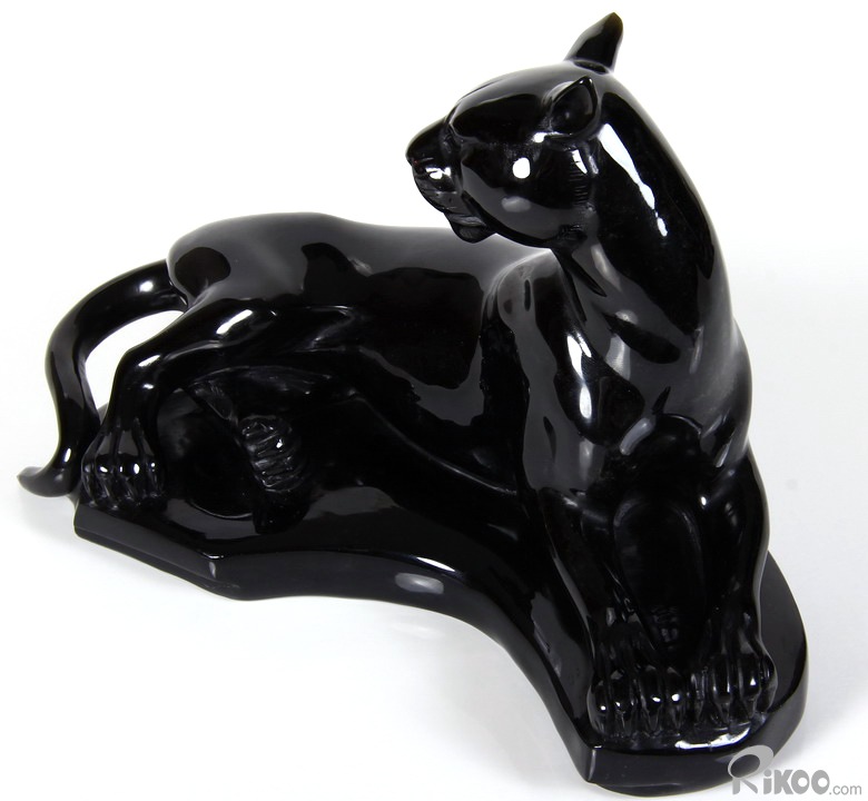 8.2" Black Obsidian Carved Crystal Leopard Sculpture