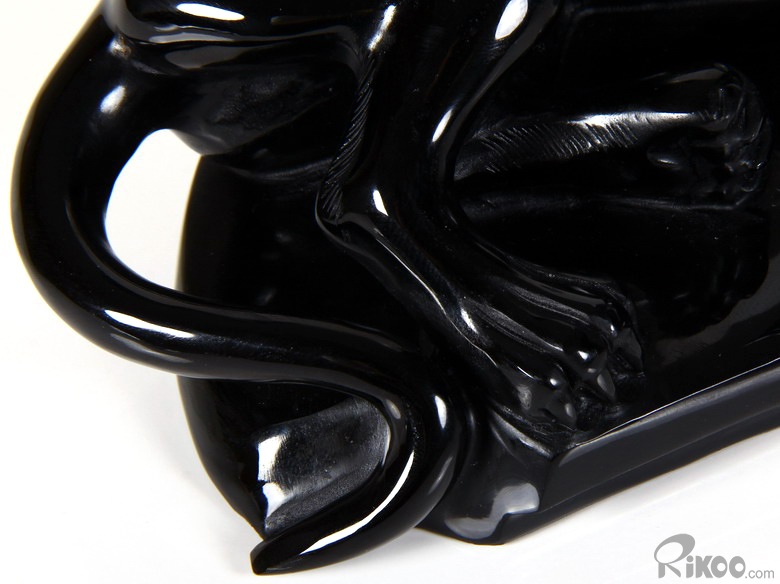 You are looking at a Black Obsidian skull. The skull is 8.2 inches long from front to back.