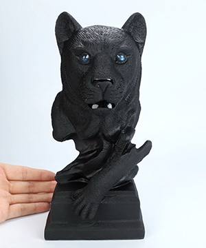 8.2" Frosted Black Obsidian Hand Carved Crystal Leopard Sculpture, Crystal Healing
