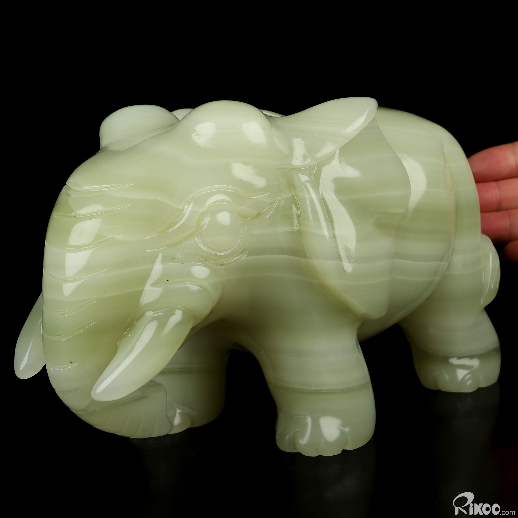 8.3" Afghanistan Jade Hand Carved Crystal Elephant Sculpture, Crystal Healing