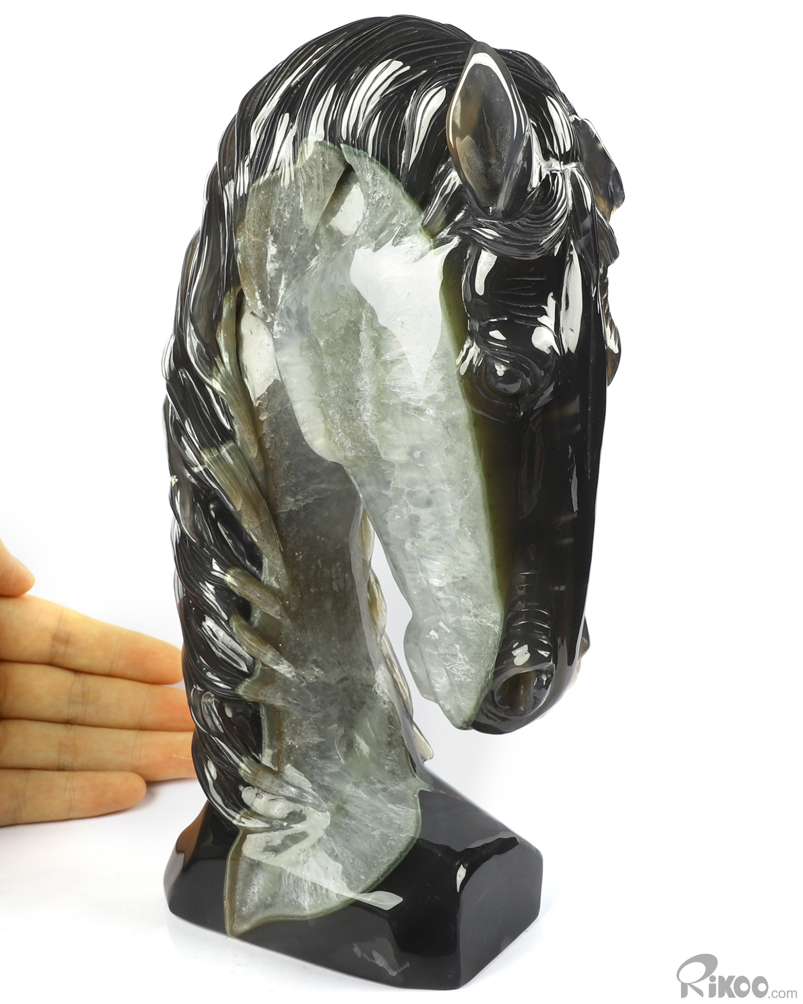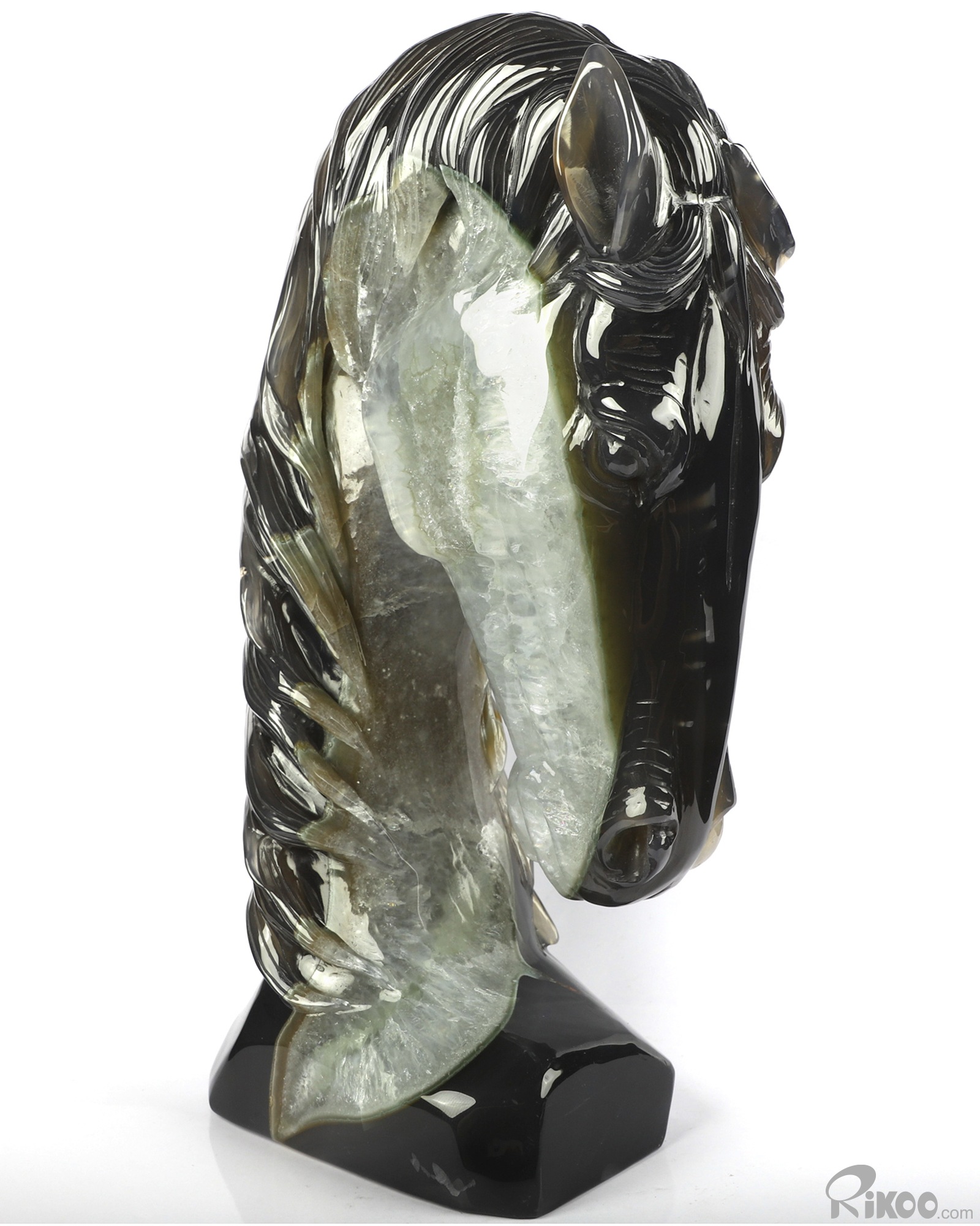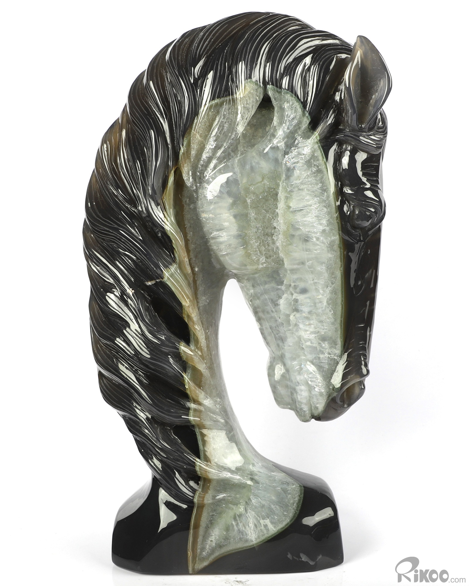 8.3" Agate Geode Carved Crystal Horse Sculpture, Realistic, Crystal Healing