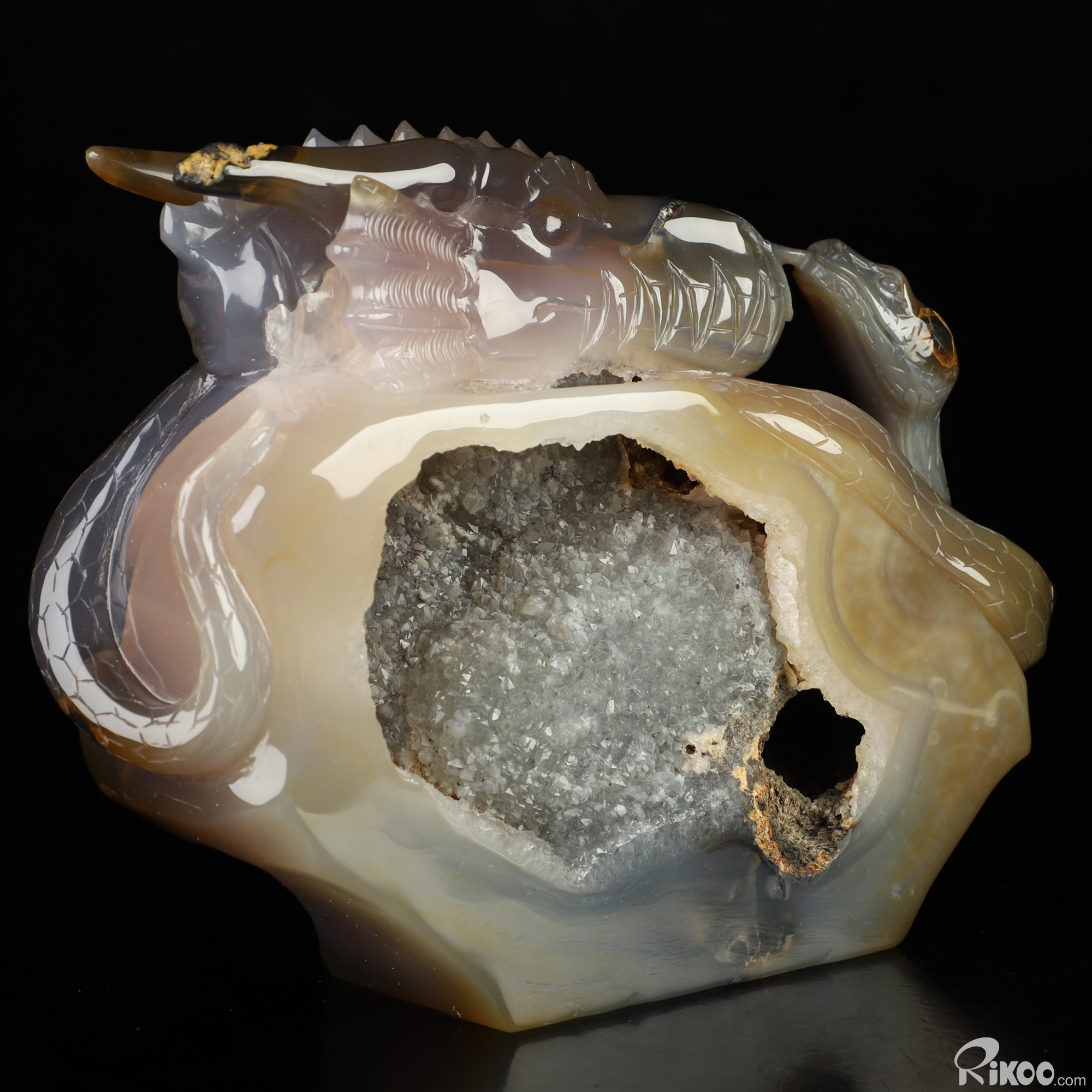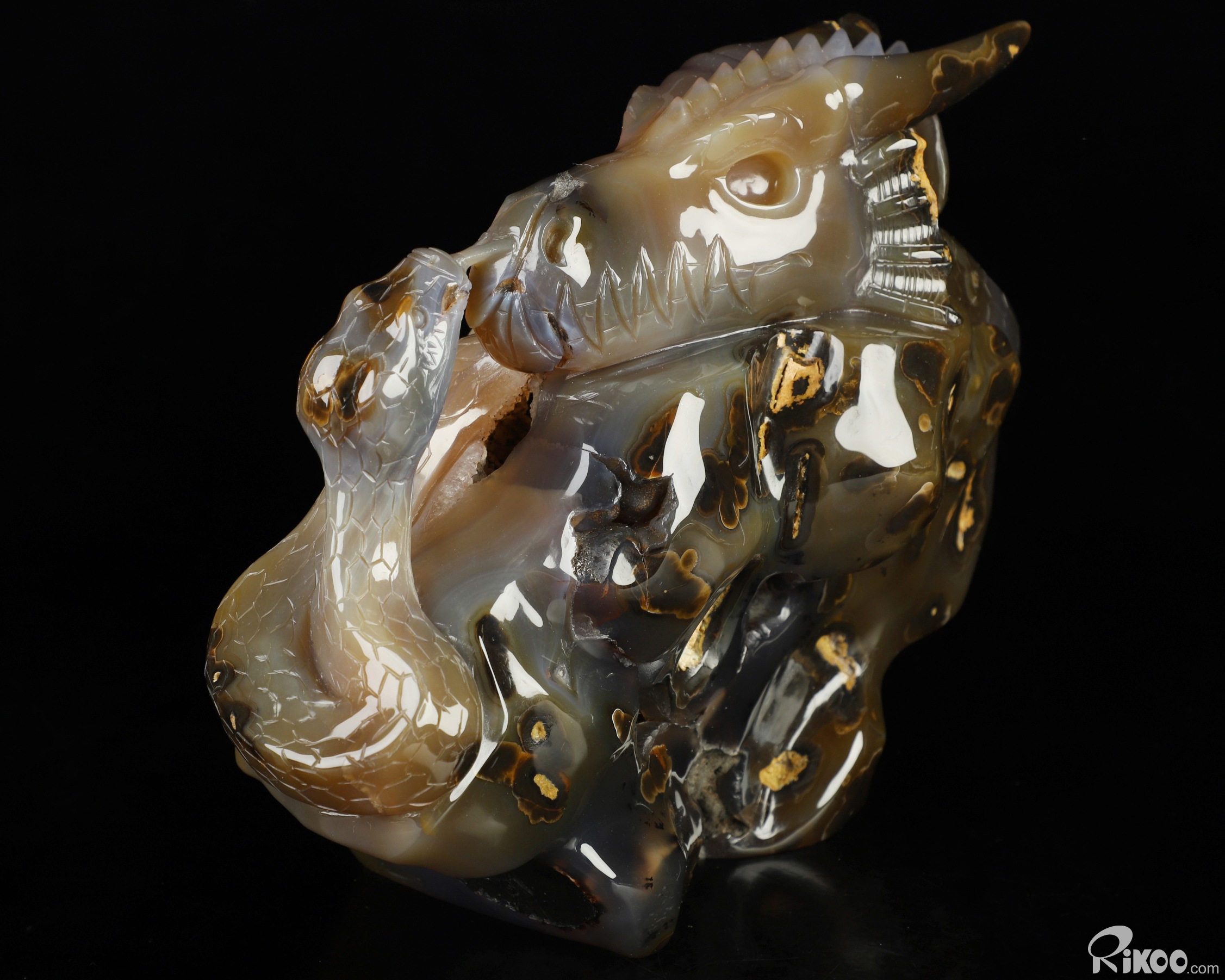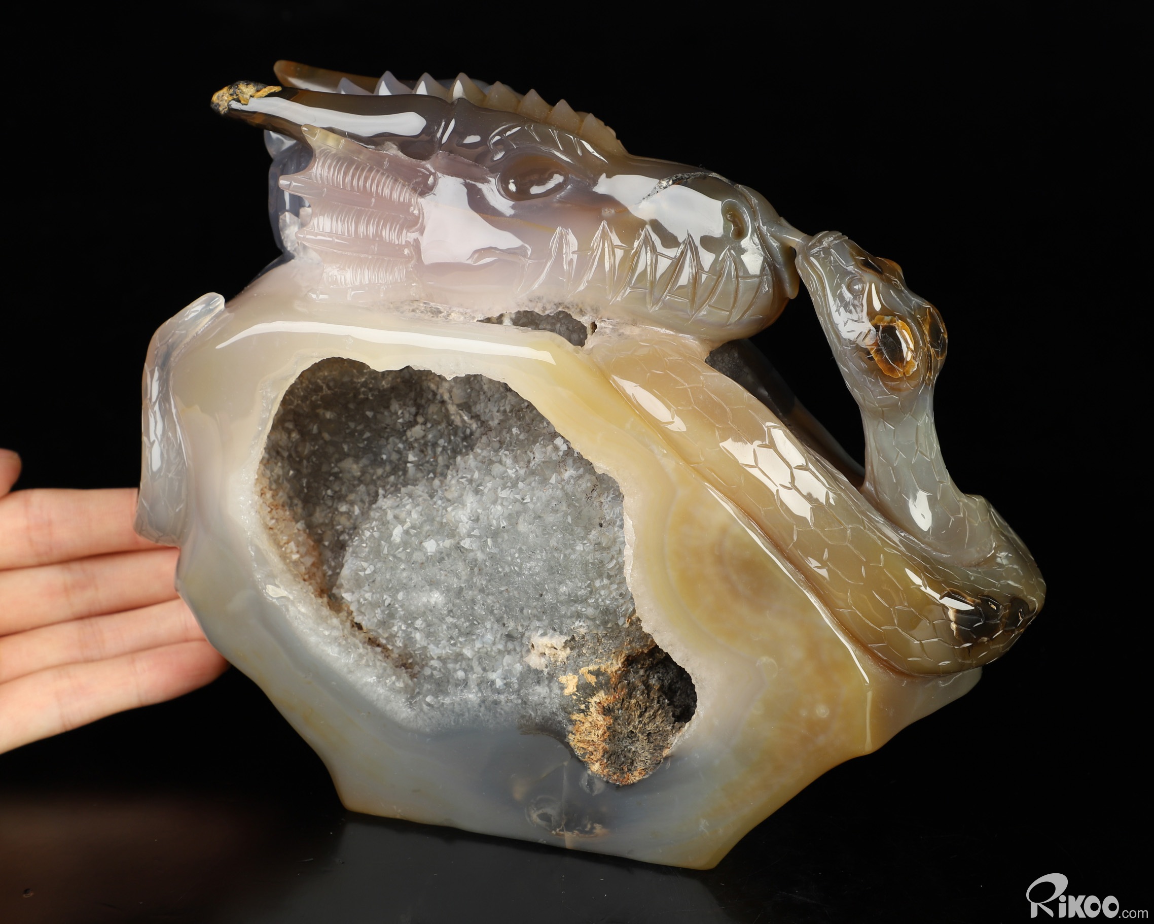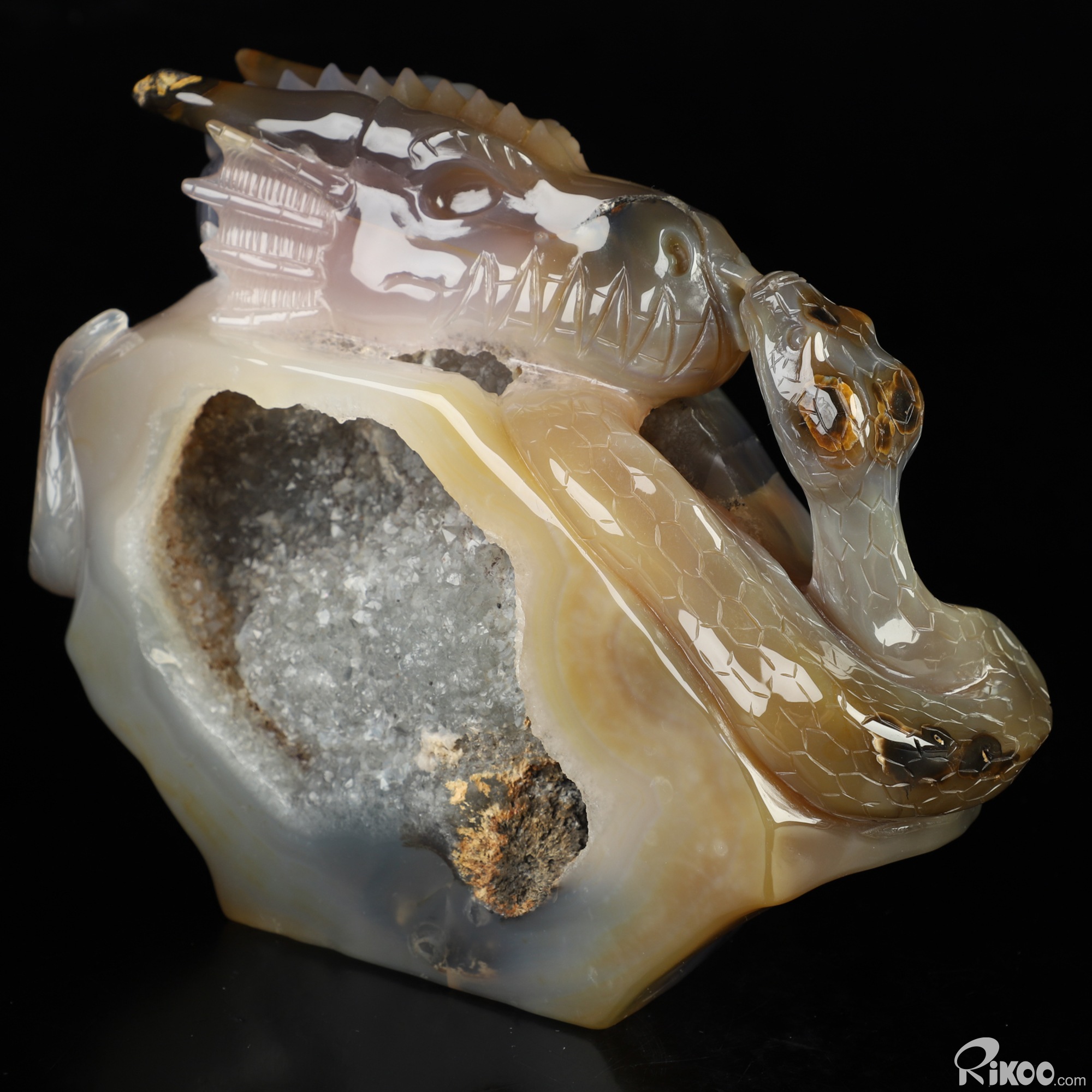 8.3" Agate Geode Hand Carved Crystal Dragon and Snake Sculpture, Crystal Healing