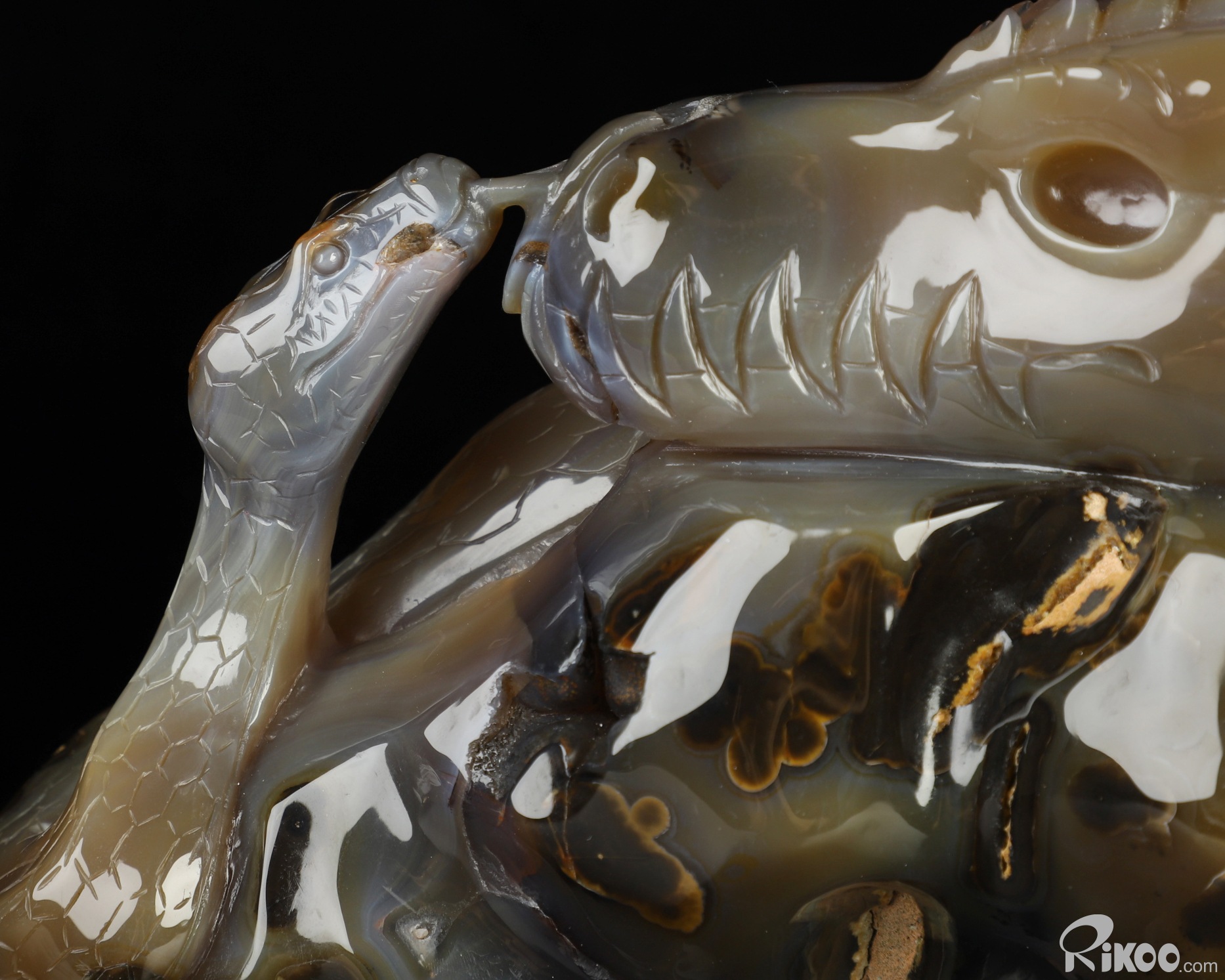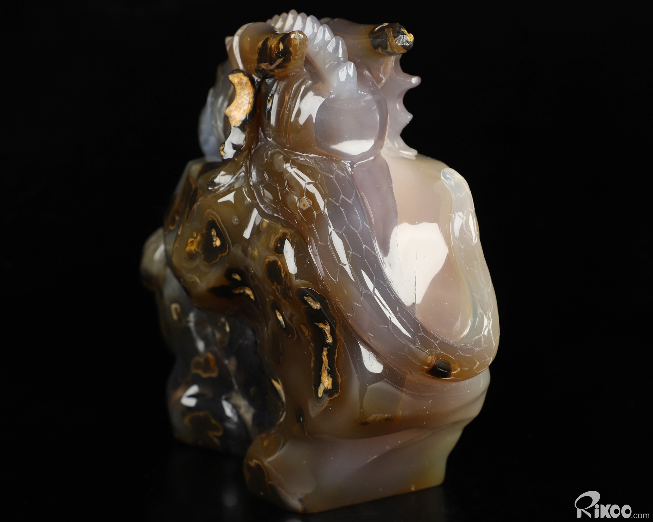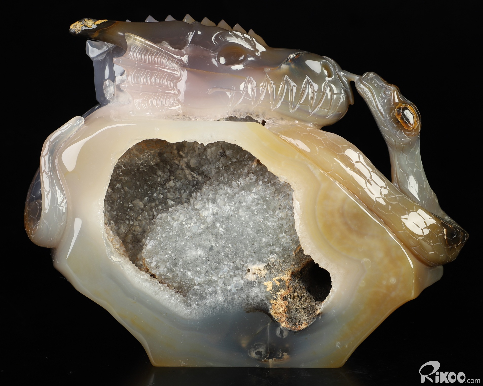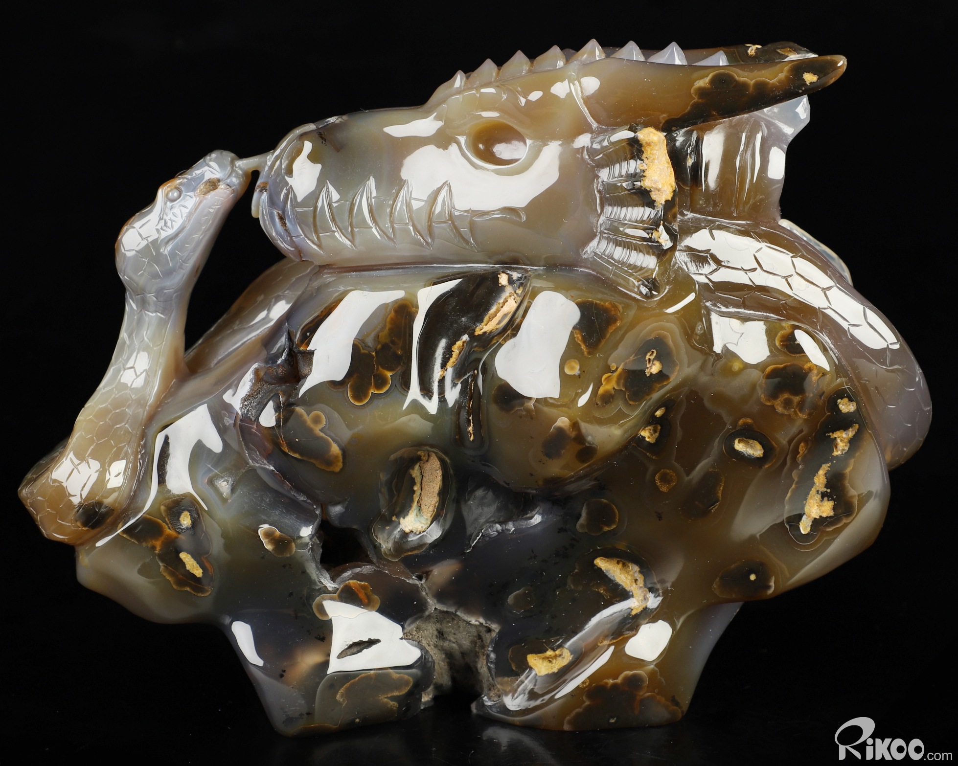 8.3" Agate Geode Hand Carved Crystal Dragon and Snake Sculpture, Crystal Healing