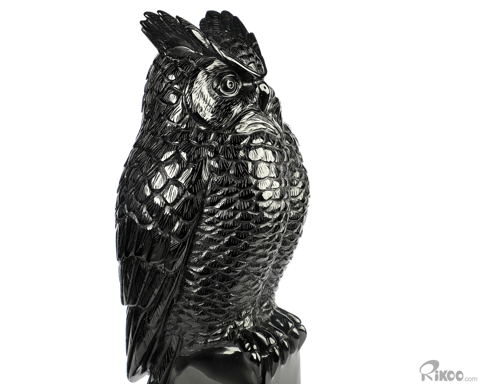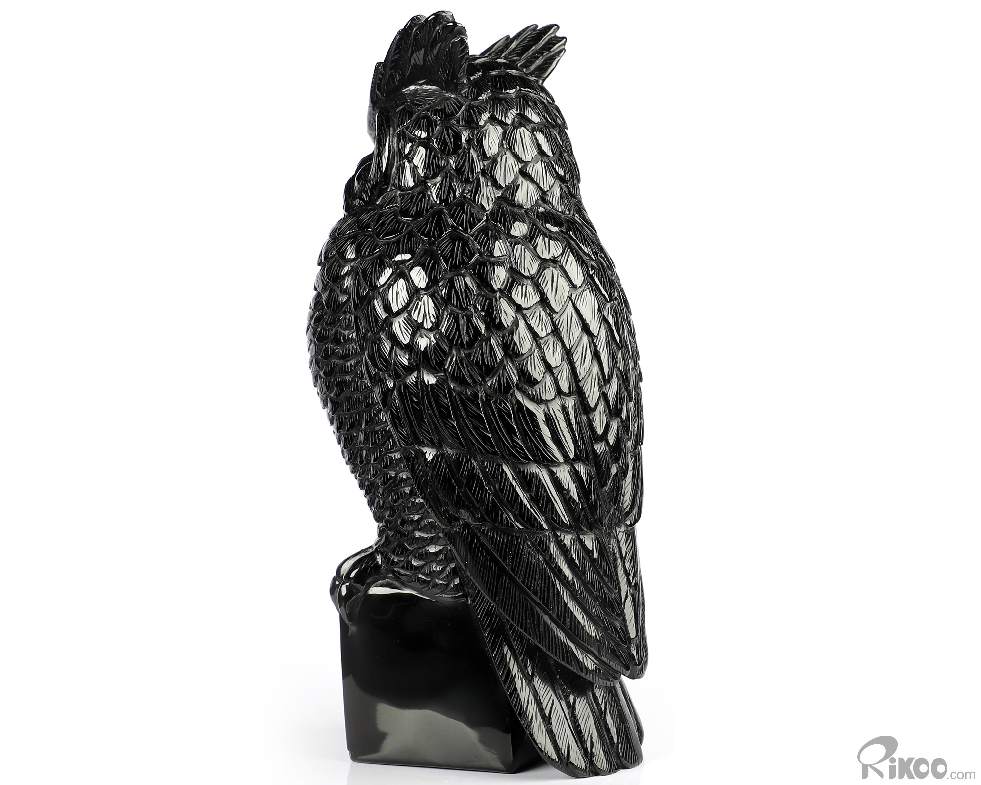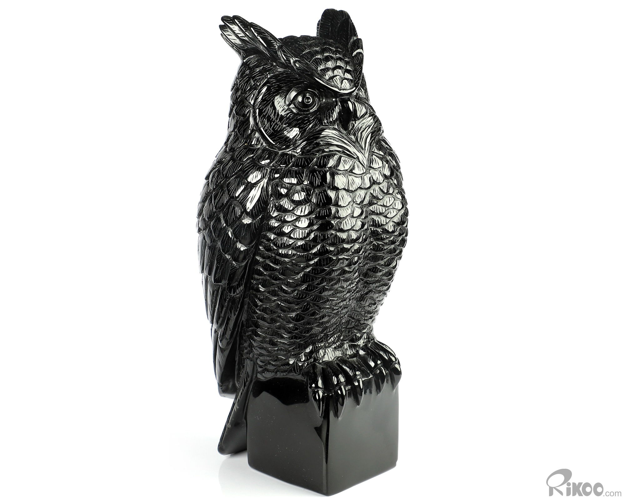 8.3" Black Obsidian Hand Carved Crystal Owl Sculpture, Crystal Healing