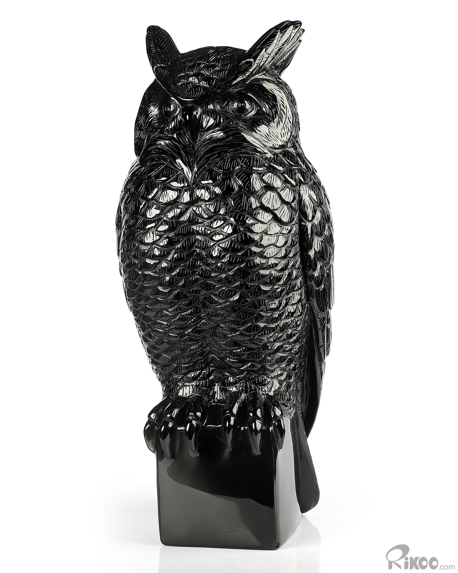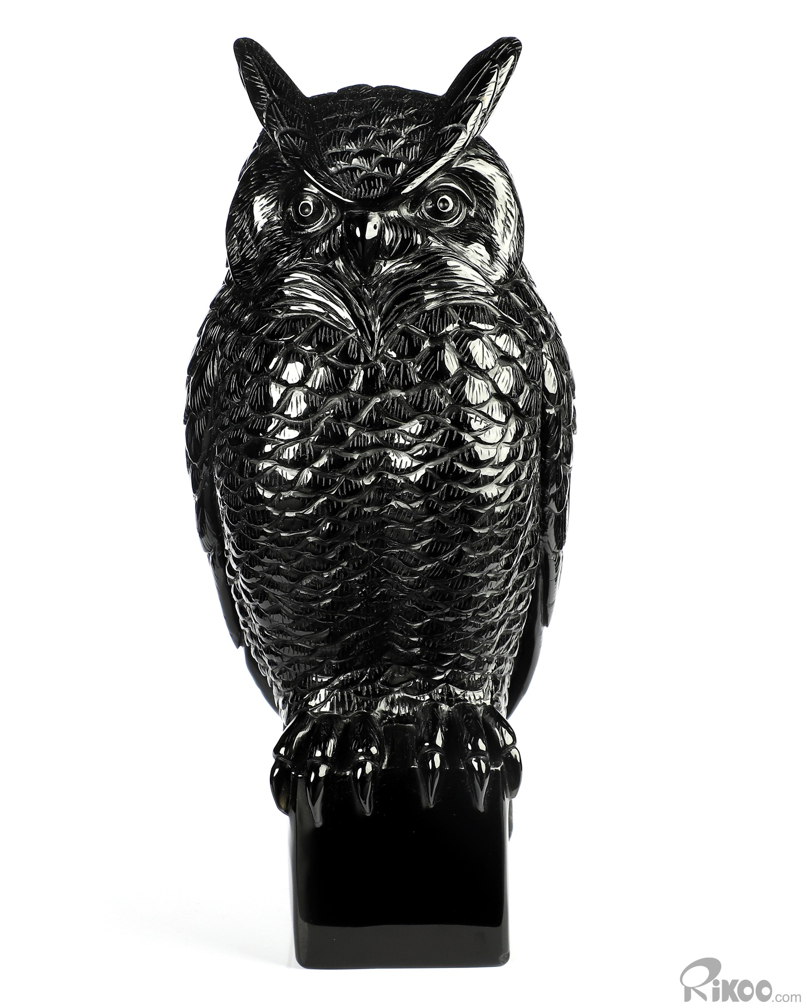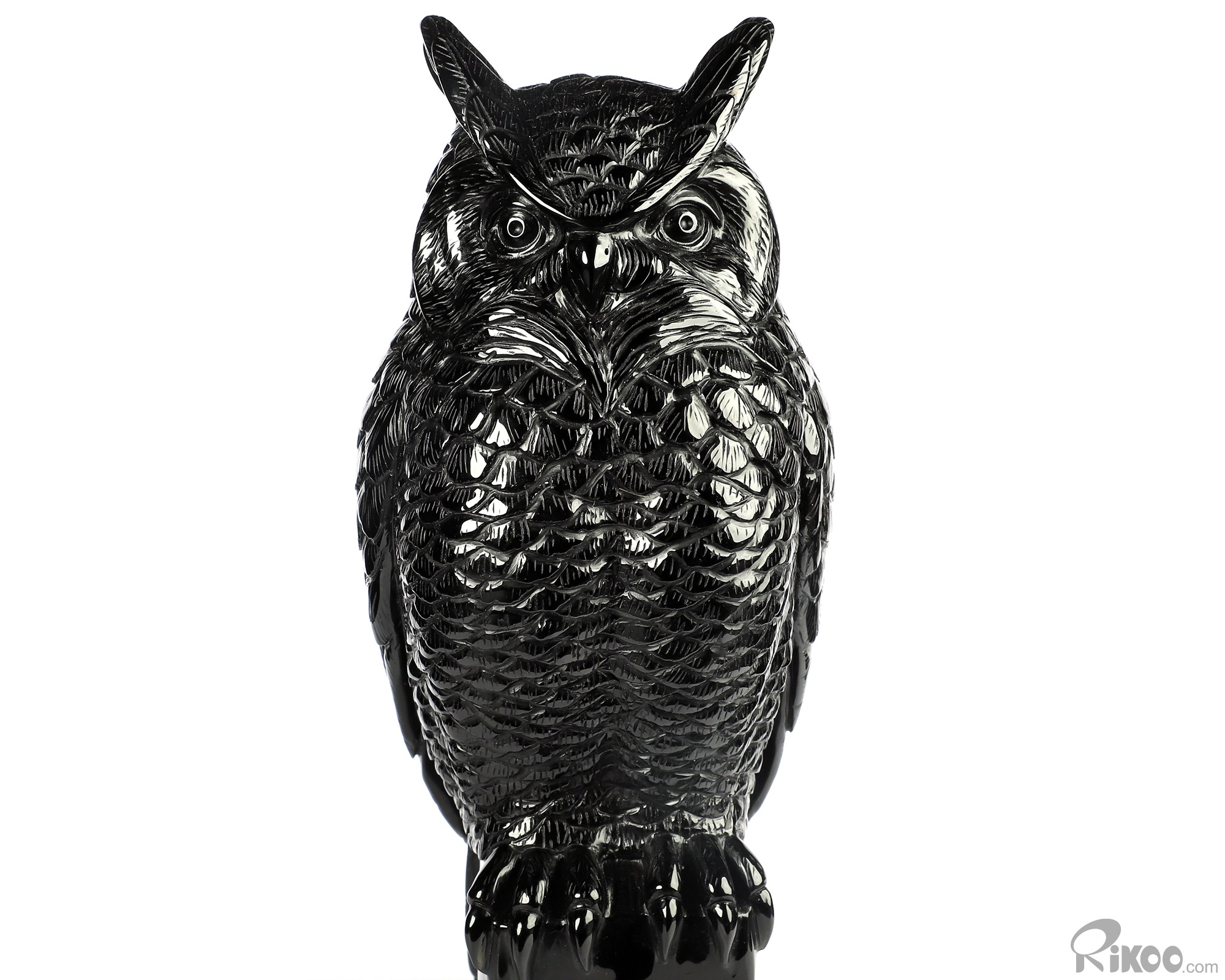 You are looking at a Black Obsidian owl. The owl is 8.3 inches long from top to bottom.